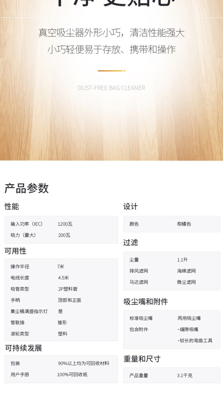 飞利浦(PHILIPS)吸尘器 家用迷你型 FC8085/81