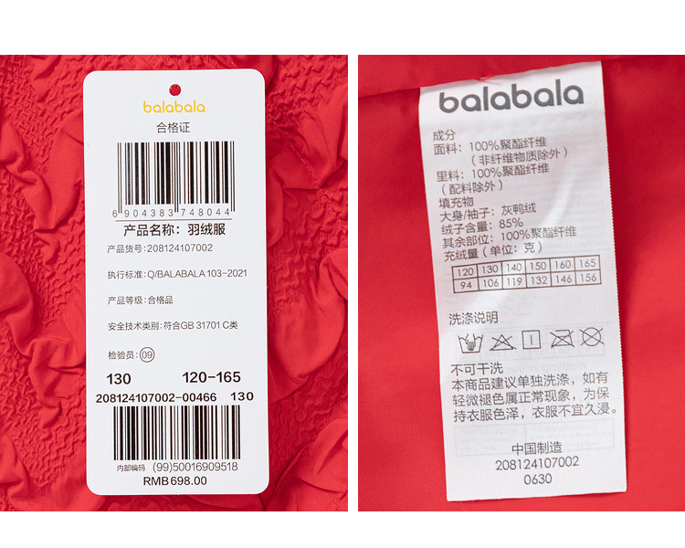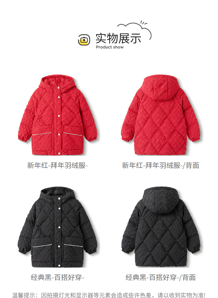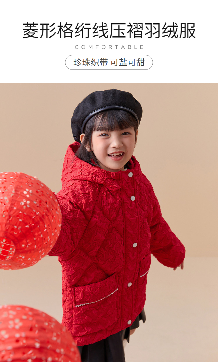 巴拉巴拉童装儿童羽绒服女童新款春装新年季保暖红色拜年上衣