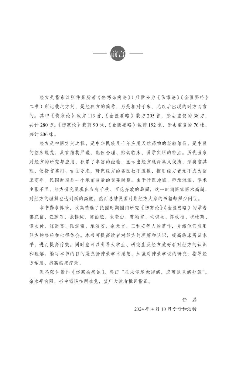 经方对于中医影响深远,用之对证,效如桴鼓。但经方的运用,又较难掌握,能够变通活用经方更是难上加难。民国时期是一个承前启后的重要时期,涌现出一批医术高超的著名医家,如恽铁樵、祝味菊、陆渊雷、张锡纯等,这些医家对《伤寒论》的研究尤为突出,对经方的理解也呈现出各有千秋、百花齐放的局面,为经方研究留下了宝贵的资料。民国时期相较于东汉、明清,气候特点、疾病谱更接近当代社会。本书将民国时期十几位著名医家——黎庇留、汪莲石、张锡纯、陈伯坛、朱壶山、曹颖甫、包识生、恽铁樵、祝味菊、谭次仲、陈逊斋、陆渊雷、承淡安、余无言、王和安对《伤寒论》《金匮要略》中经方的理解,加以整理,既便于临床医生从不同的角度理解经方,更有助于临床医生灵活运用经方。