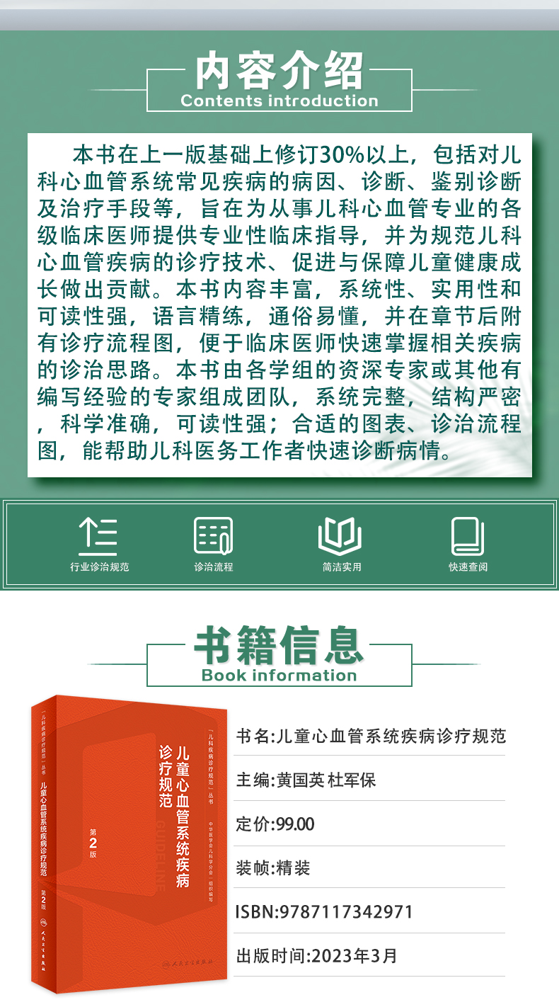 儿童心血管系统疾病诊疗规范 第2版 黄国英 杜军保主编 儿科疾病诊疗规范丛书 常见疾病诊治临床指导 人民卫生出版社9787117342971