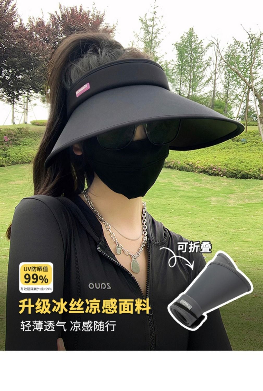 【爆款超低价预售 急单慎拍】新款空顶防晒帽女夏季防紫外线加大帽檐骑车遮阳帽黑色冰丝太阳帽