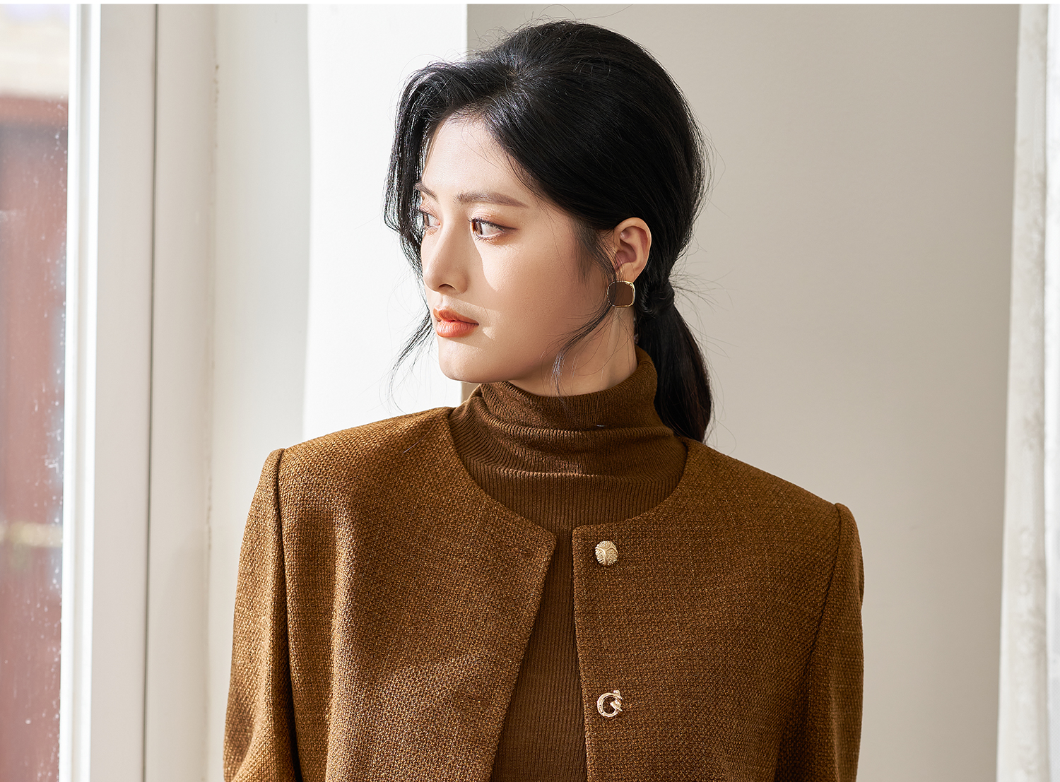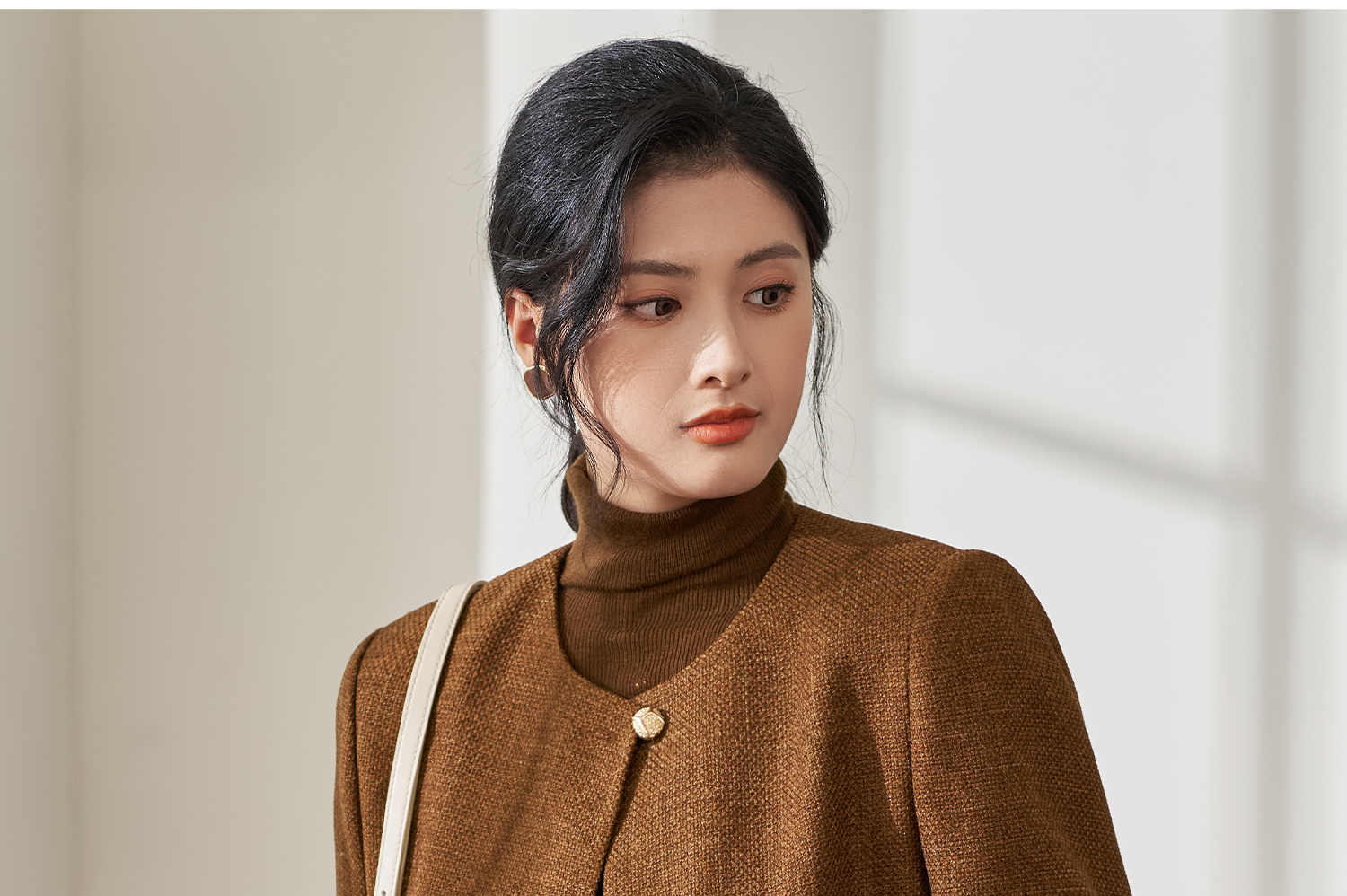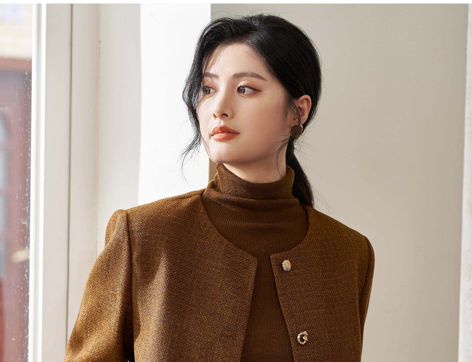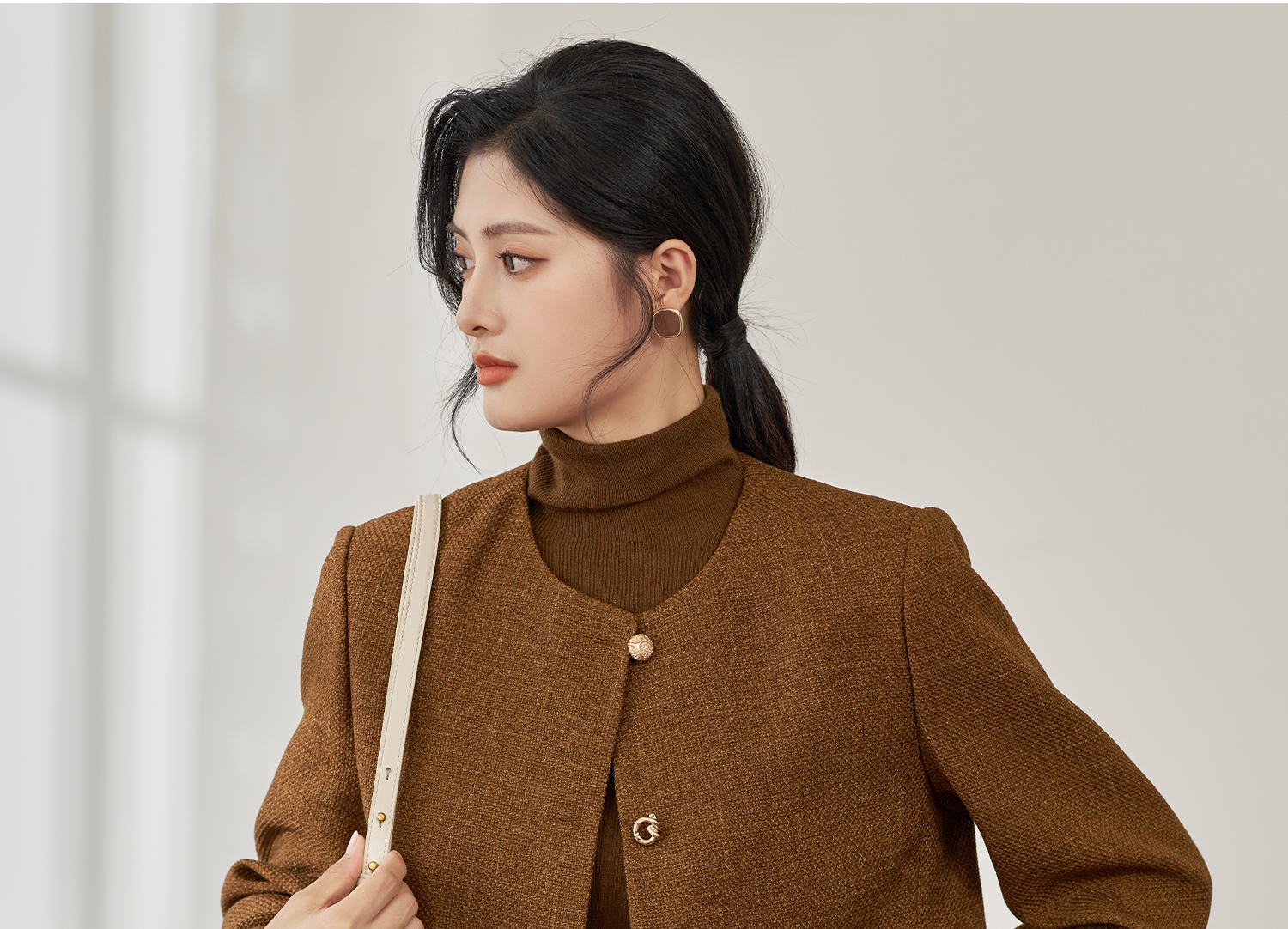 米思阳2025年秋季新品短款外套高级感咖色通勤一粒扣上衣女4206