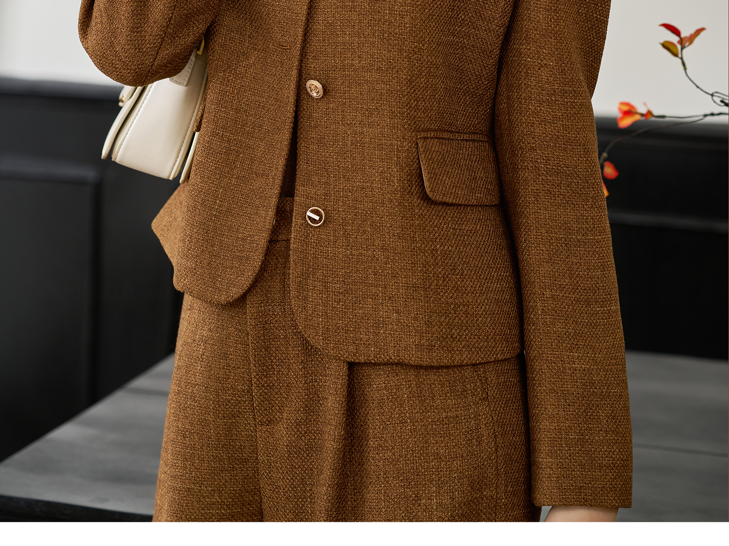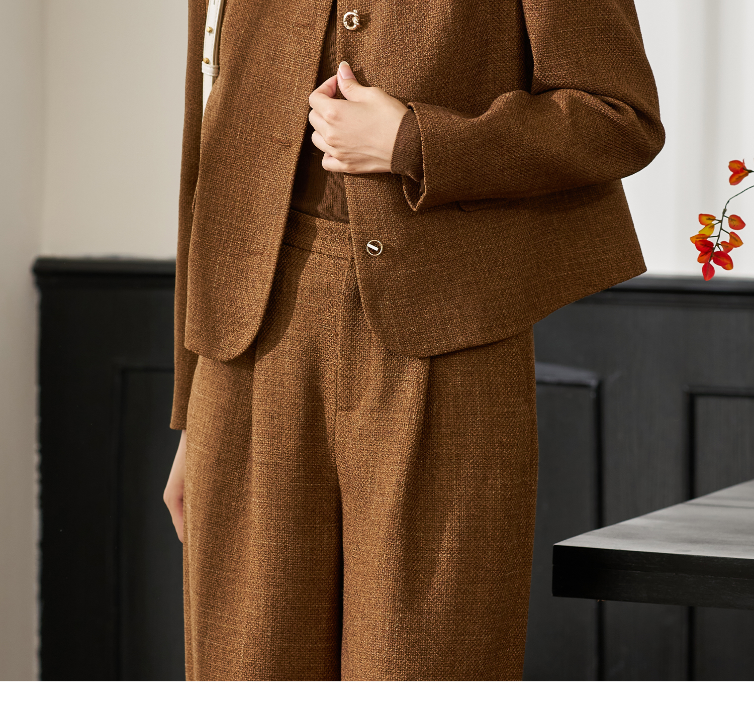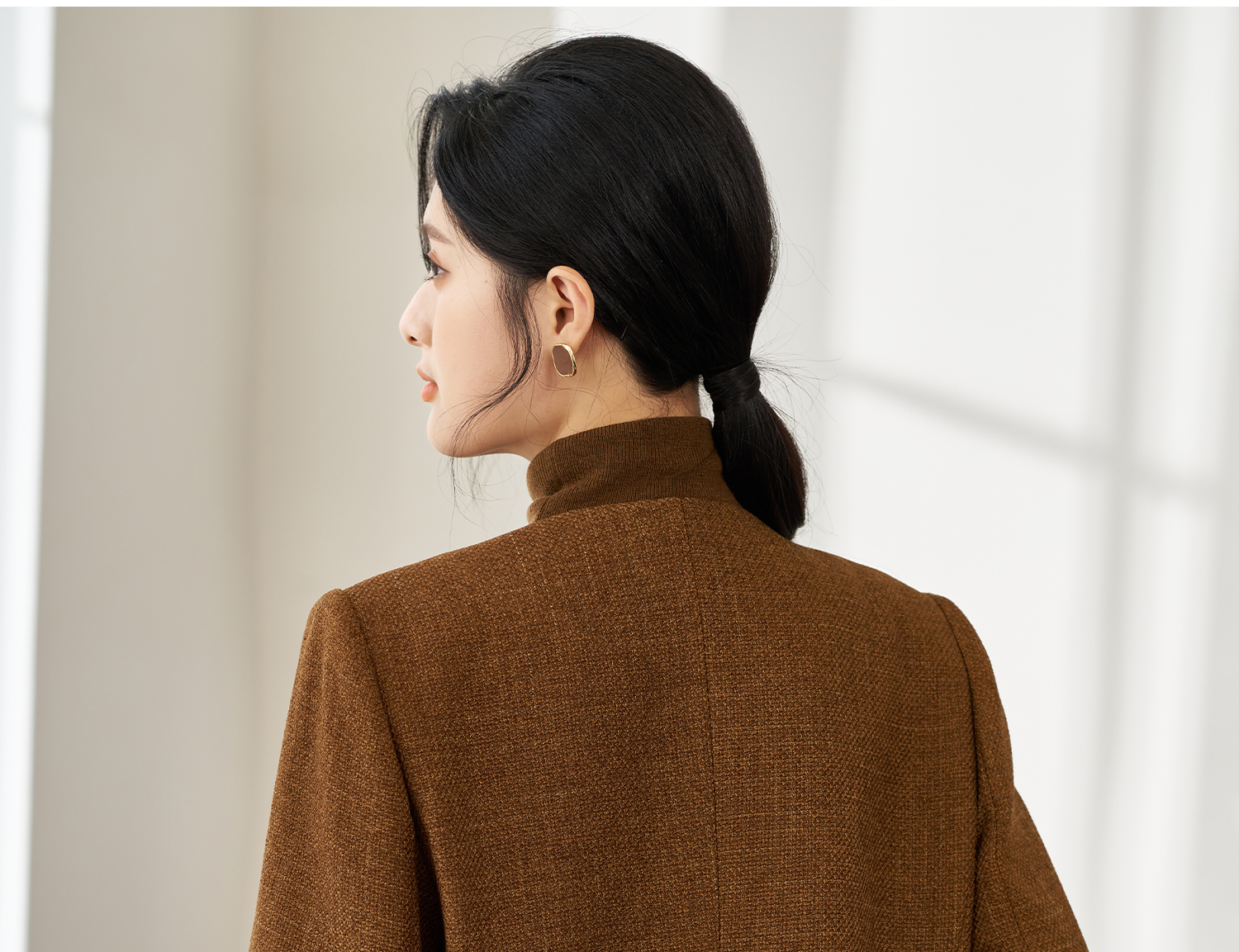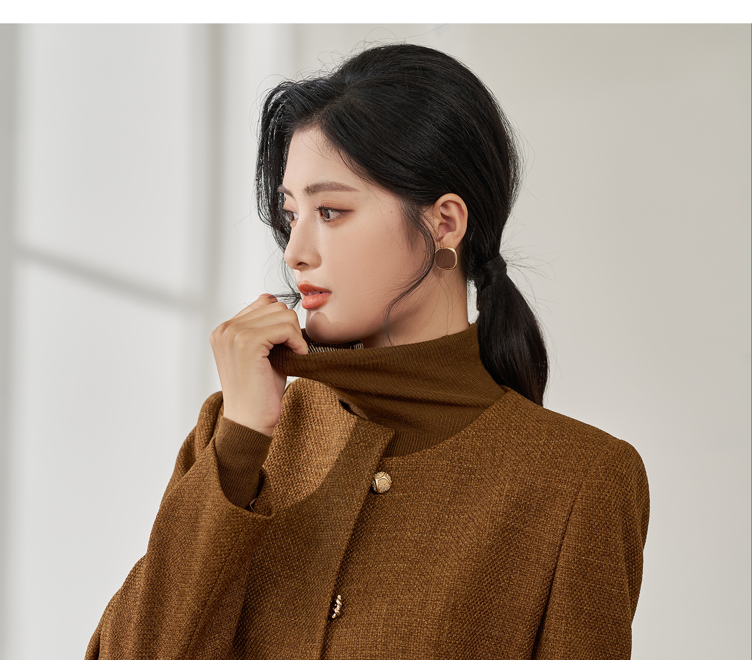 米思阳2025年秋季新品短款外套高级感咖色通勤一粒扣上衣女4206
