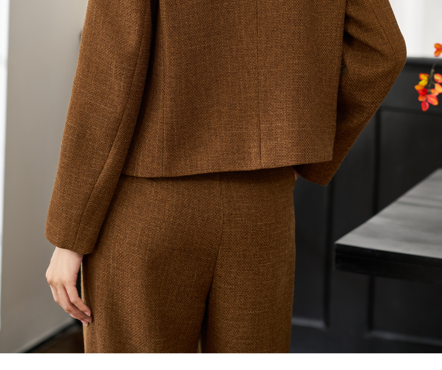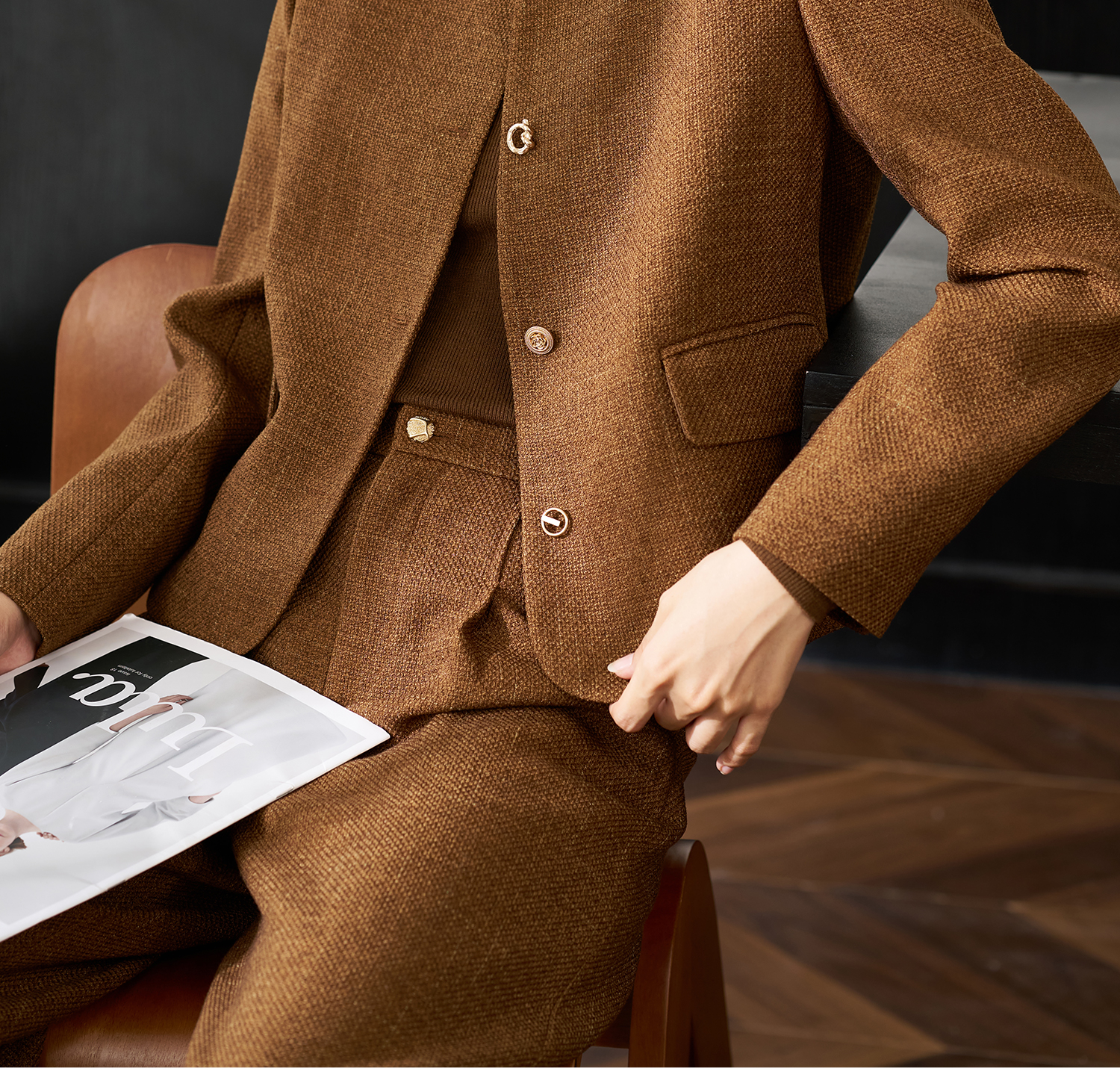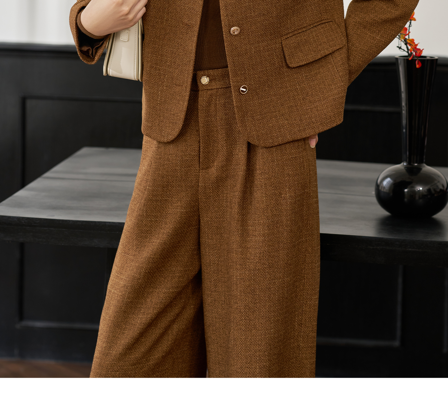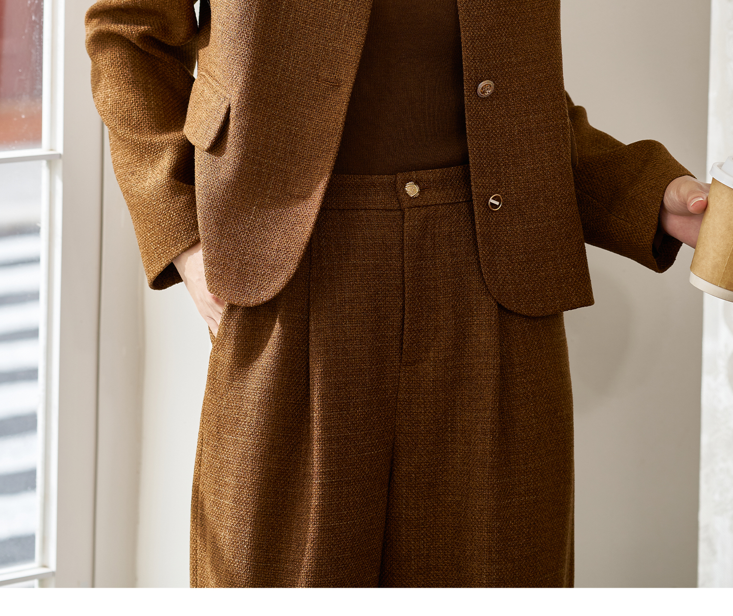 米思阳2025年秋季新品短款外套高级感咖色通勤一粒扣上衣女4206