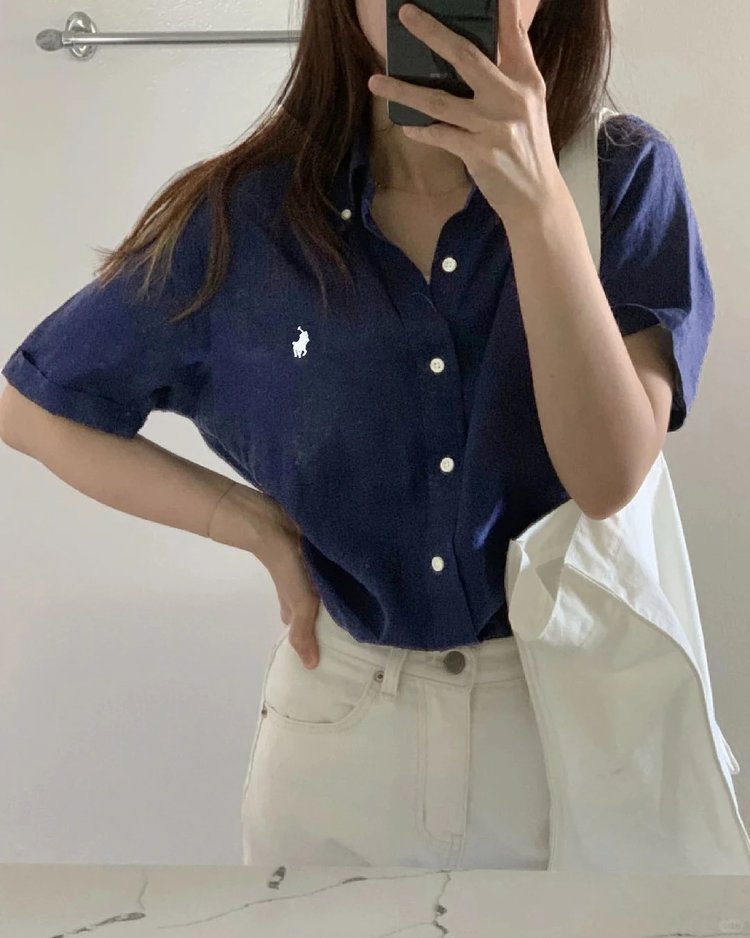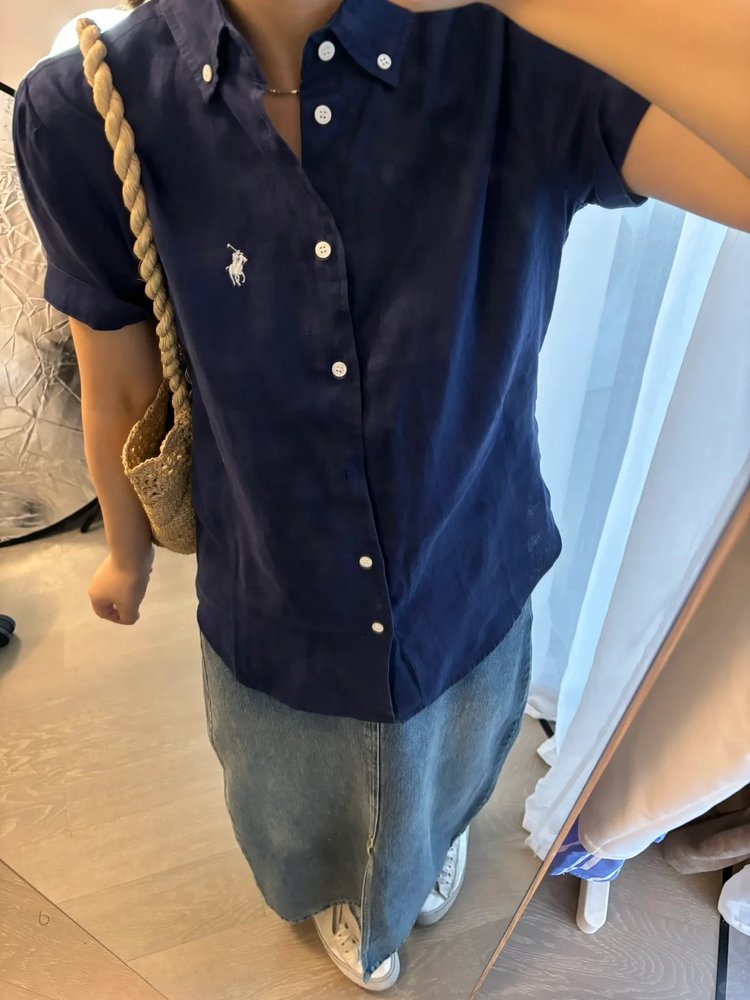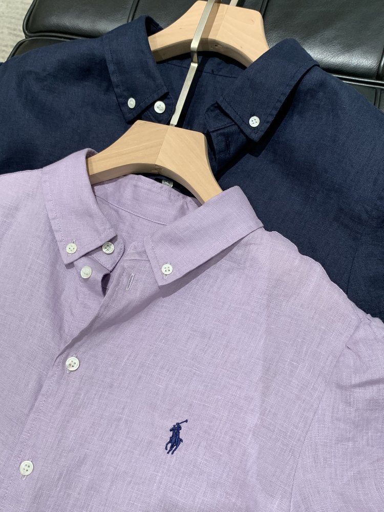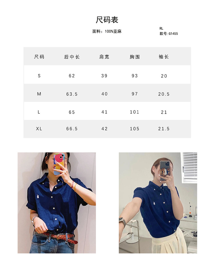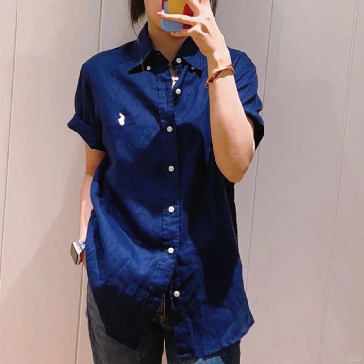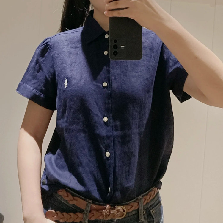 【高品质私服】【RL藏青亚麻短袖衬衫】天然亚麻经纬,松弛慵懒自在,藏青亚麻的随性中和了职场的紧绷G14XX-CC【无标出货 介意慎拍】