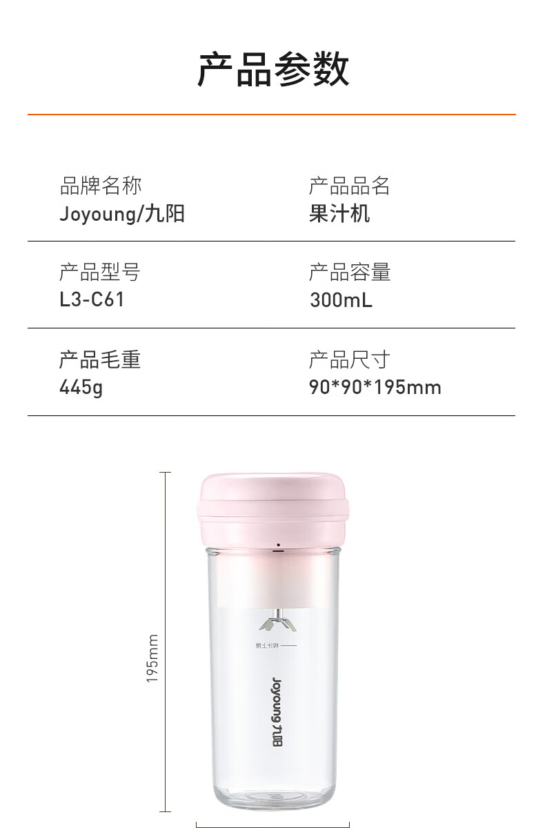 九阳便携榨汁机L3-C61【分仓直发,72小时发货,周末节假日不发货】