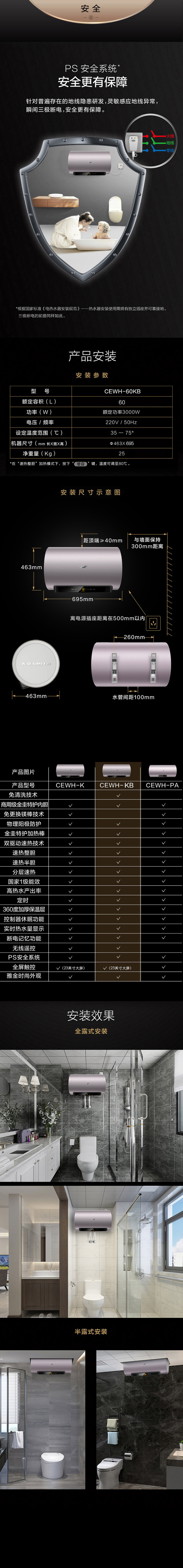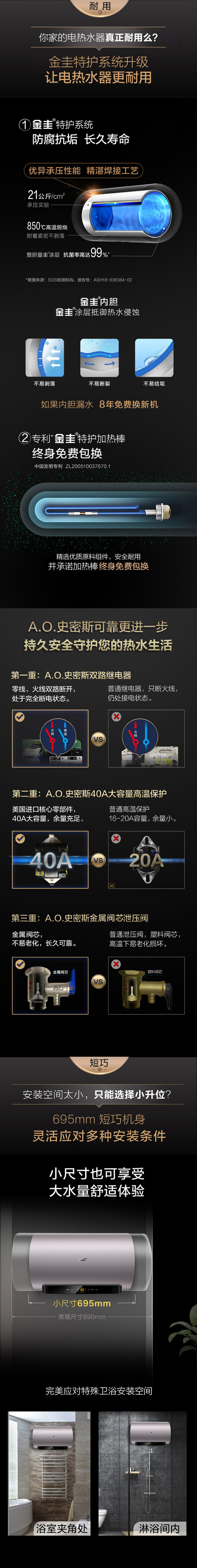 A.O.史密斯(508997 )CEWH-80K免更换镁棒型金圭内胆电热水器雅金版 80L