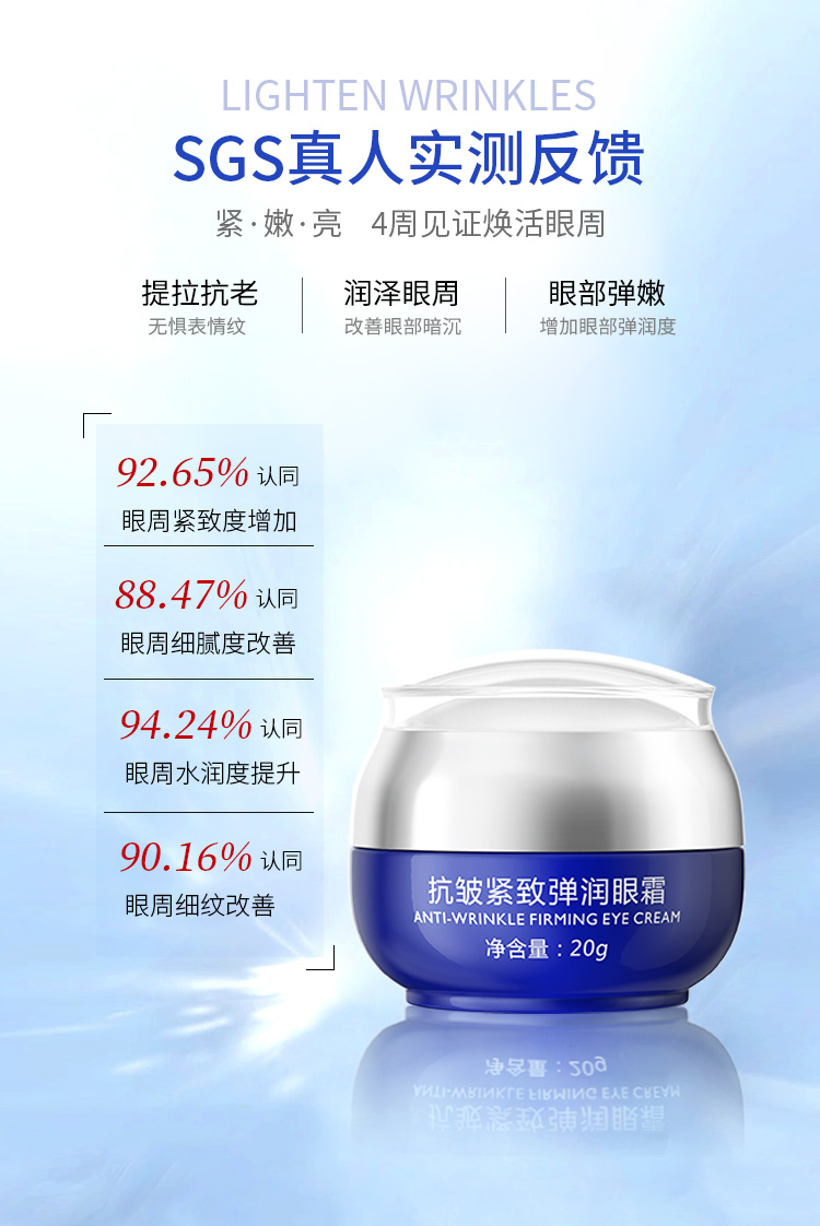 【年终大促】抗皱紧致弹润眼霜 20g 抗皱眼霜 经过【抗皱+紧致功效检测】证实有紧致抗皱的功效效果