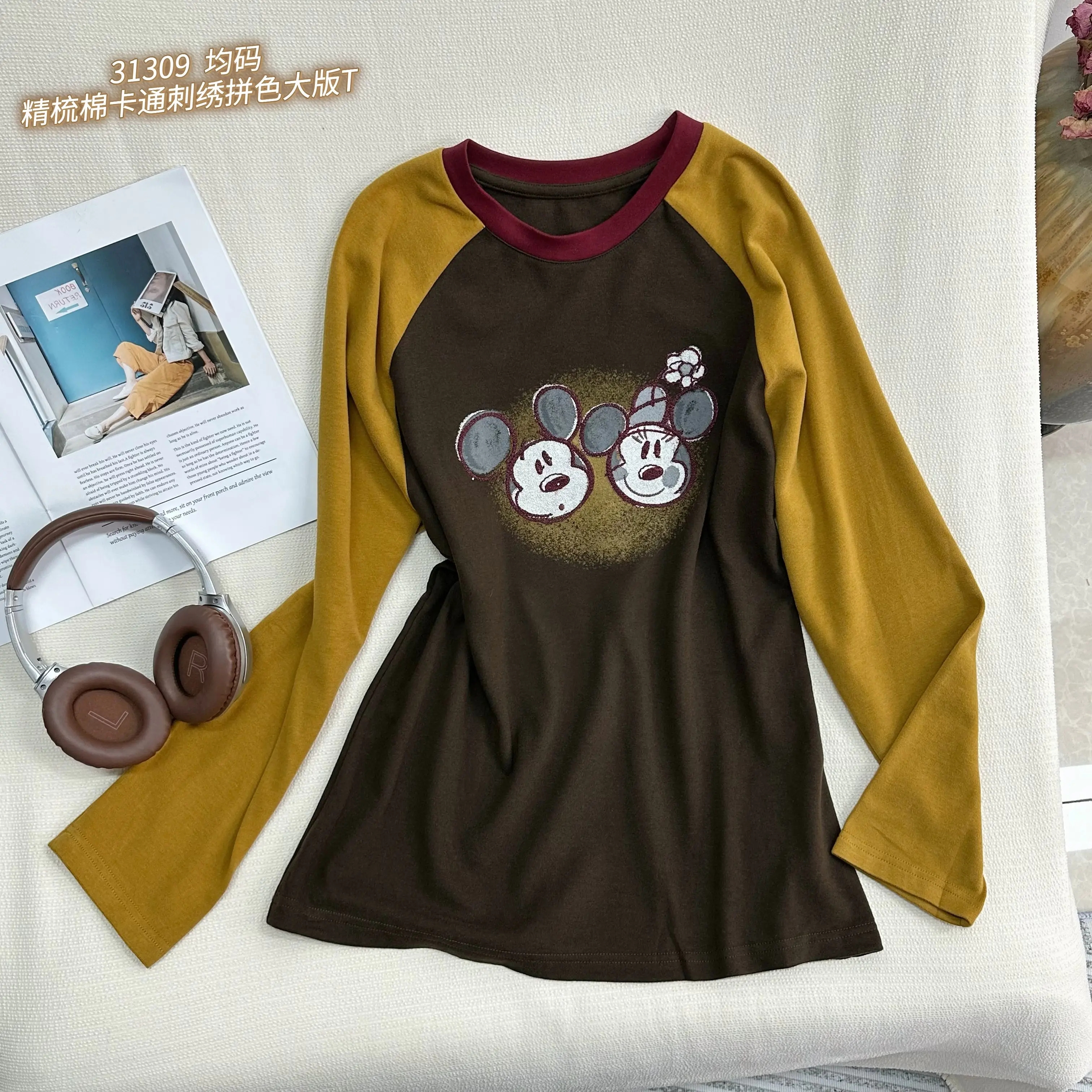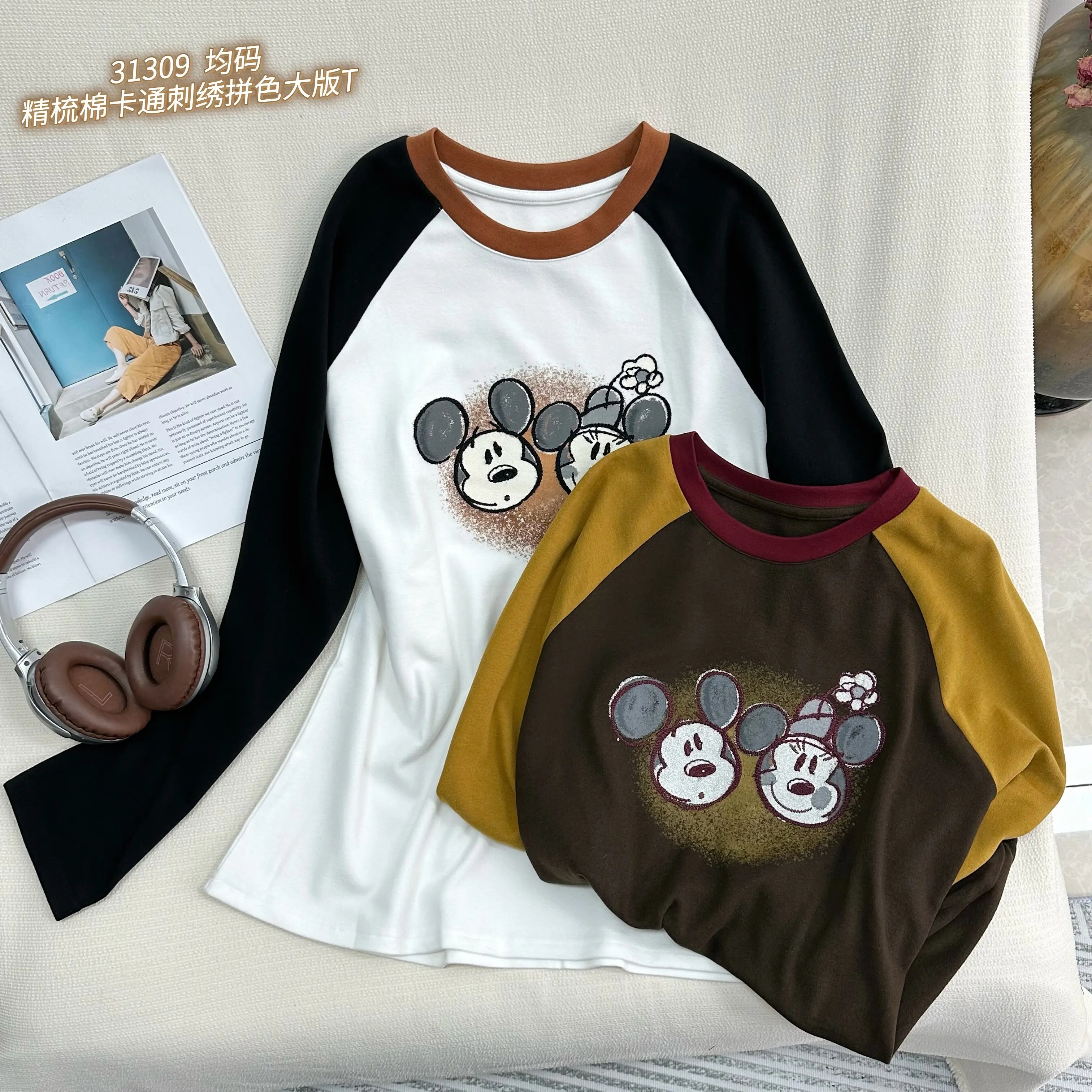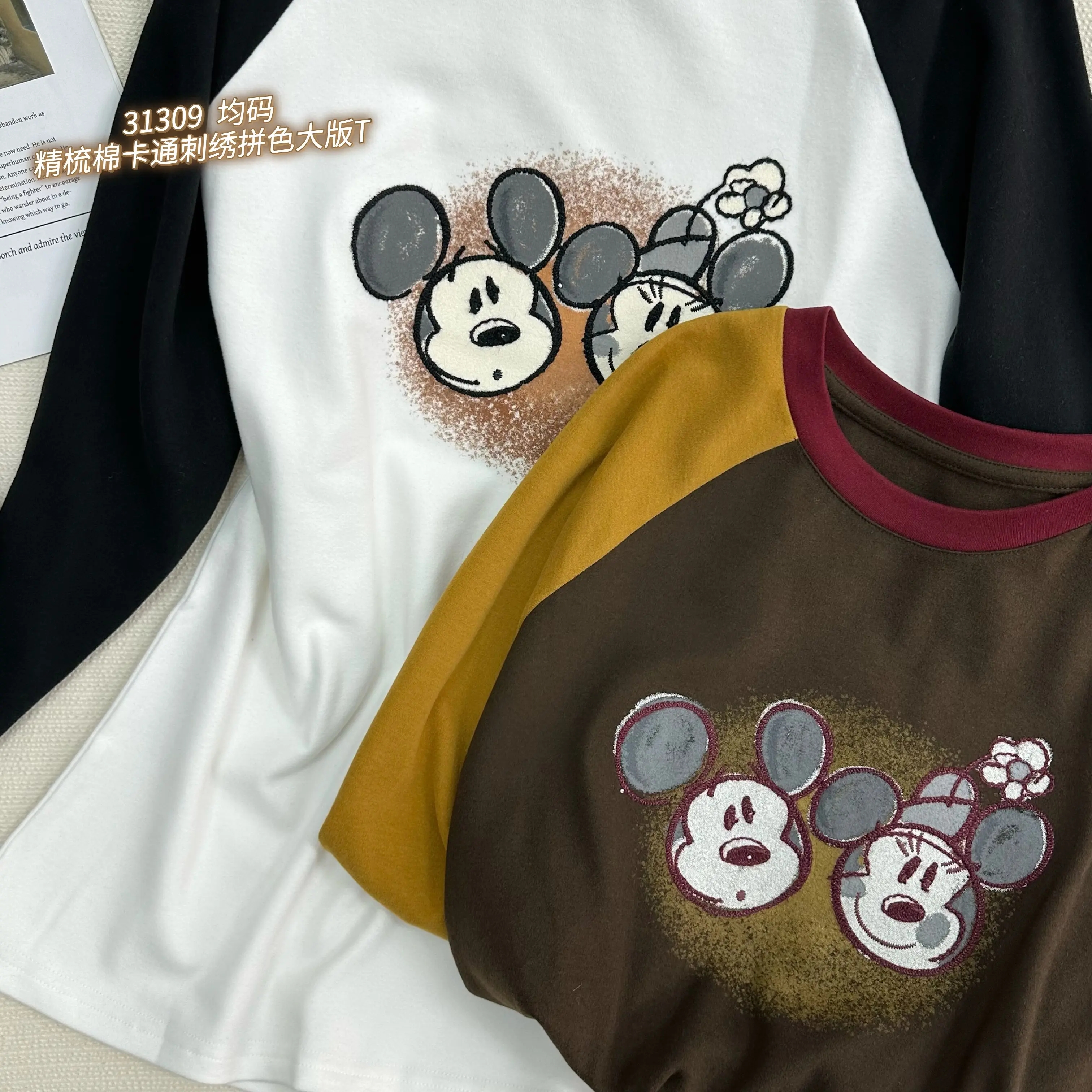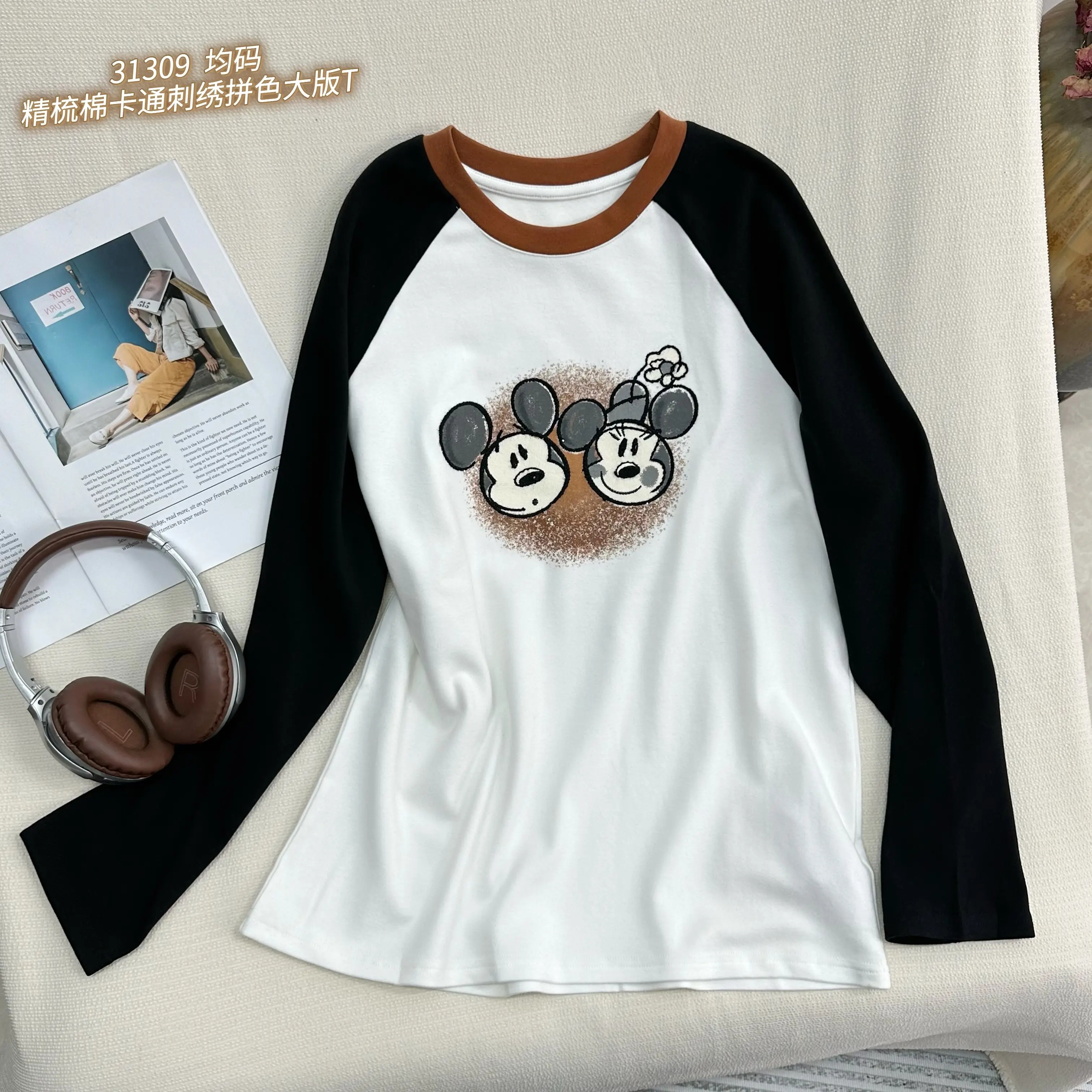 G5TX31309#精梳棉卡通刺绣拼色大版T