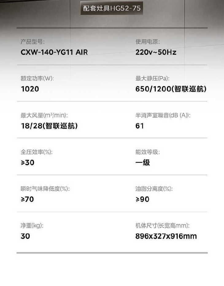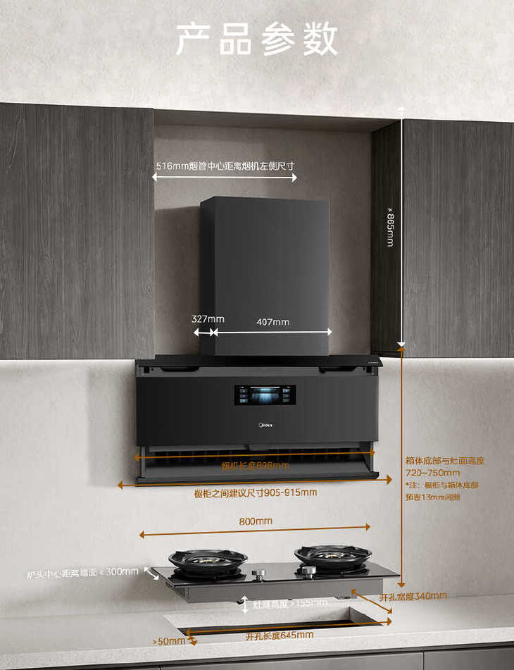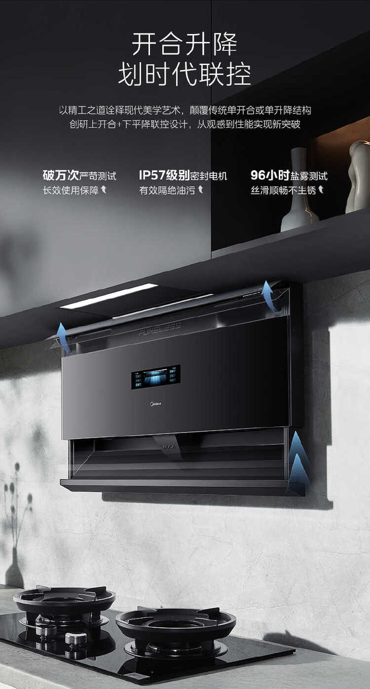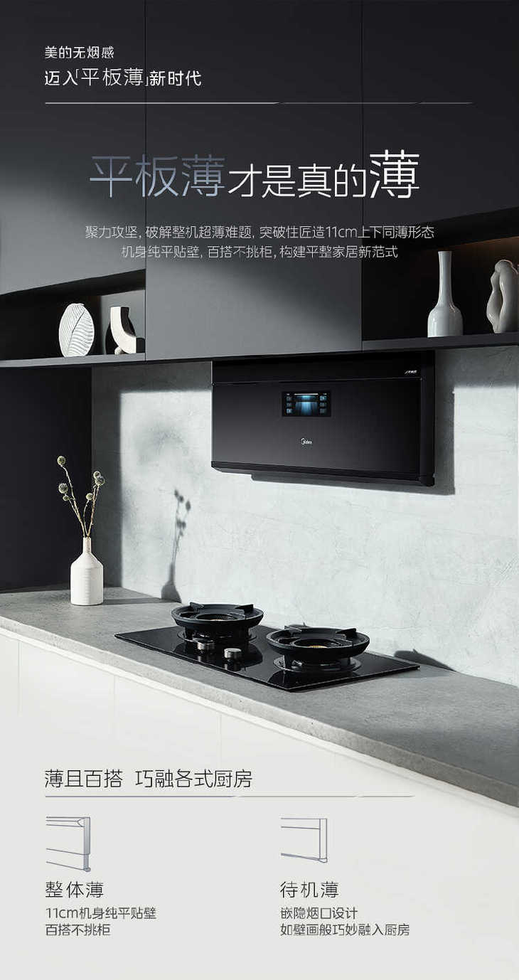 美的(510655)CXW-140-YG11 AIR 超薄双吸式油烟机 触控+挥手 冷轧板喷涂+玻璃 中国