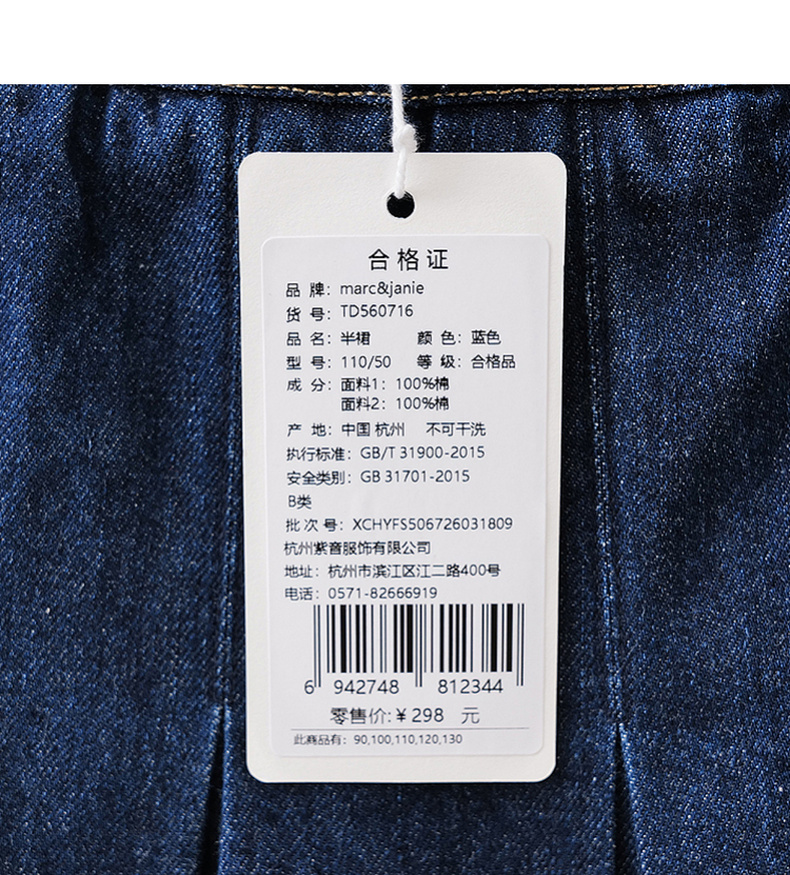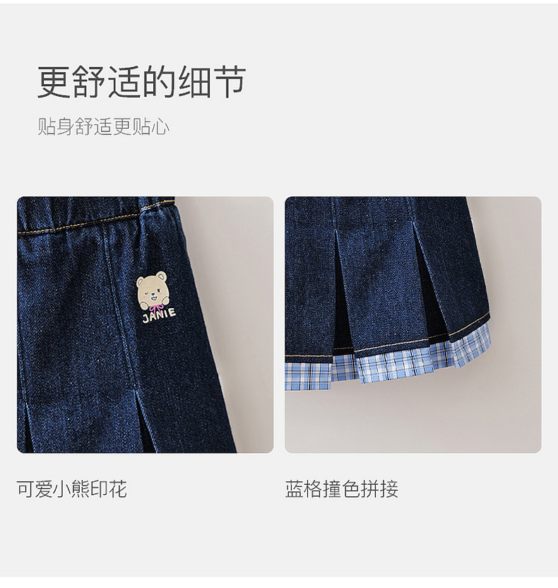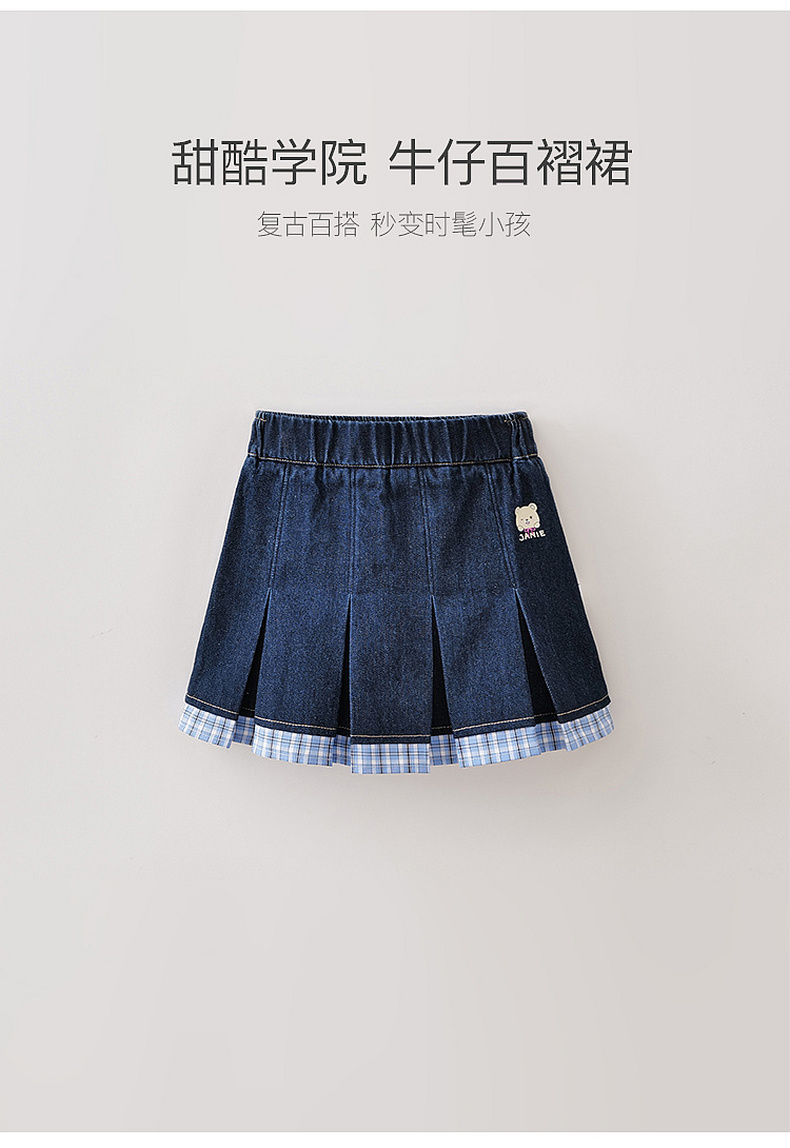 马克珍妮甜酷学院女童牛仔百褶裙2026年夏装新款560716