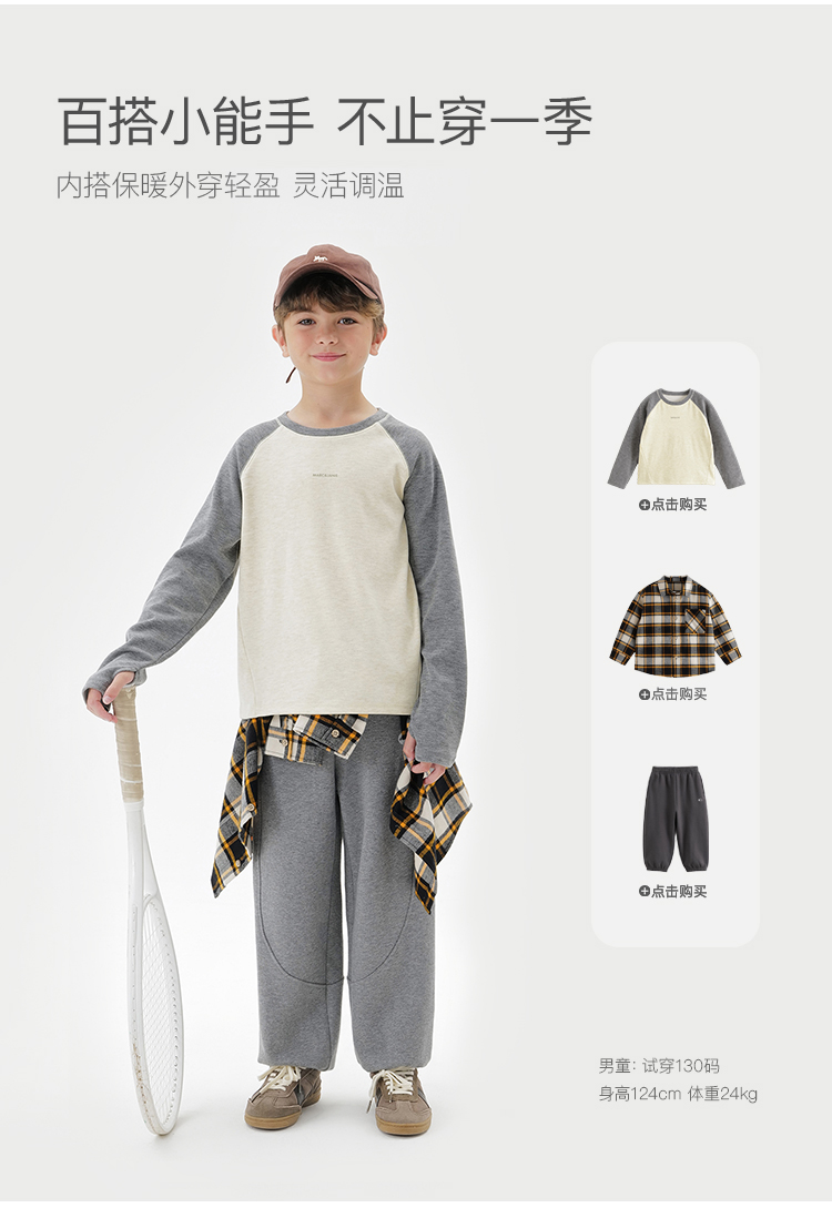 【糯糯绒】马克珍妮男女童轻暖舒适运动T恤2025年秋装新款551717