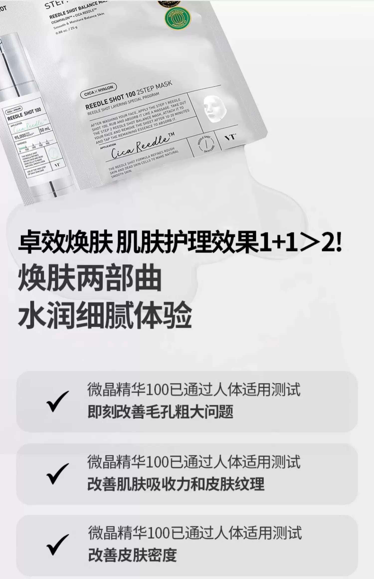 韩国 VT范特 微晶焕颜积雪草补水二部曲面膜 100针/300针