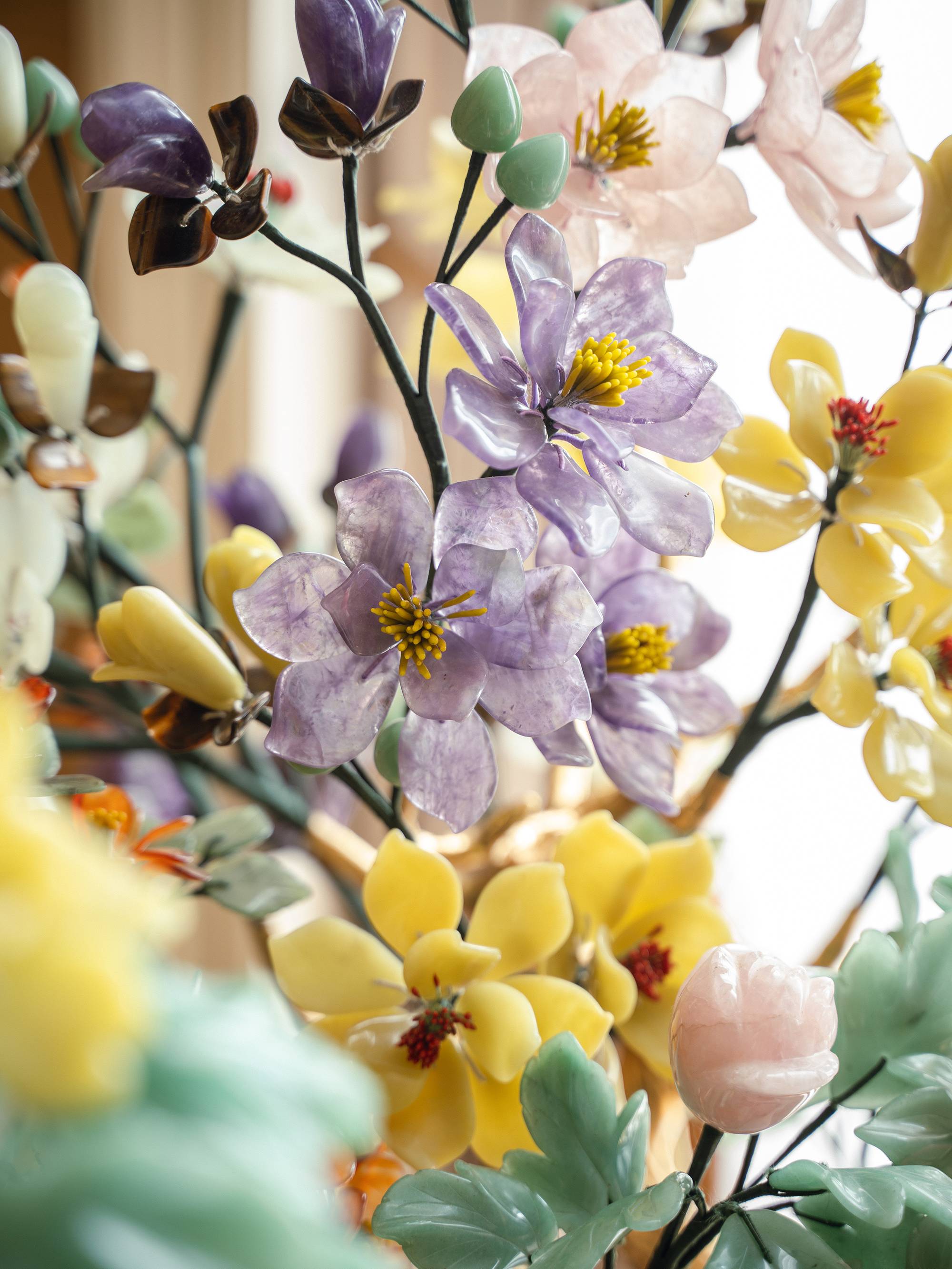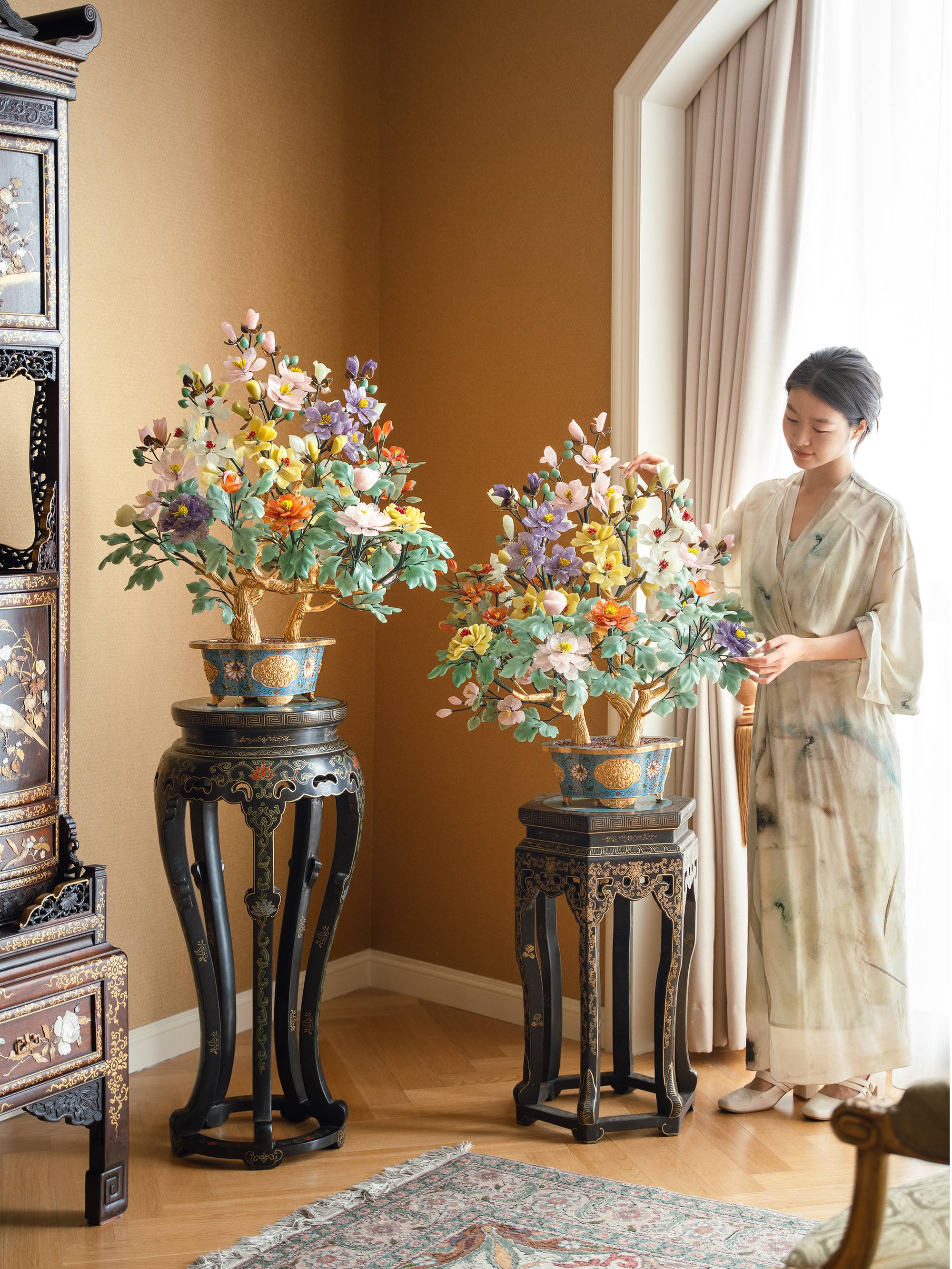 中国出品传统宝相花纹景泰蓝盆装饰「玉堂富贵」主题珍宝像生盆景一对