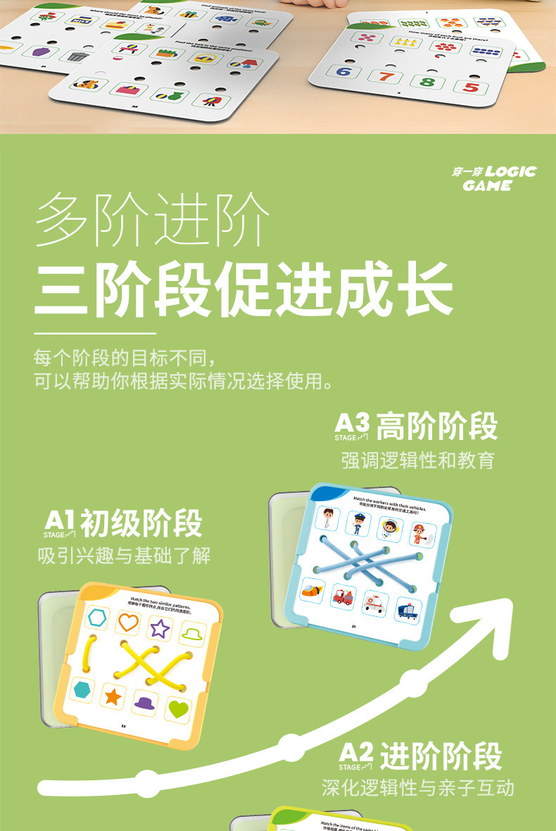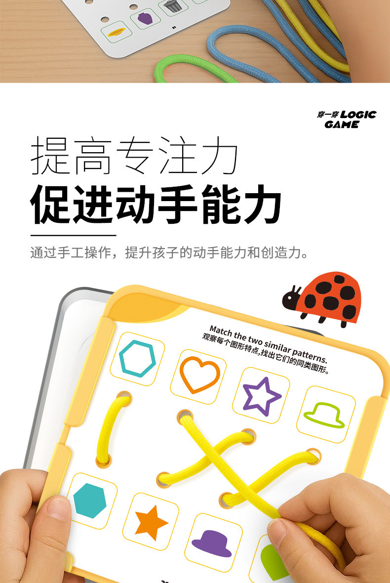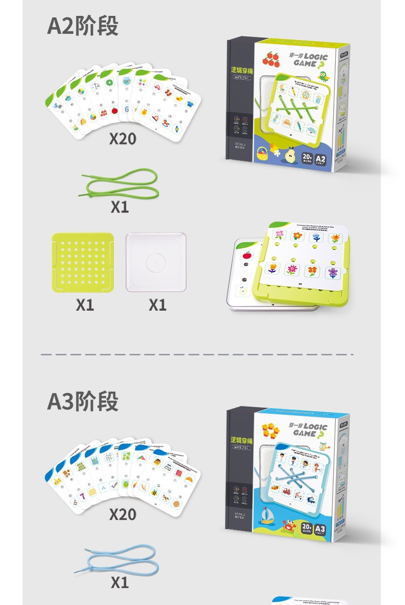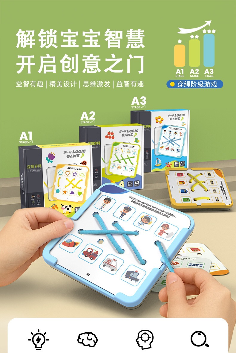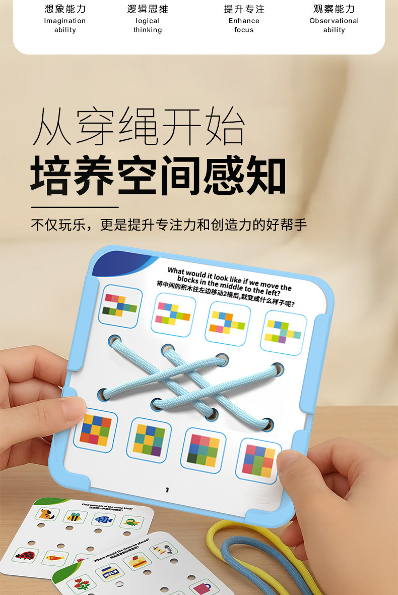 【逻辑穿绳游戏】宝宝早教连线玩具 空间思维训练卡片 提手专注力 锻炼精细动作 三阶循序渐进 益智有趣 激发创造力