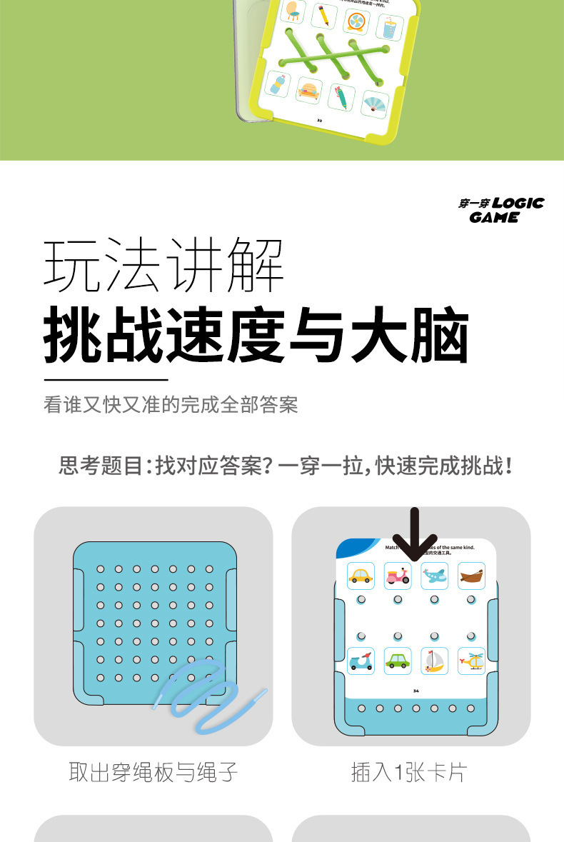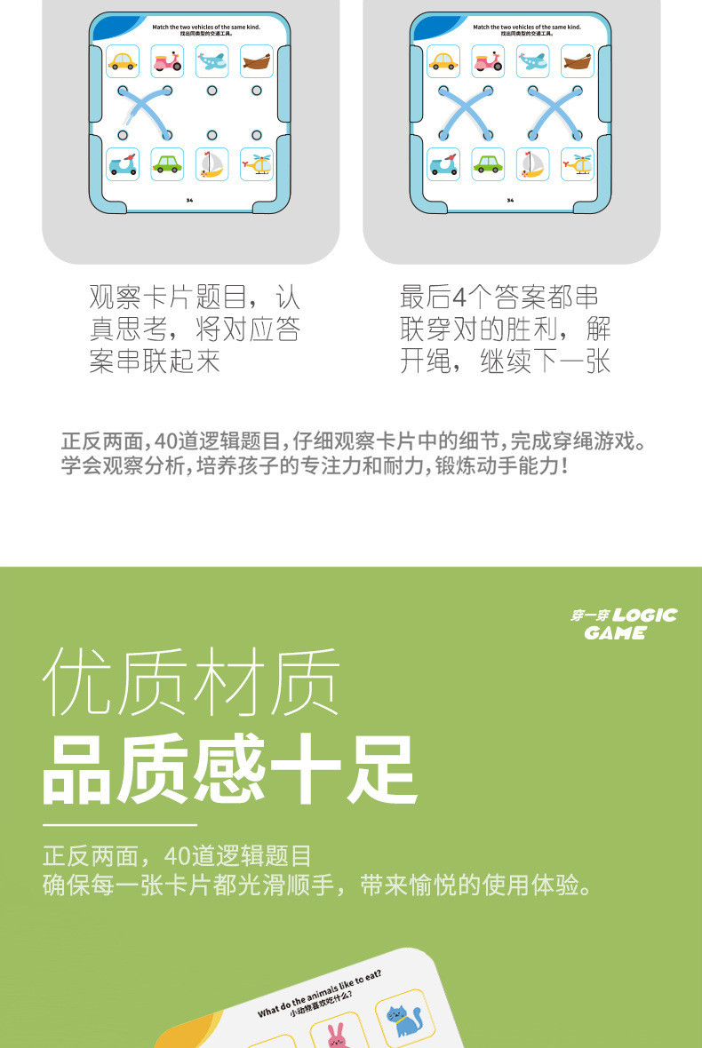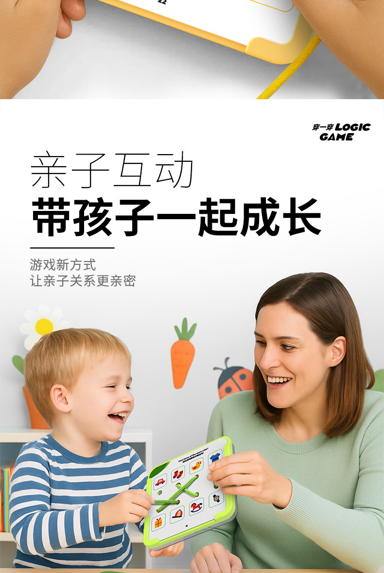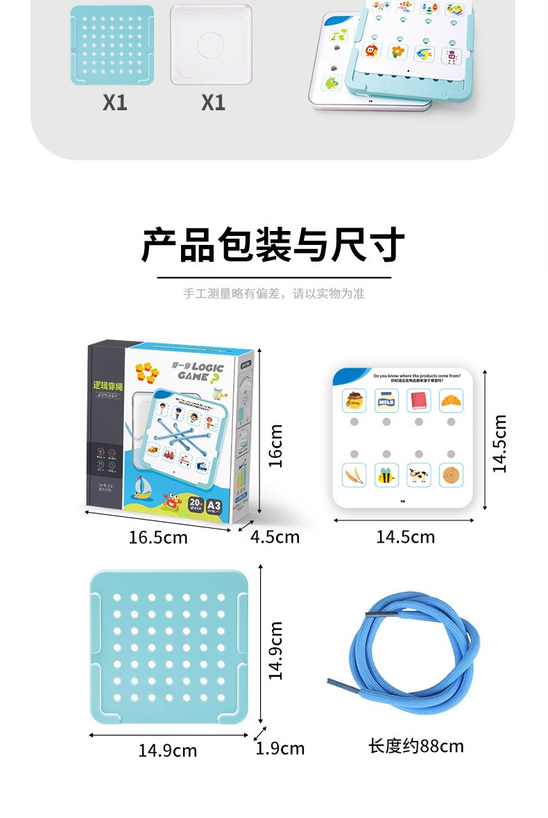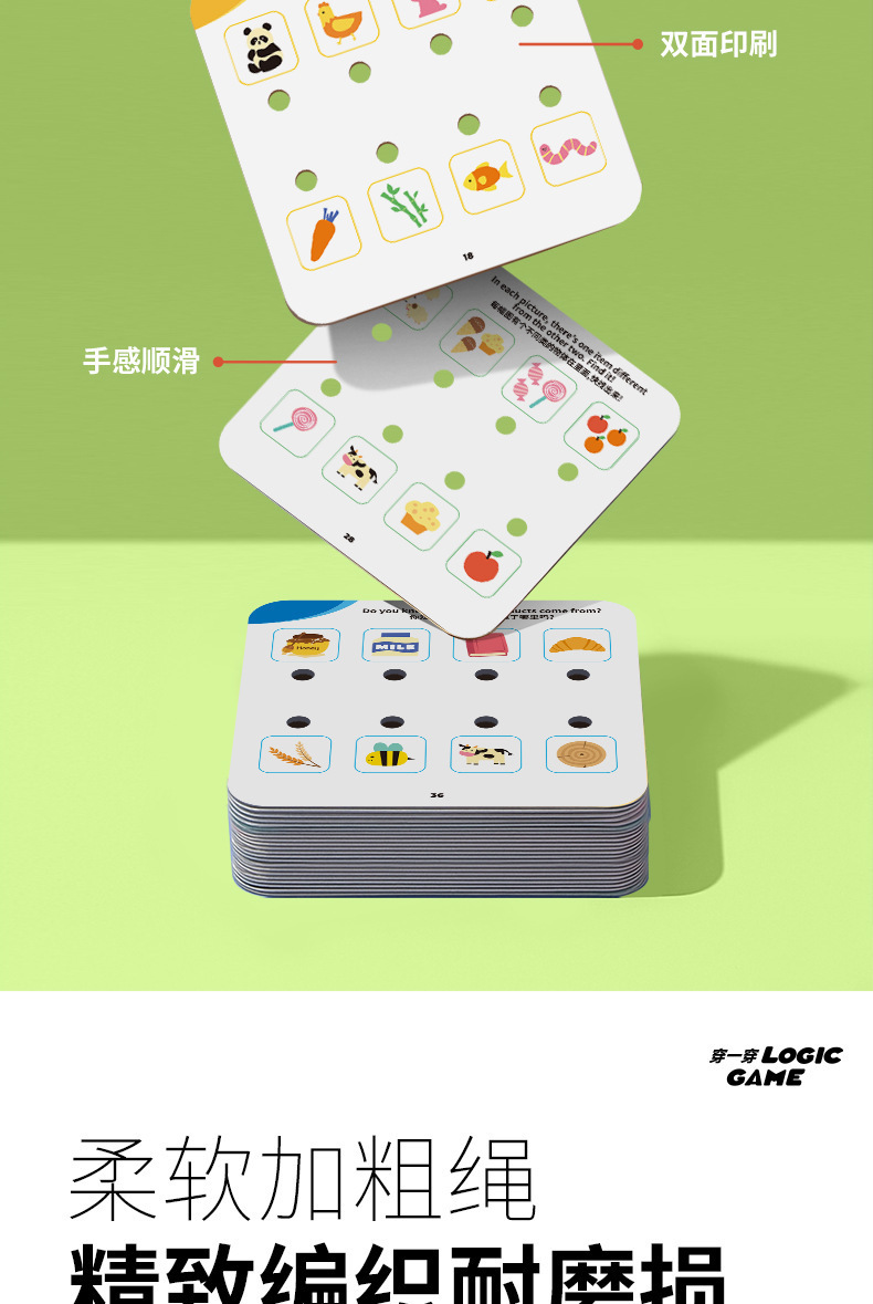 【逻辑穿绳游戏】宝宝早教连线玩具 空间思维训练卡片 提手专注力 锻炼精细动作 三阶循序渐进 益智有趣 激发创造力