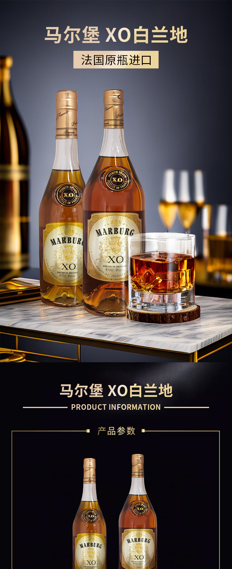 法国进口马尔堡XO白兰地70cl 40%Vol.