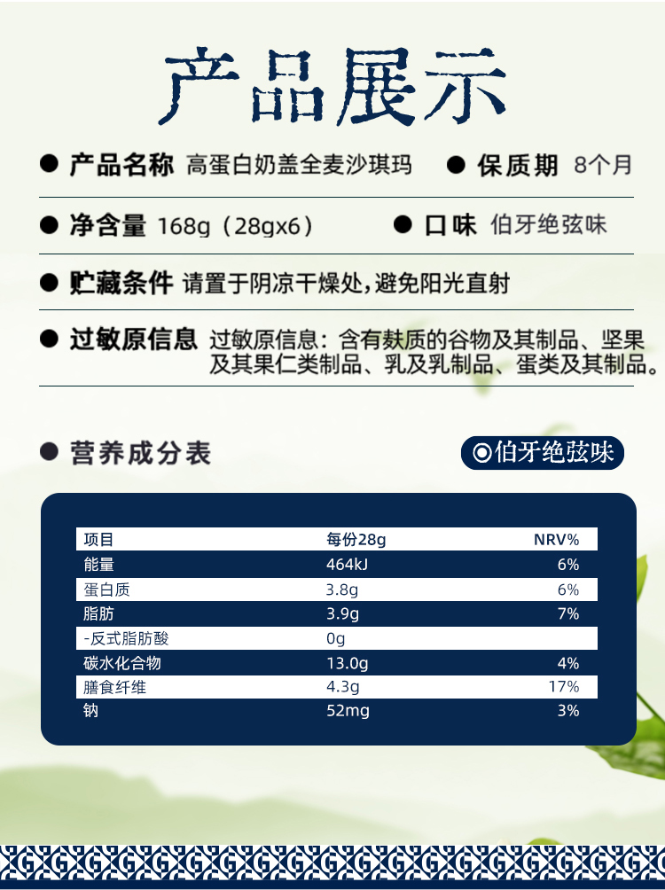 【退酮过渡】【生酮不可】哥本™高蛋白奶盖全麦沙琪玛(伯牙绝弦味)168g(28gx6袋)