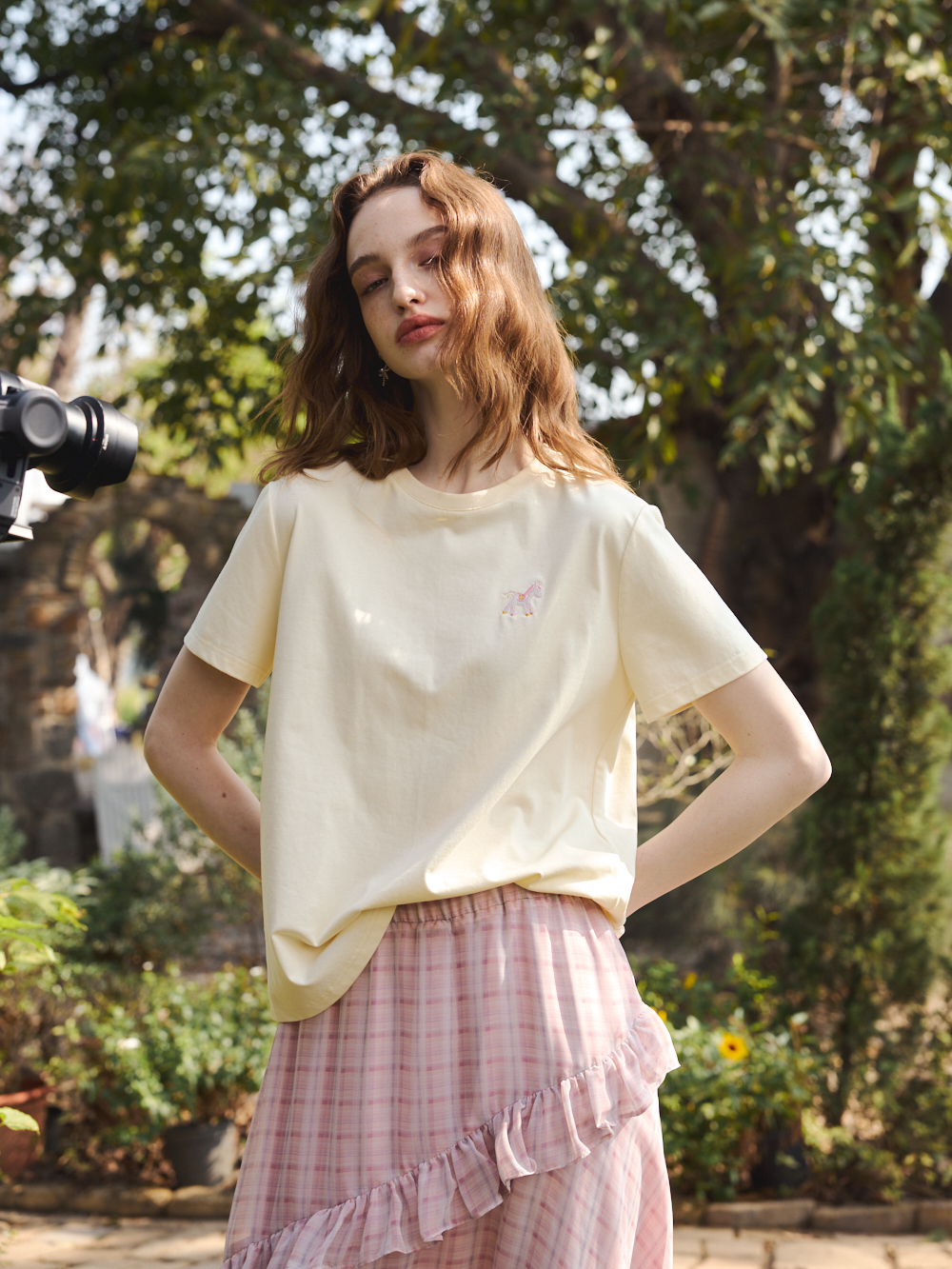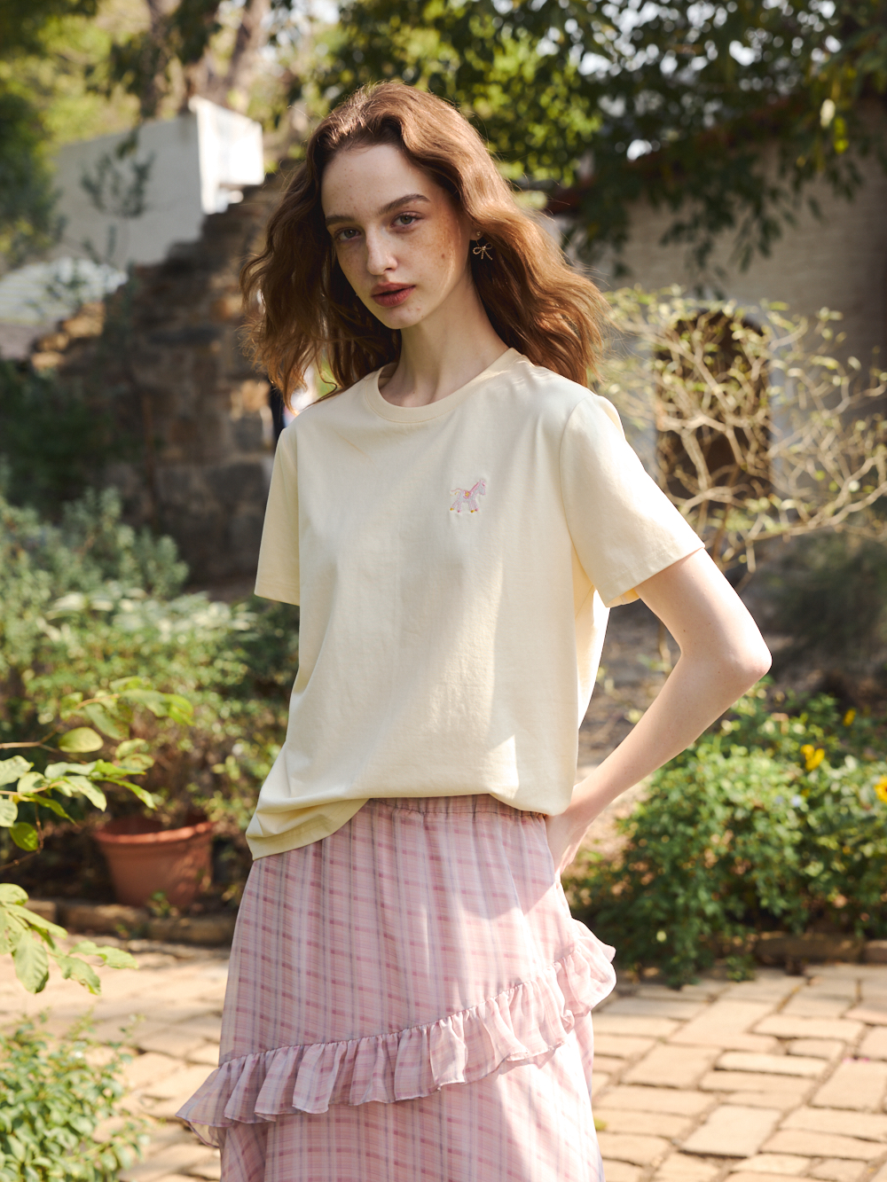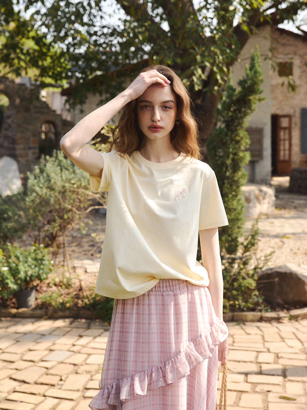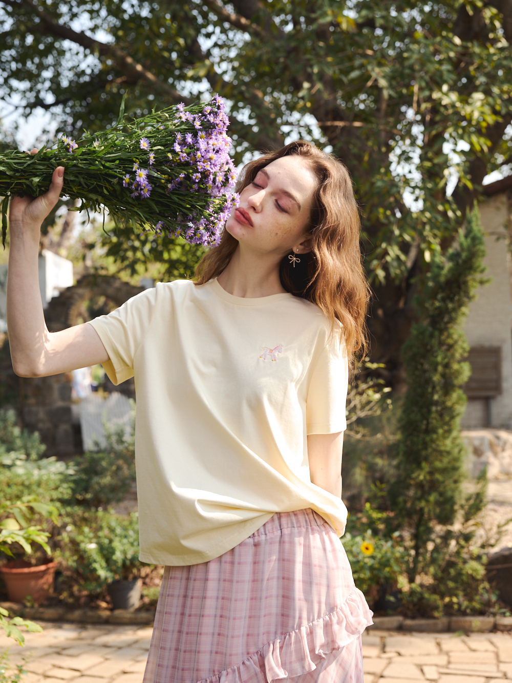 OLrain欧芮儿2026米黄色T恤夏季宽松百搭休闲上衣