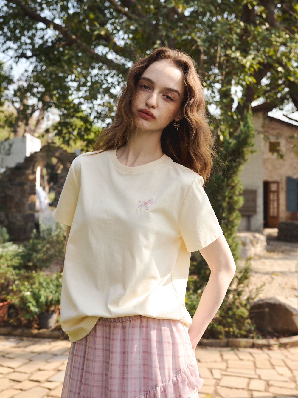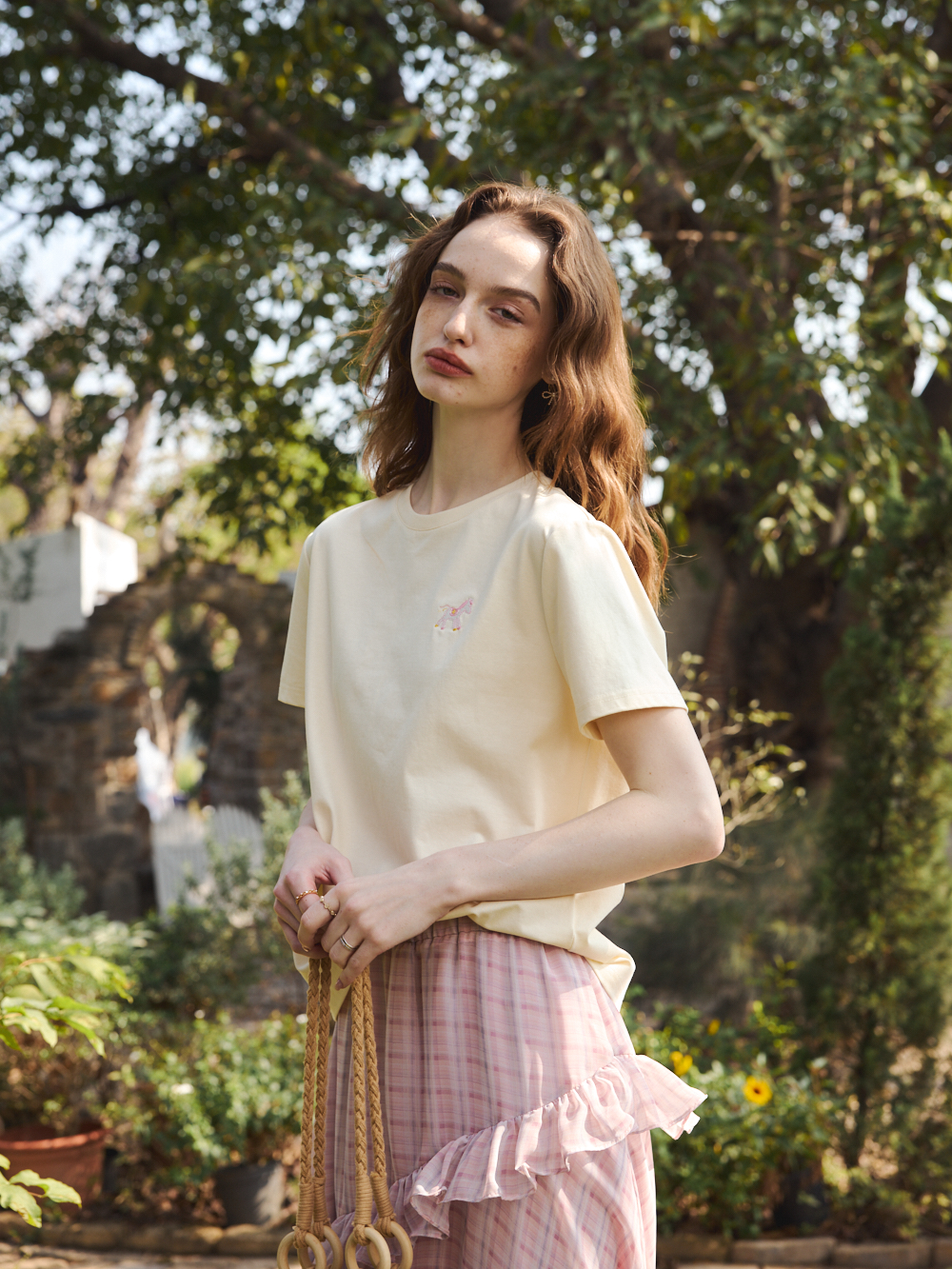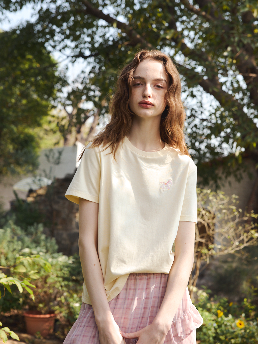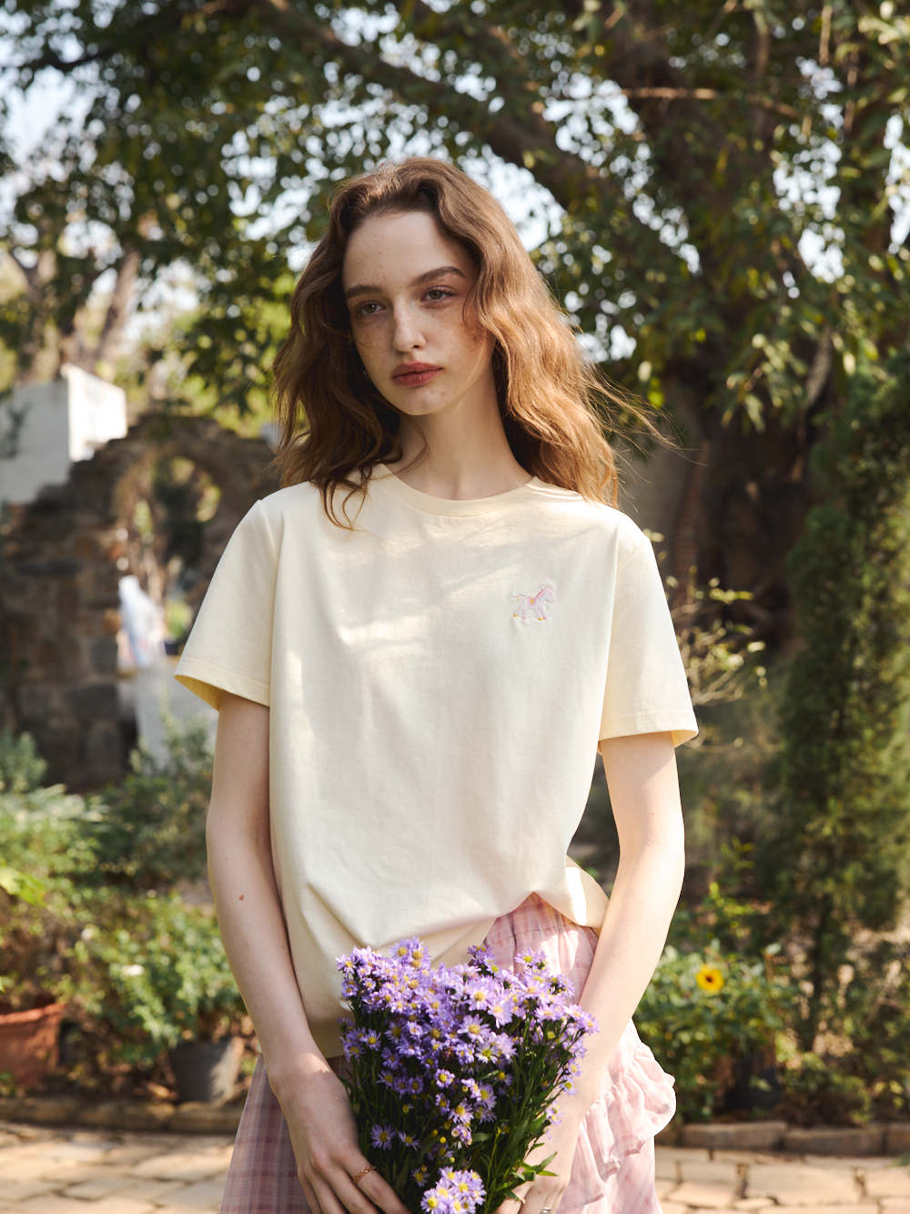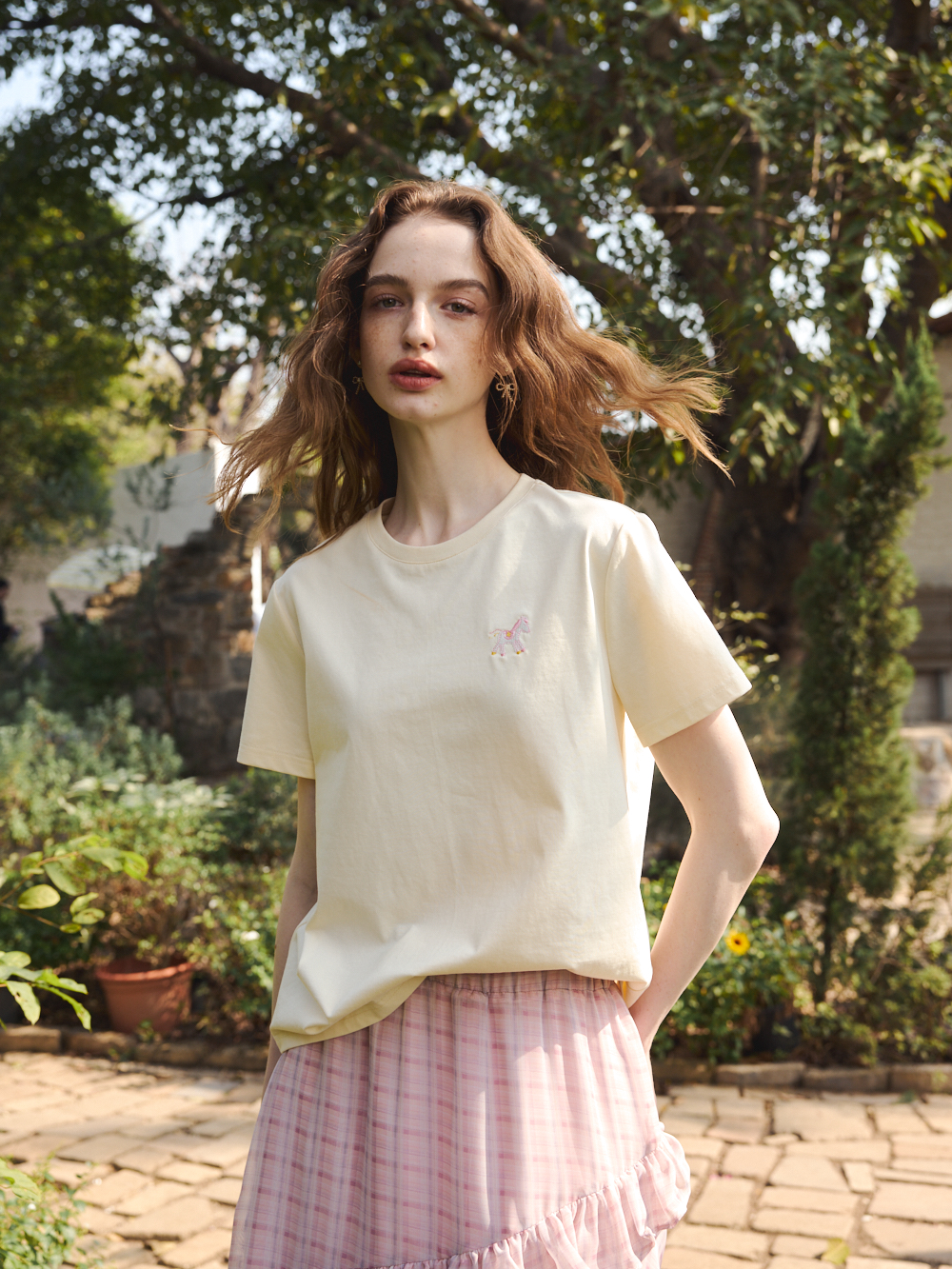 OLrain欧芮儿2026米黄色T恤夏季宽松百搭休闲上衣