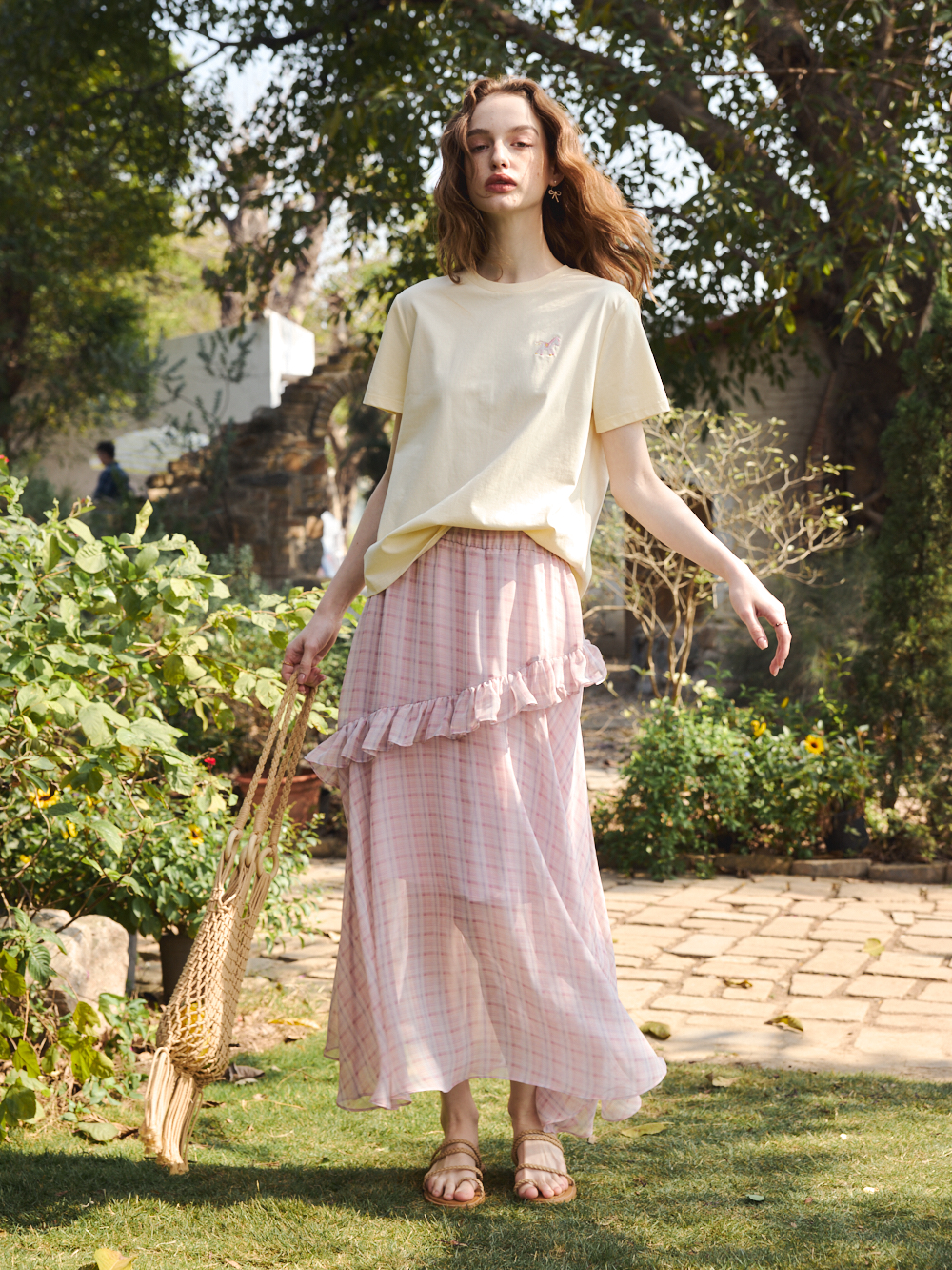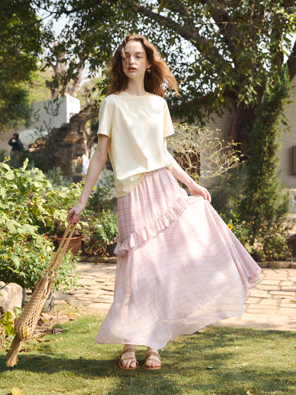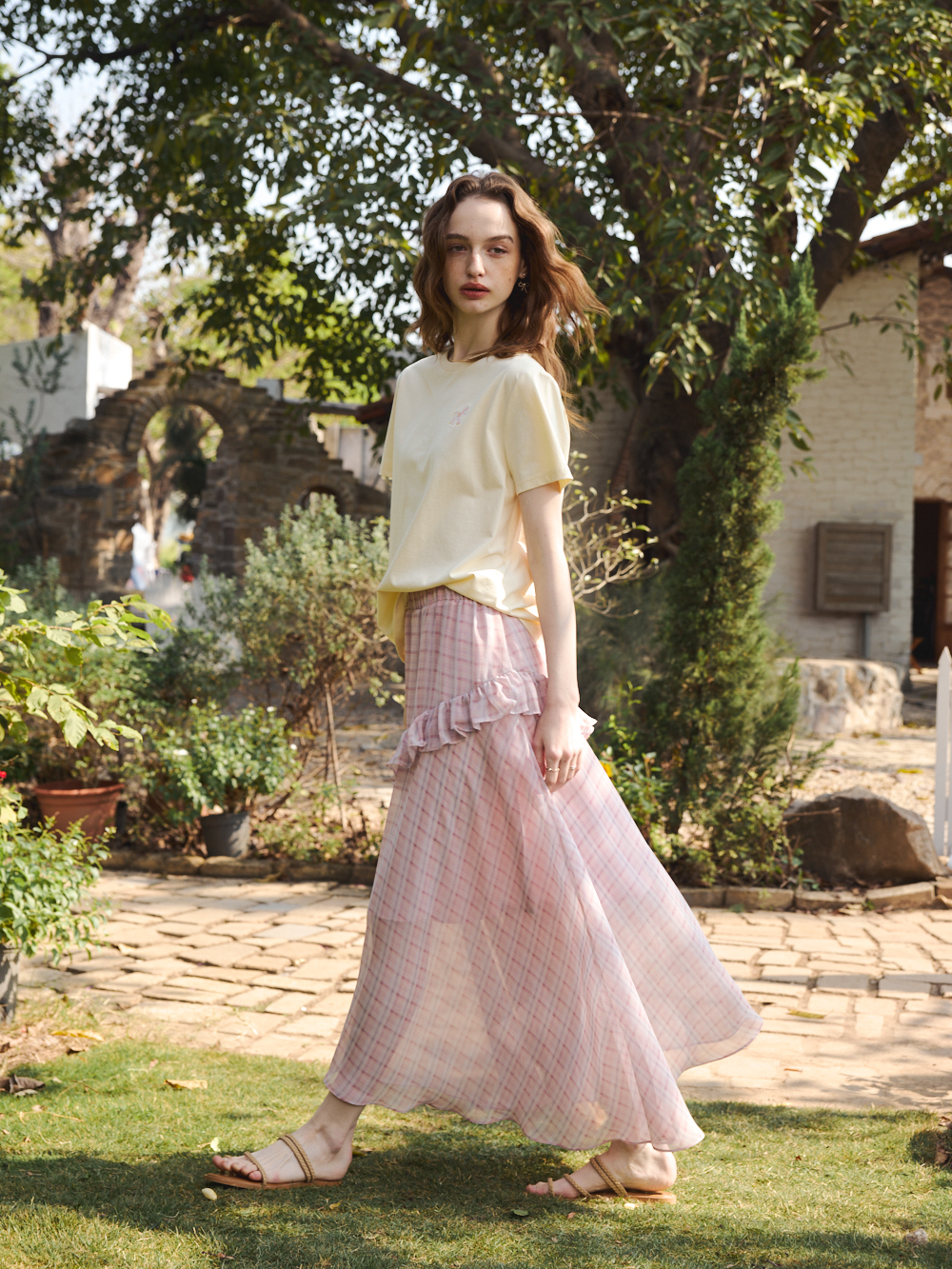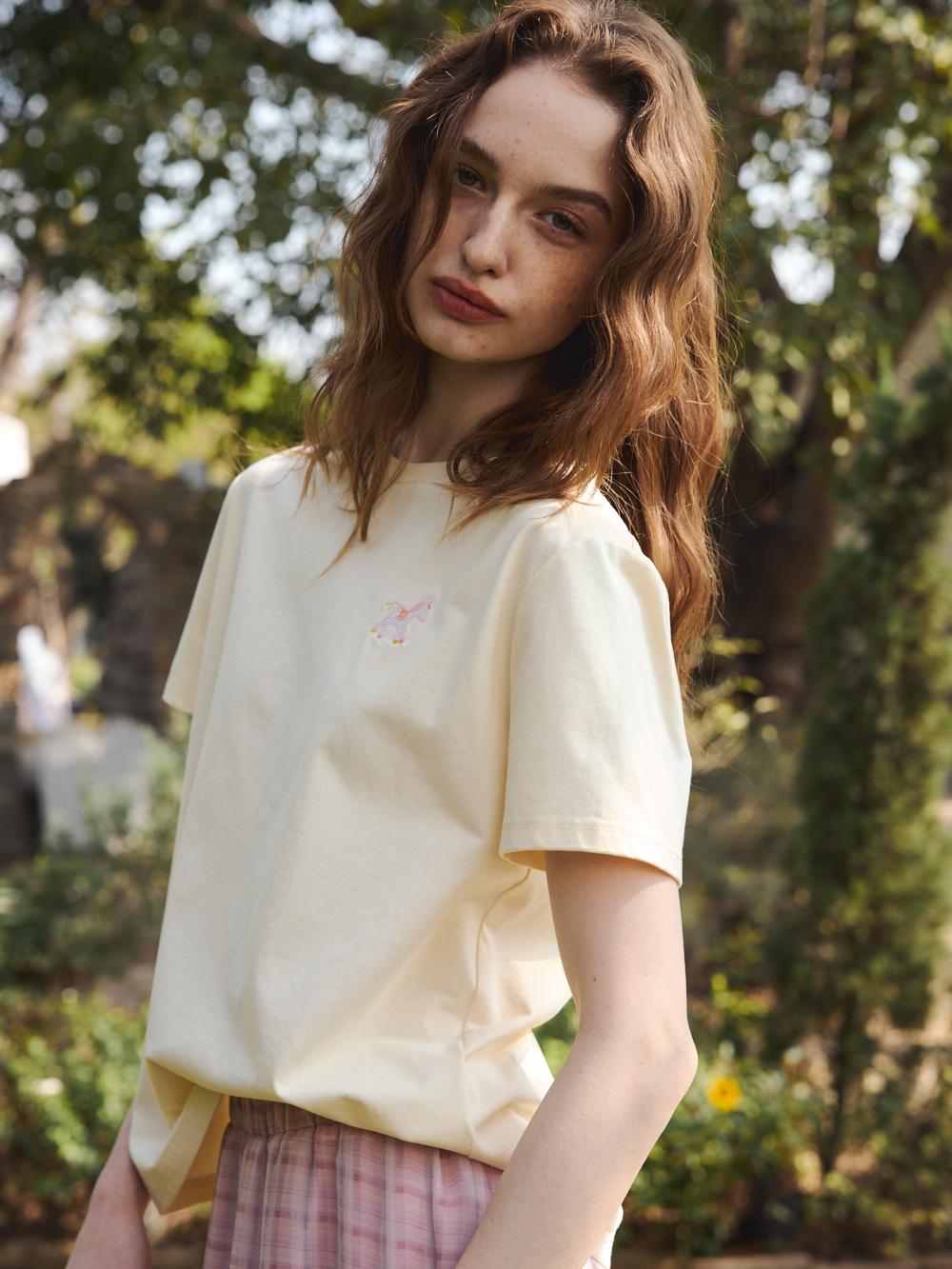 OLrain欧芮儿2026米黄色T恤夏季宽松百搭休闲上衣
