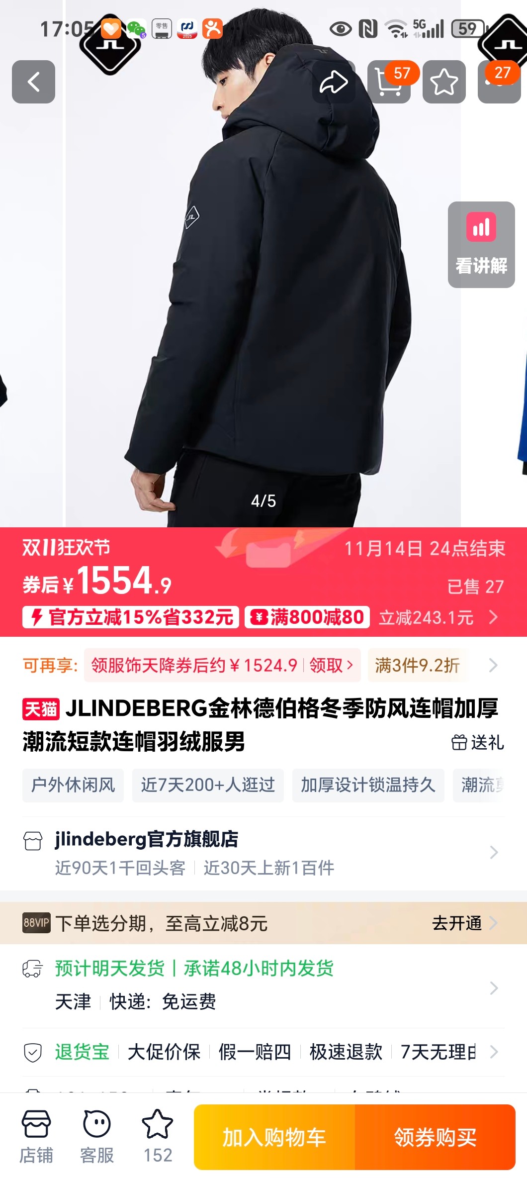 现货老客户一定要抢一件 款一金林家胸前字母连帽羽绒服,吊牌齐全
