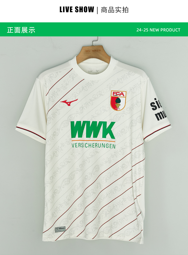 SFS美津浓Mizuno正品 24/25奥格斯堡主场球员版球衣 P2GABX10-07