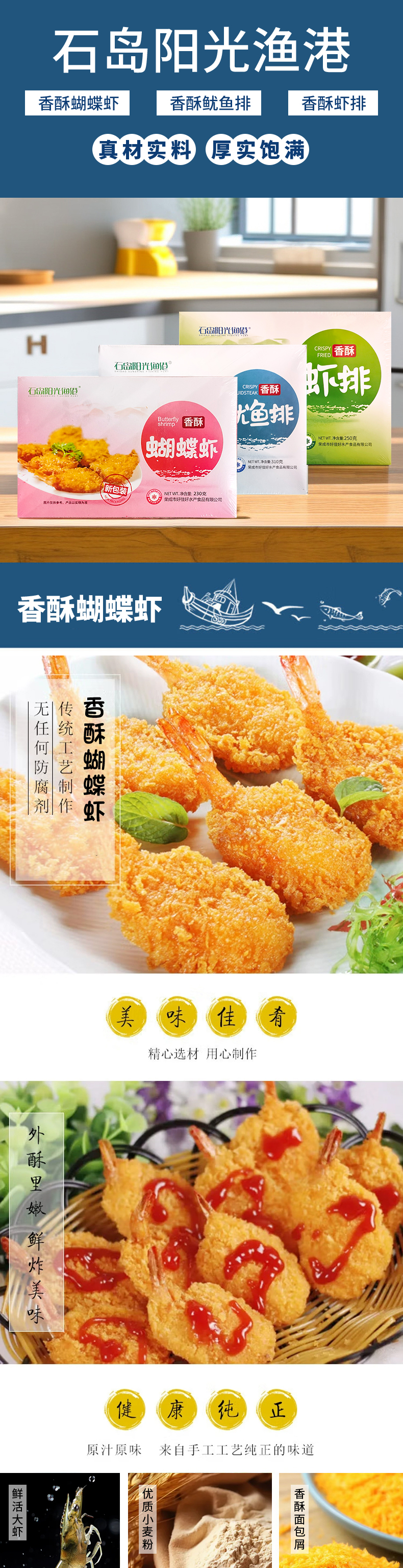 石岛阳光渔港香酥虾排|鱿鱼排|蝴蝶虾230g-310g