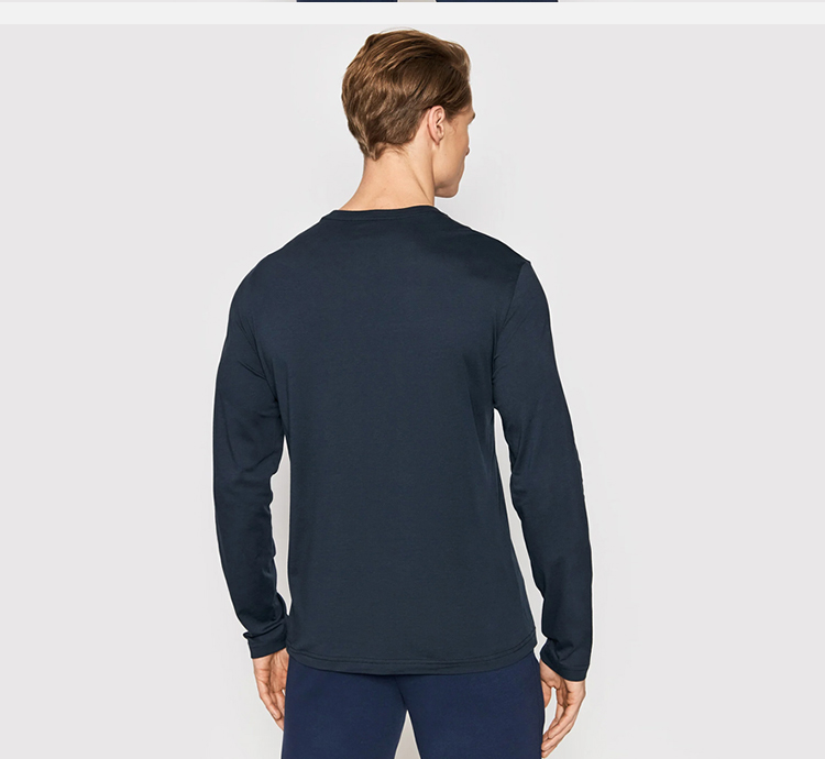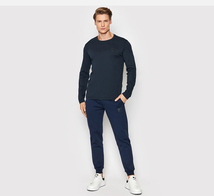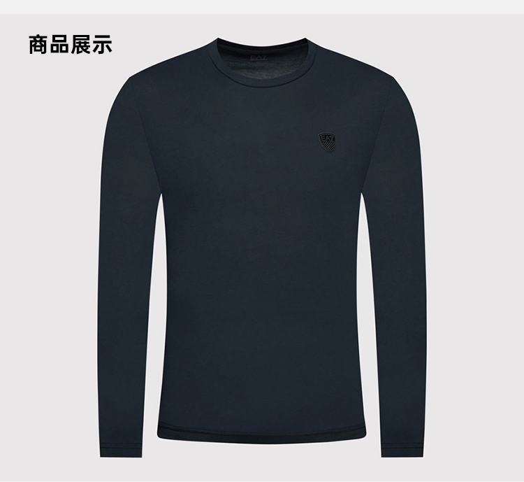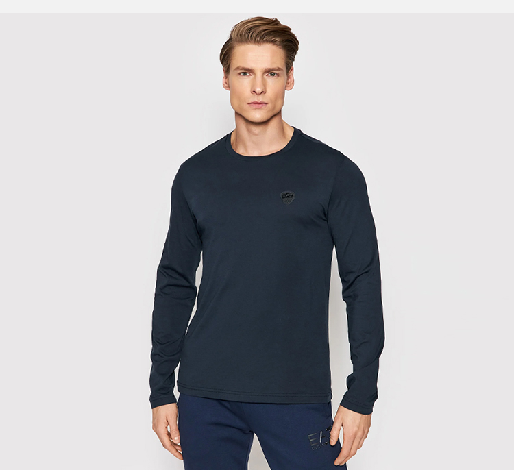 EMPORIO ARMANI 阿玛尼 男士棉质微型徽标贴片圆领长袖T恤 深蓝色 8NPT09 PJNQZ 1578