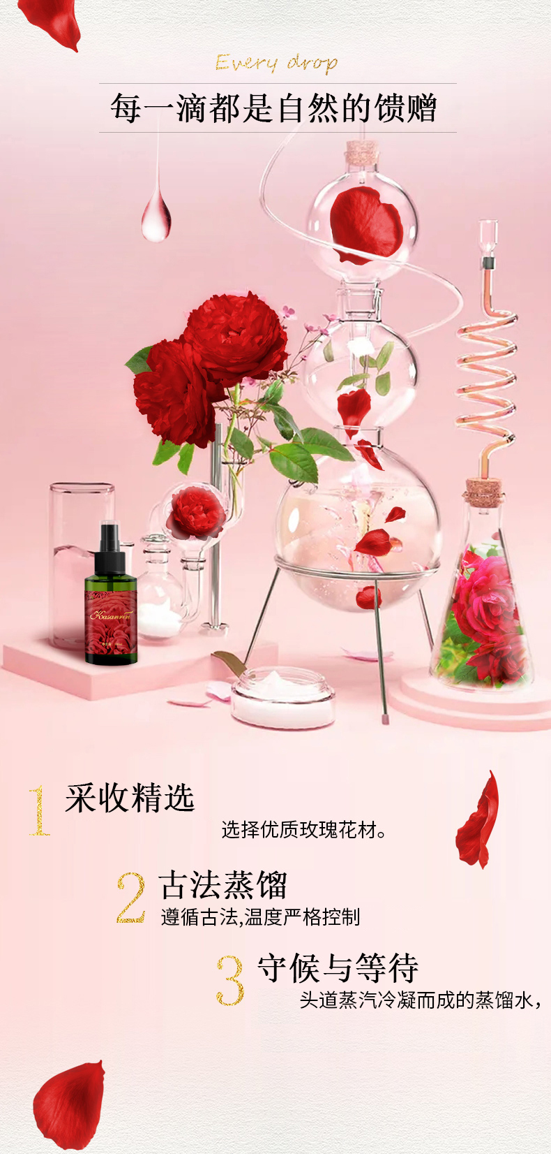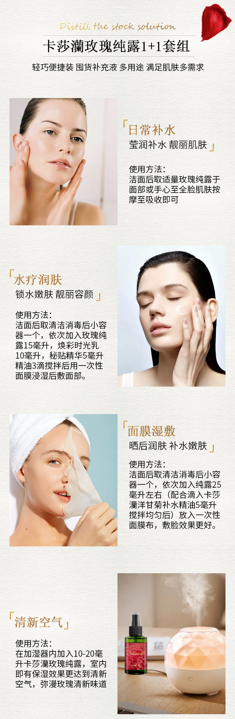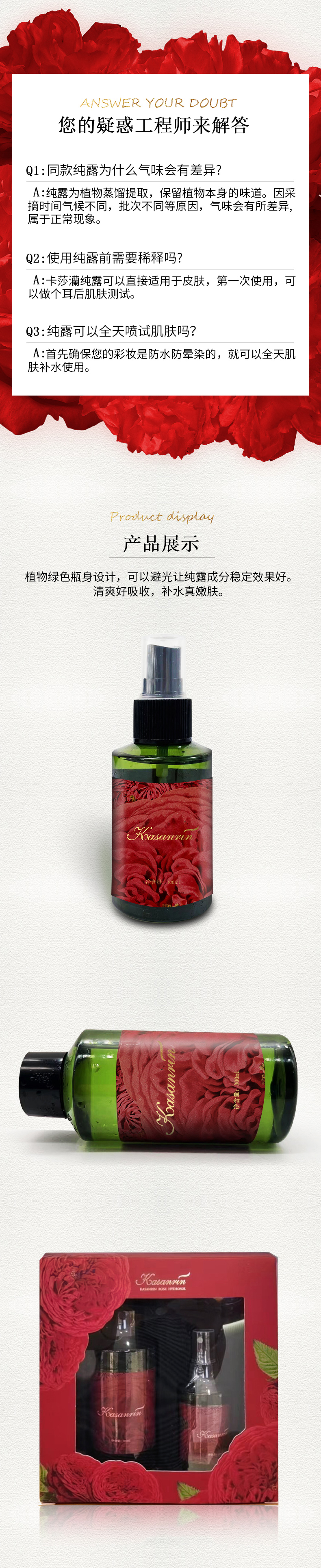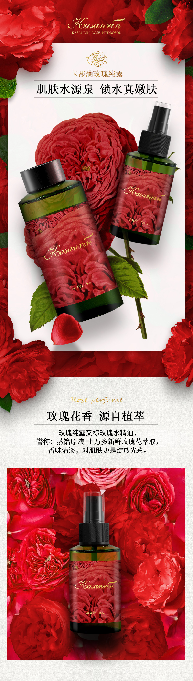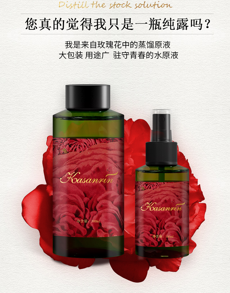 卡莎灡玫瑰纯露套组100ml+300ml,靓肤补水,喷雾可代替爽肤水。
