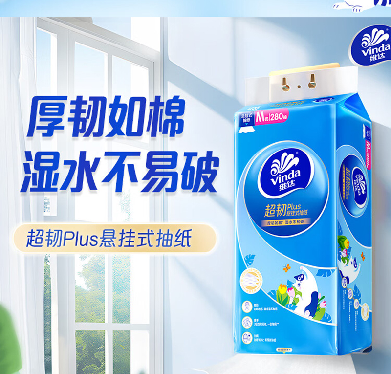 维达超韧PLUS悬挂抽纸M码280抽*4提