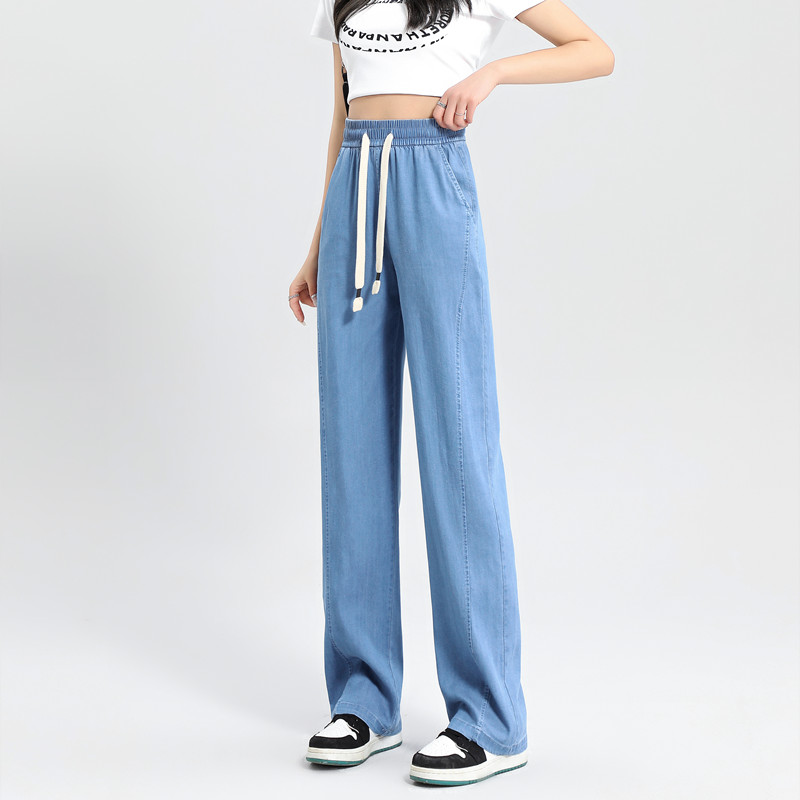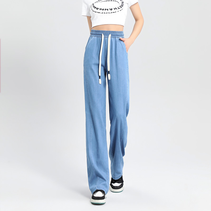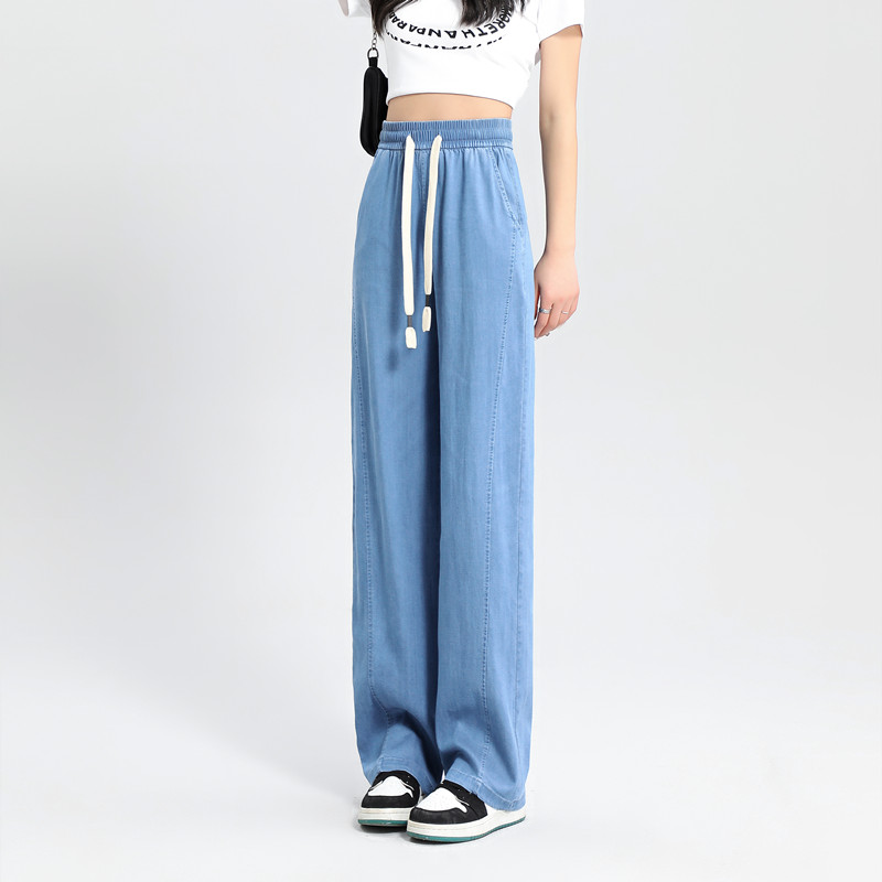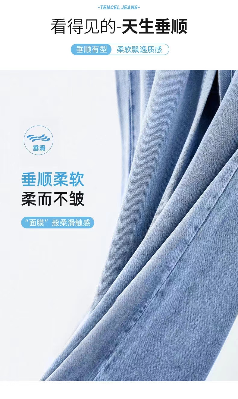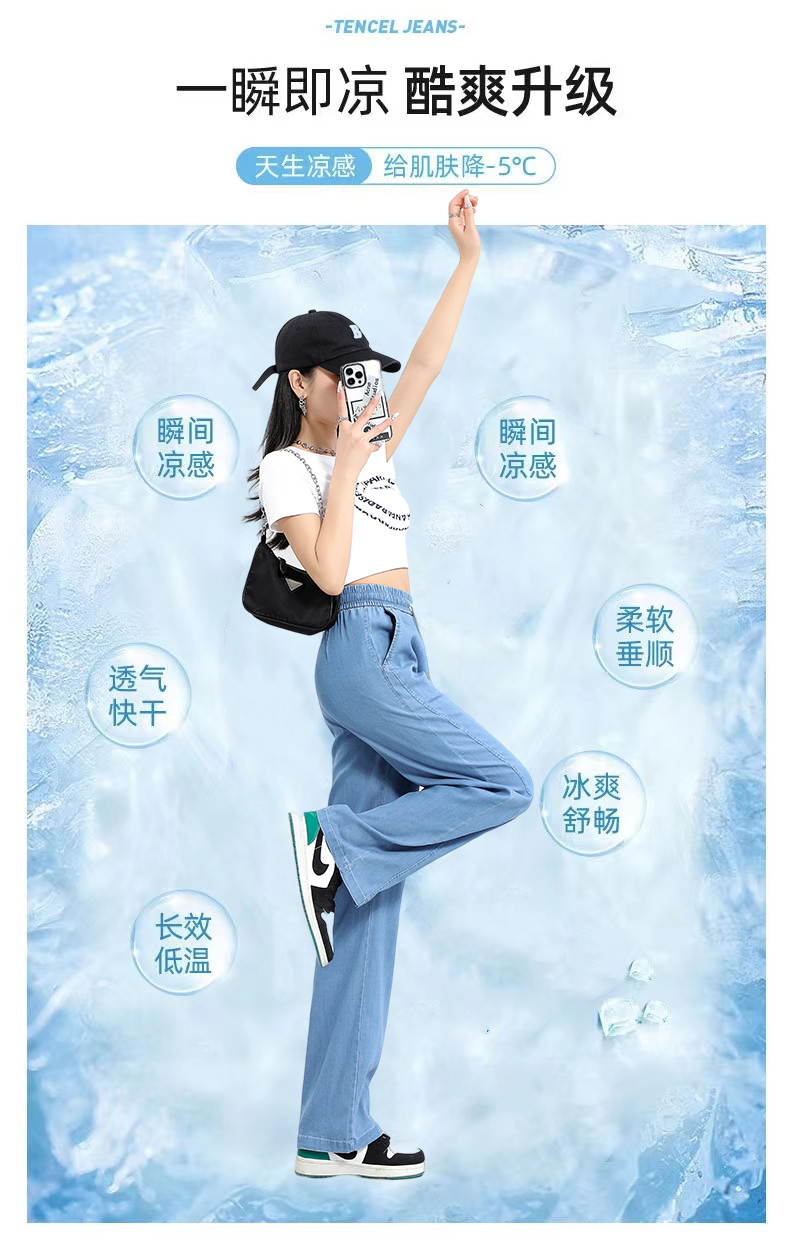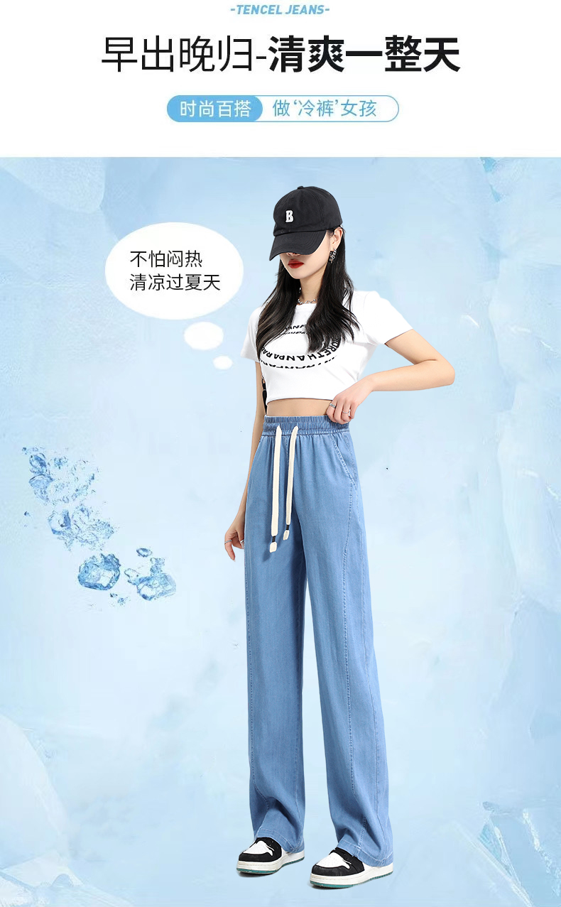老虎书店-五防天丝松紧腰牛仔香蕉裤女士夏季薄款2023新款时尚宽松百搭阔腿裤