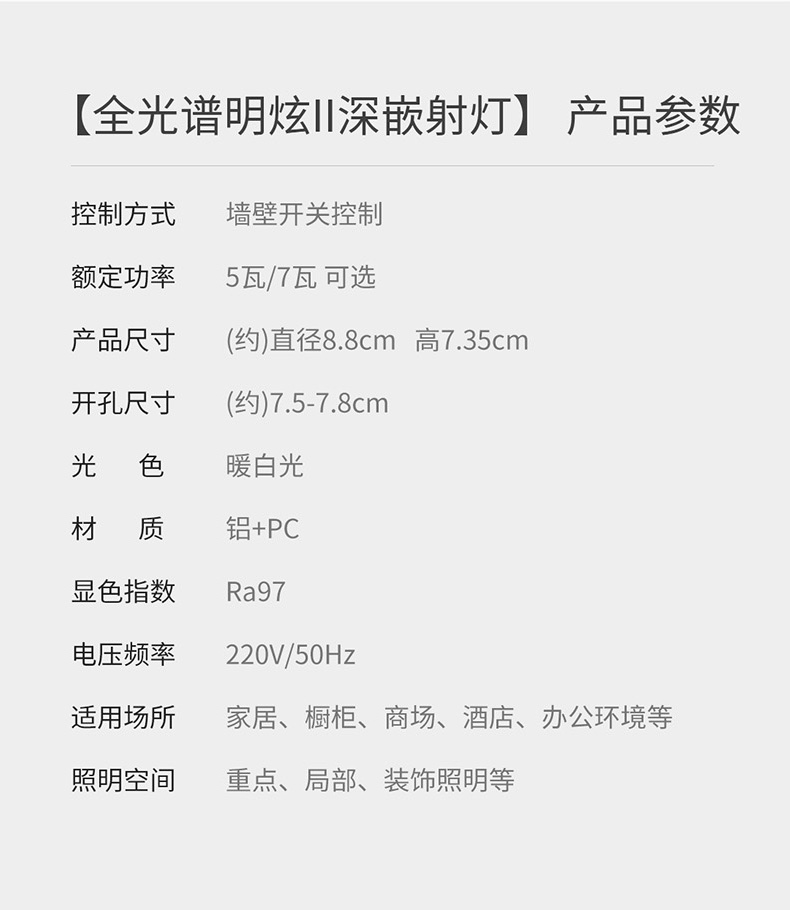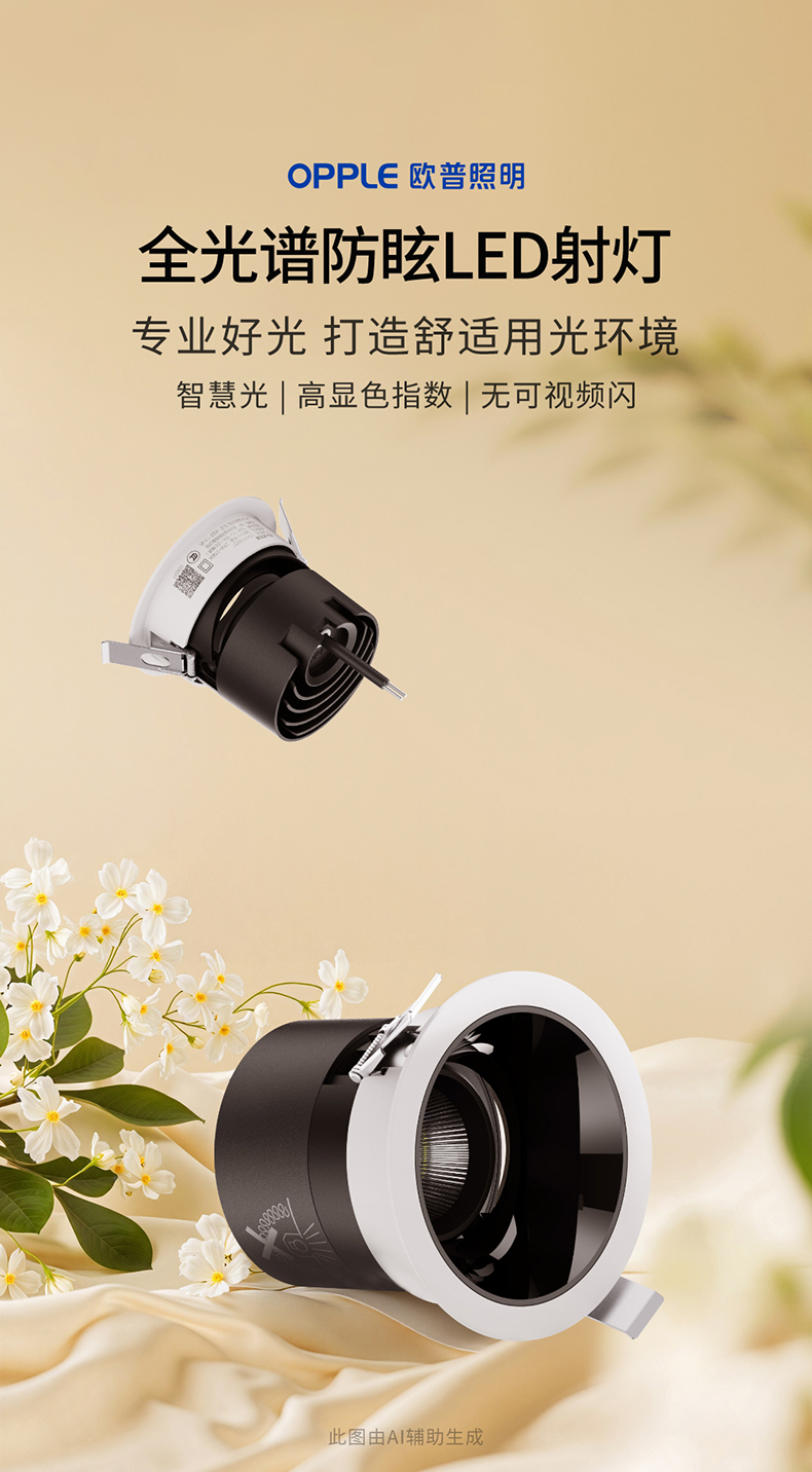 欧普(OPPLE)射灯RA95高显色调色客厅天花灯嵌入式家用防眩LED无主灯明炫