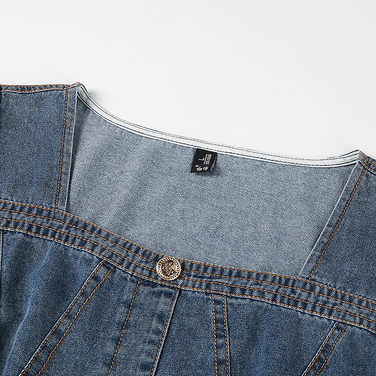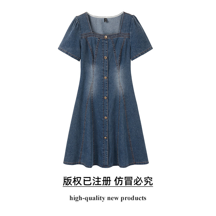 奢姿大码女装2025夏季气质方领设计连衣裙胖妹妹时尚休闲牛仔裙子9952821969