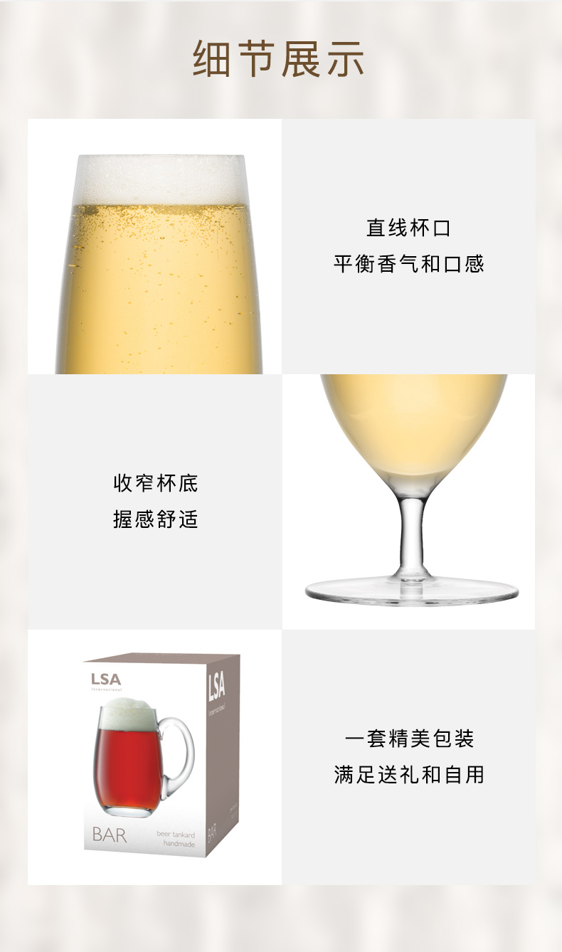 LSA Bar 进口纯手工啤酒杯超大容量家用酒吧大号扎啤杯