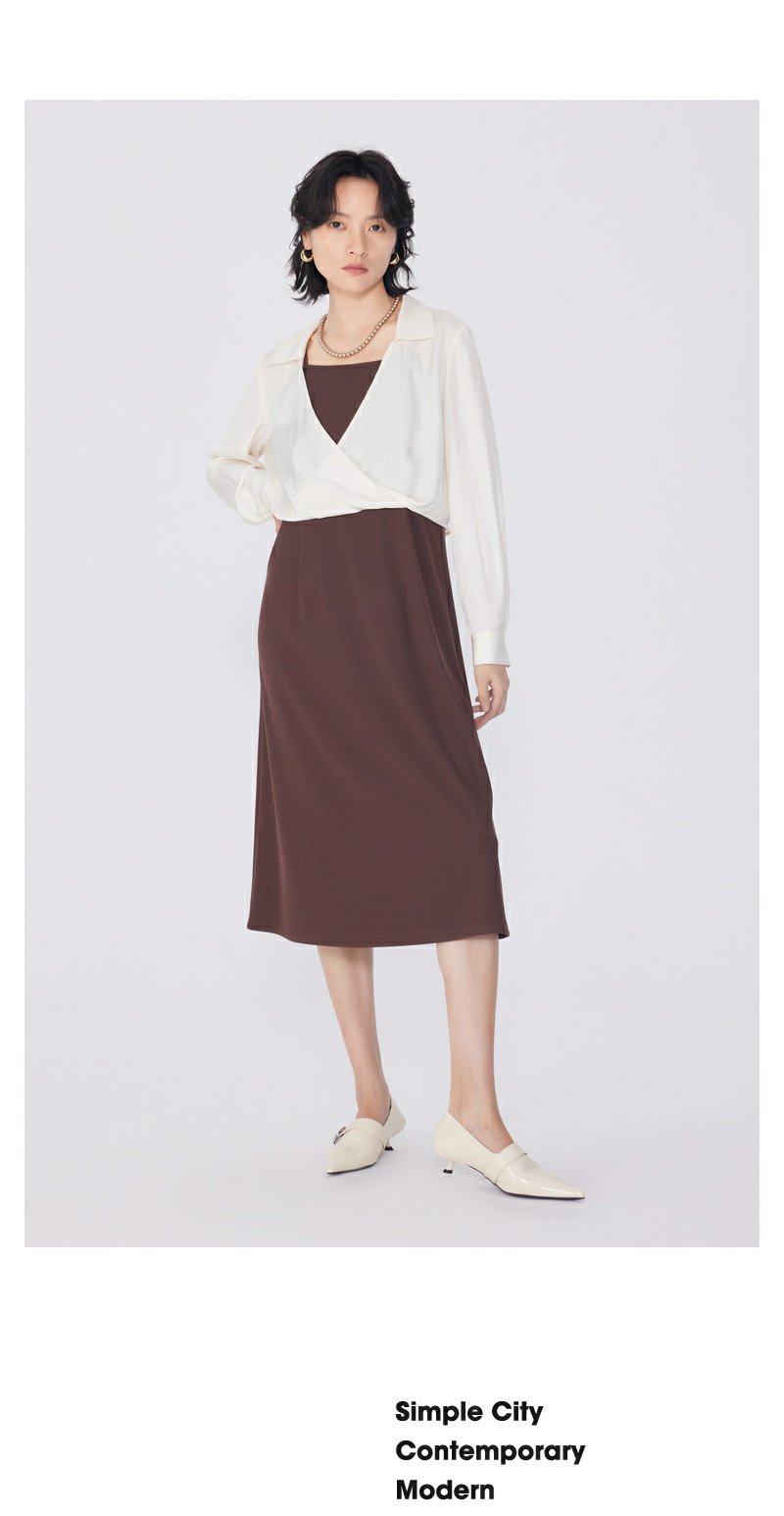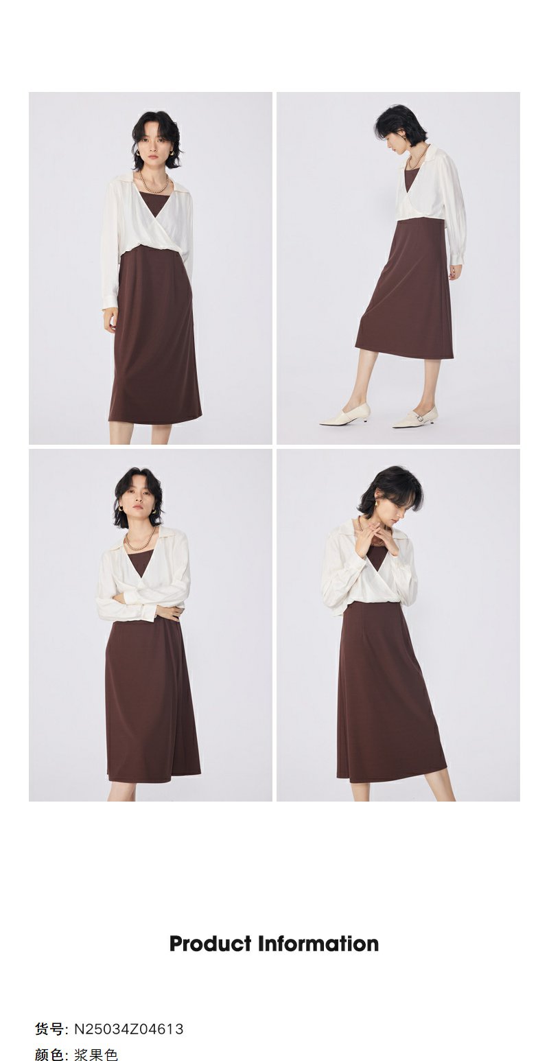 NEELLY纳俪商场同款春季新款简约设计感衬衫连衣裙两件套装女通勤N25034Z04613