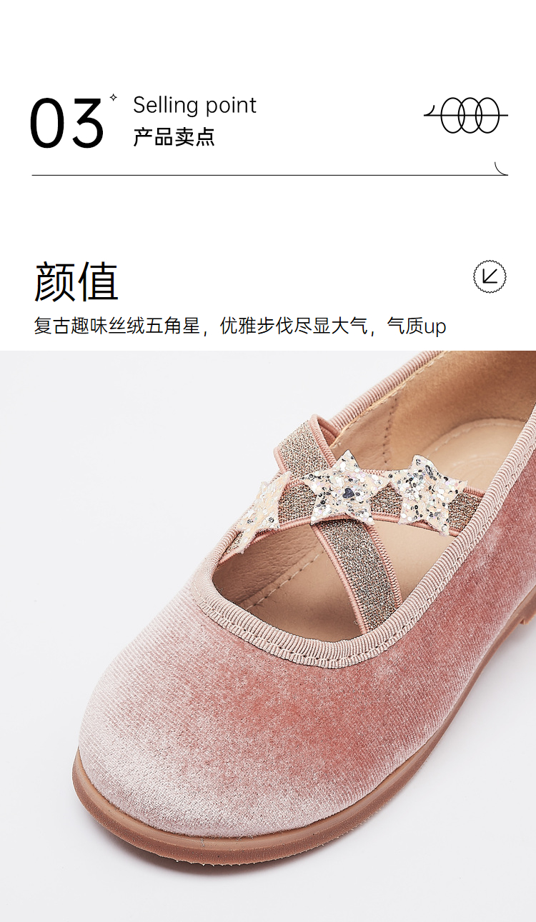 mrbaby童鞋女童单鞋2022年秋季新款公主鞋复古风丝绒休闲防滑皮鞋