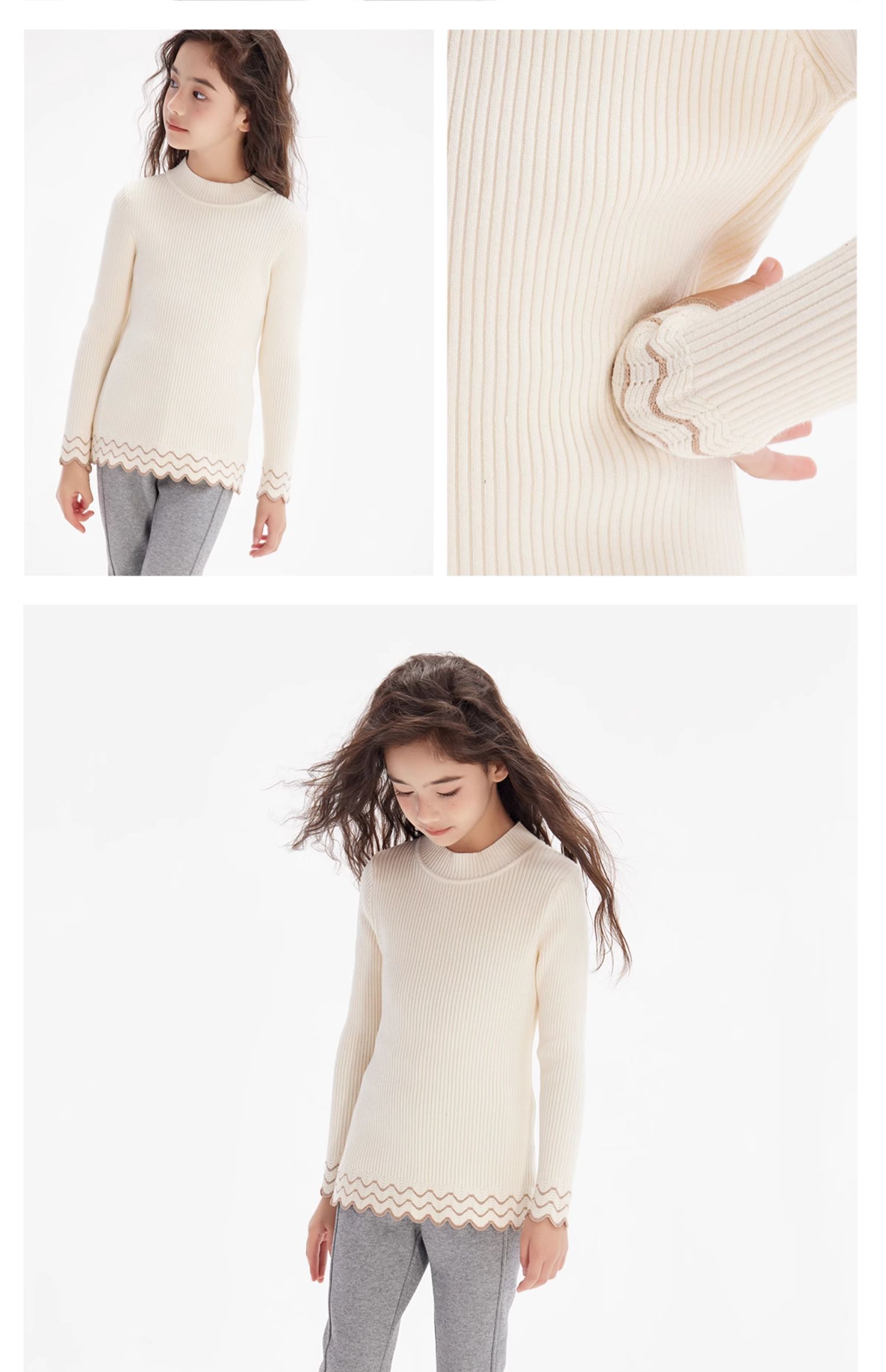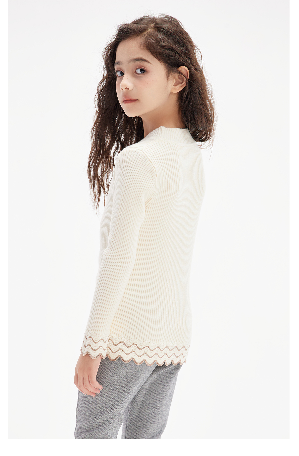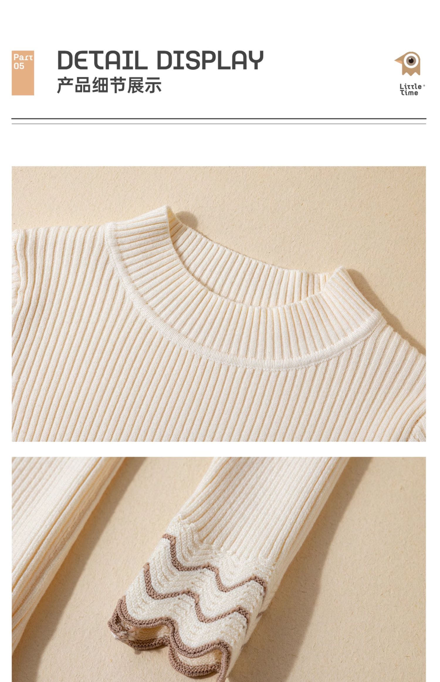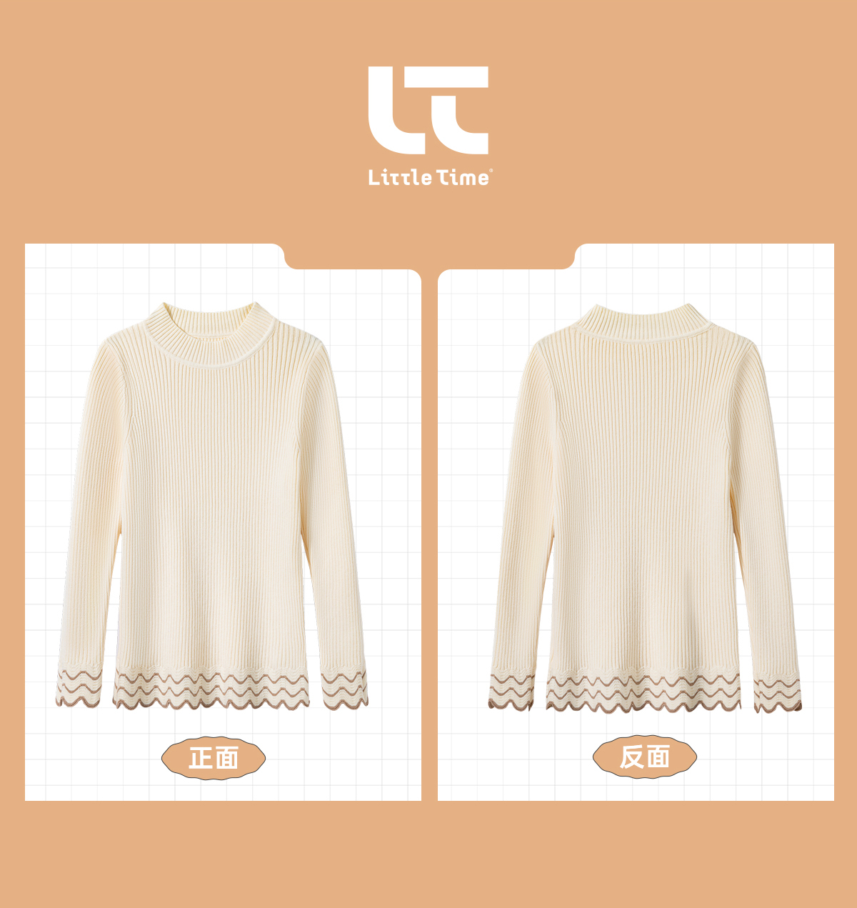 littletime女童波纹打底衫毛衣2024秋冬新款儿童套头长袖针织衫
