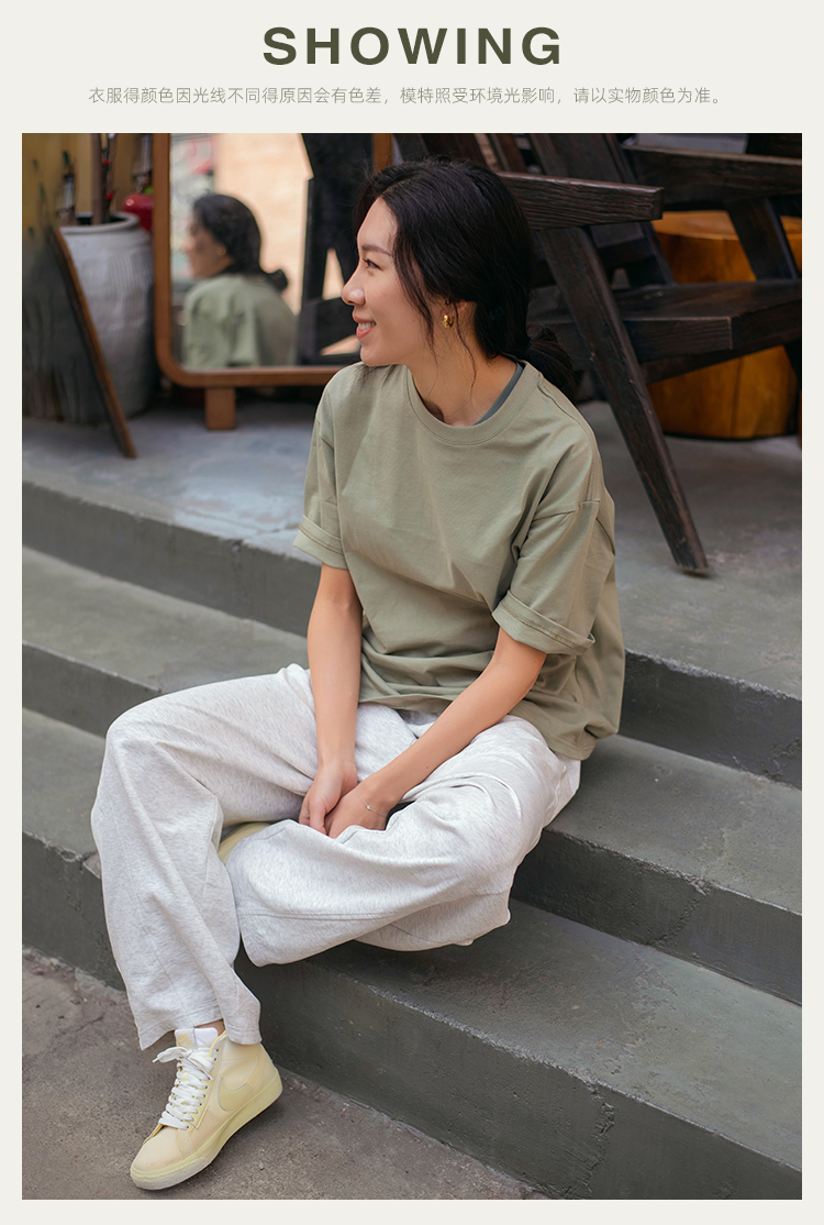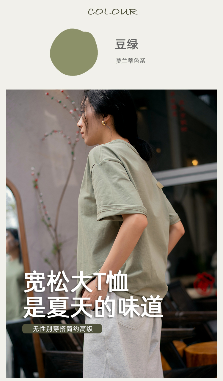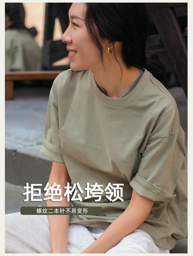 【100%棉】260g 双纱爽滑棉-圆领休闲宽松大T 中性男女同款运动短袖