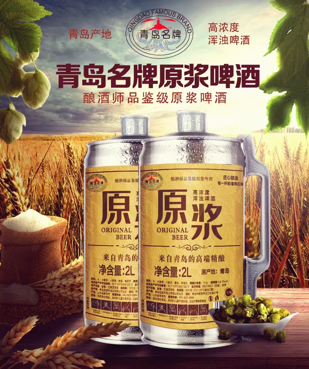 自营(啤酒汇)-青岛法克精酿原浆啤酒2L装 酿酒师品鉴级原浆啤酒