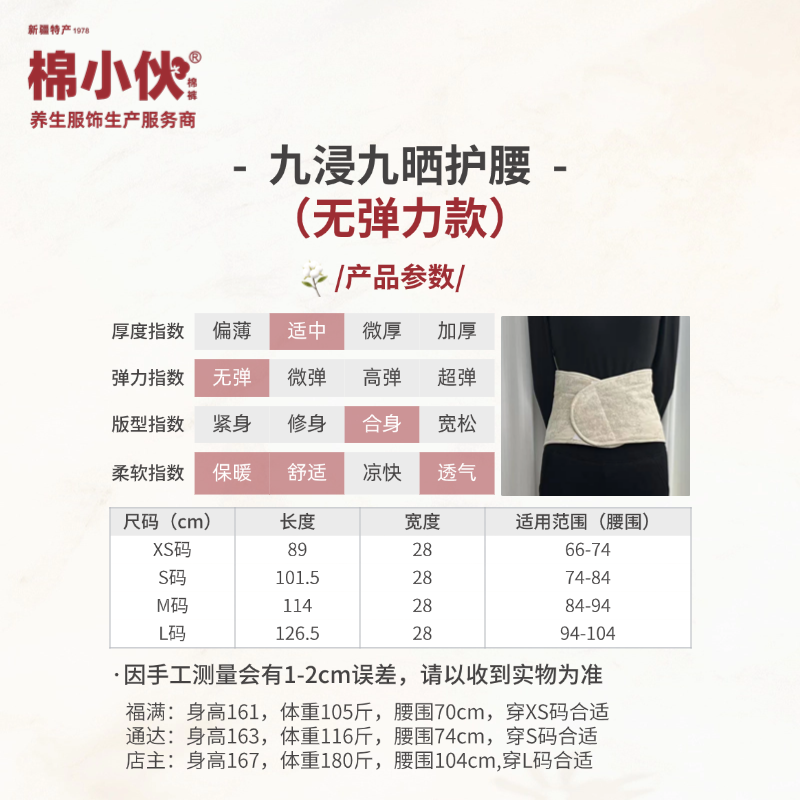 【棉小伙九浸九晒养生服饰 护腰·护膝】 弹力款 无弹力款 九九姜芯 古法炮制新疆天山晒场 热姜汁浸泡 至日用功拔陈Han 男女同款 重庆仓