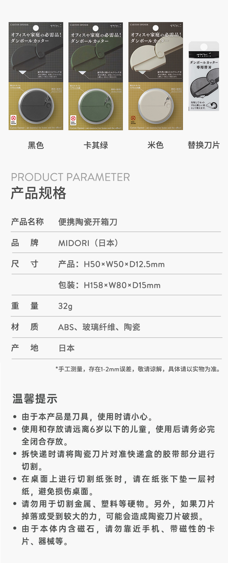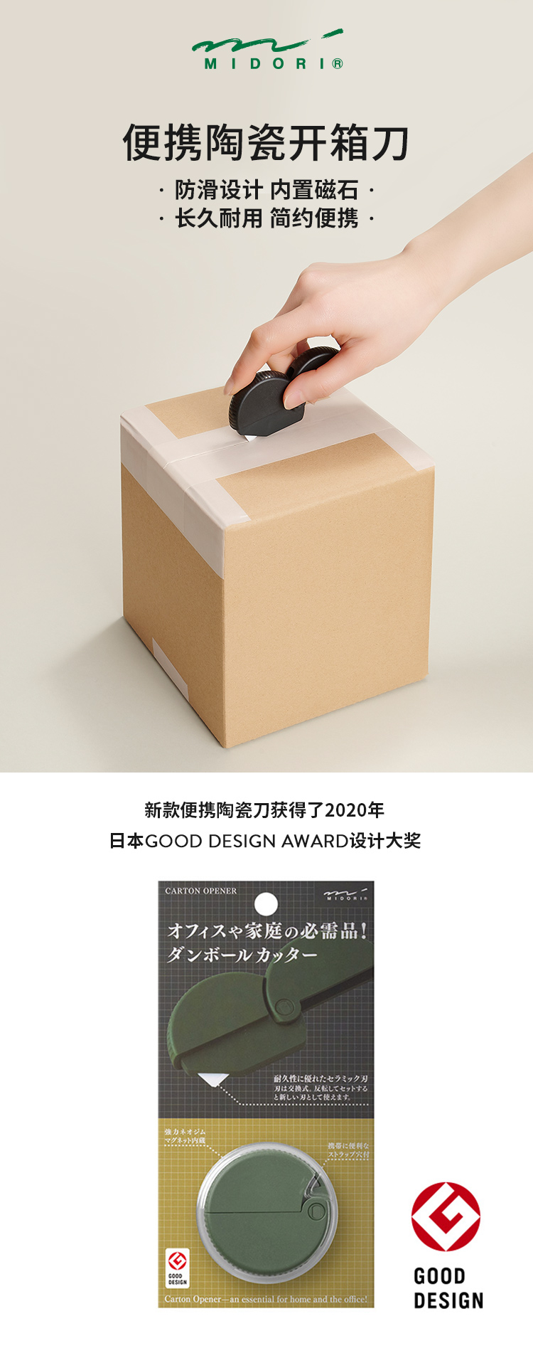 日本MIDORI/迷你开箱刀/拆快递刀专用/裁纸开箱神器/陶瓷刀/磁吸/文具大赏