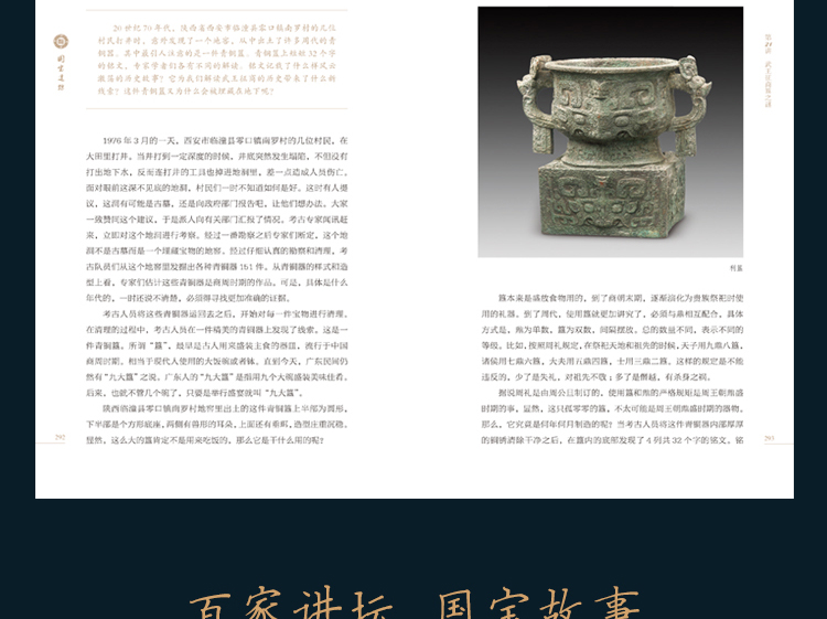 从每一讲中可以看到国宝凝聚着古代人的智慧,反映出中国古代物质文化的高度发达;从它们背后的故事中可以看到王朝的兴衰、社会的曲折。他们不仅自己蕴含着历史,而且见证着历史。