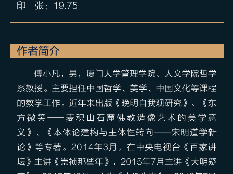傅小凡,男,厦门大学管理学院、人文学院哲学系教授。主要担任中国哲学、美学、中国文化等课程的教学工作。近年来出版《晚明自我观研究》、《东方微笑——麦积山石窟佛教造像艺术的美学意义》、《本体论建构与主体性转向——宋明道学新论》等专著。2014年3月,在中央电视台《百家讲坛》主讲《崇祯那些年》,2015年7月主讲《大明疑案》,2015年10月,主讲《走近朱熹》,2016年7月主讲《大明疑案》下部。