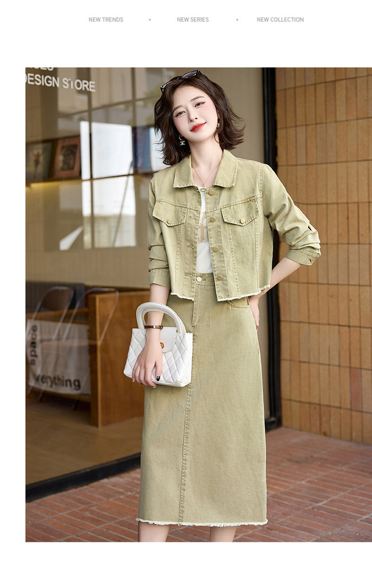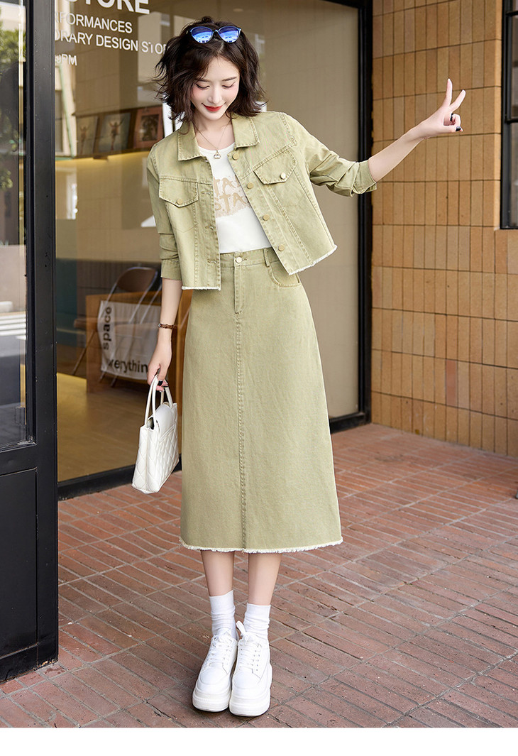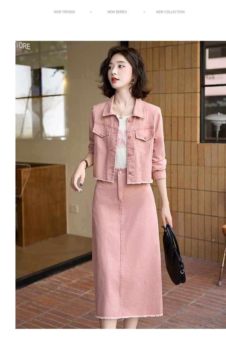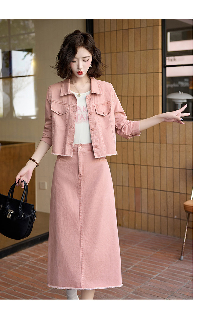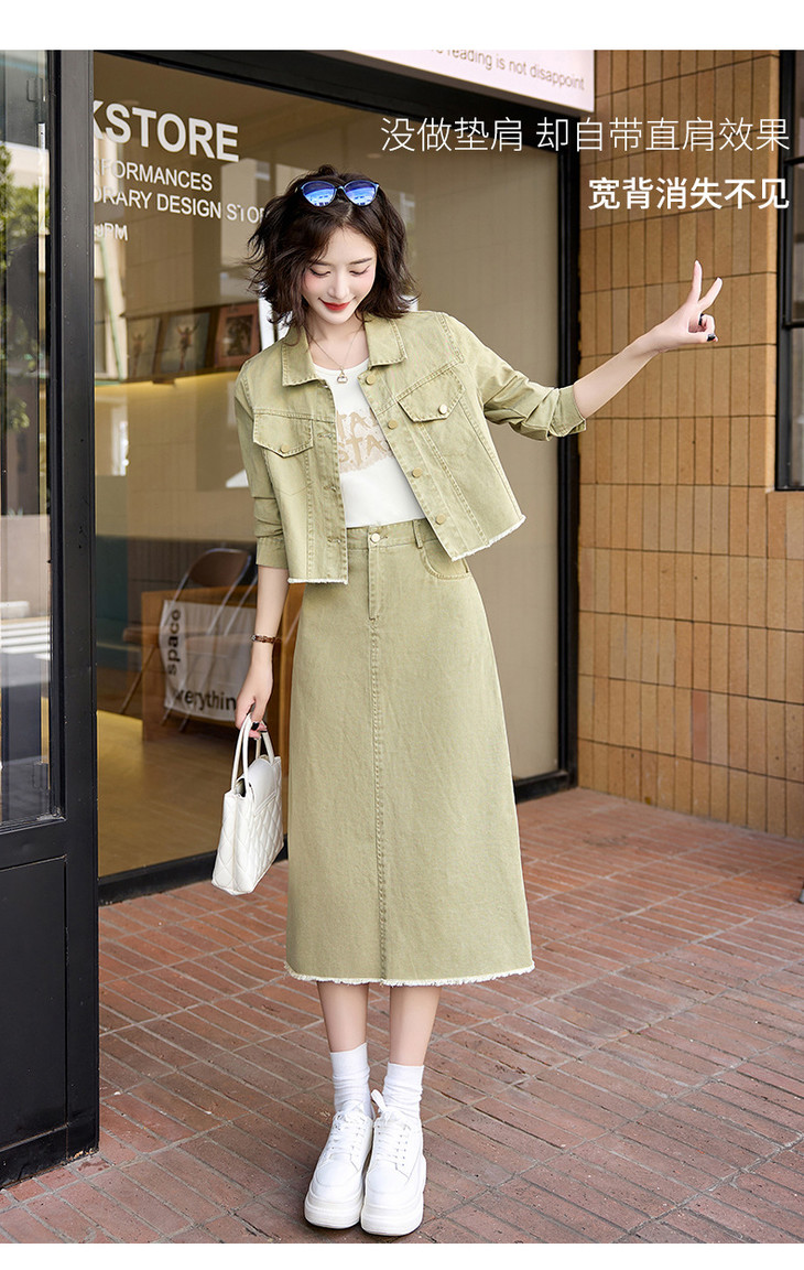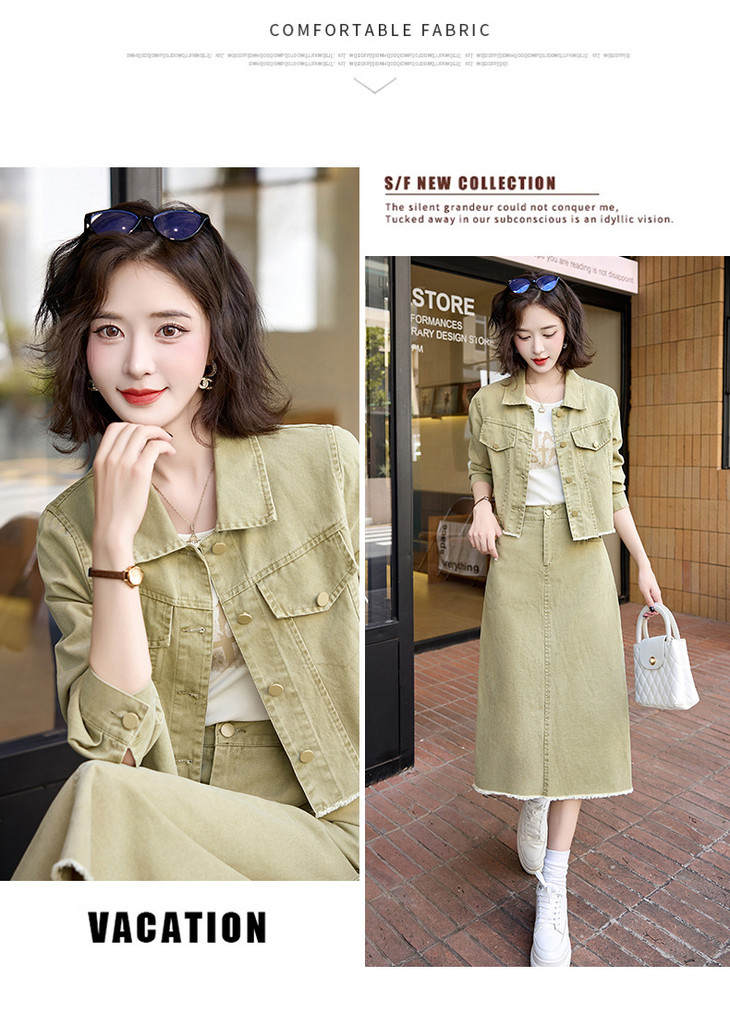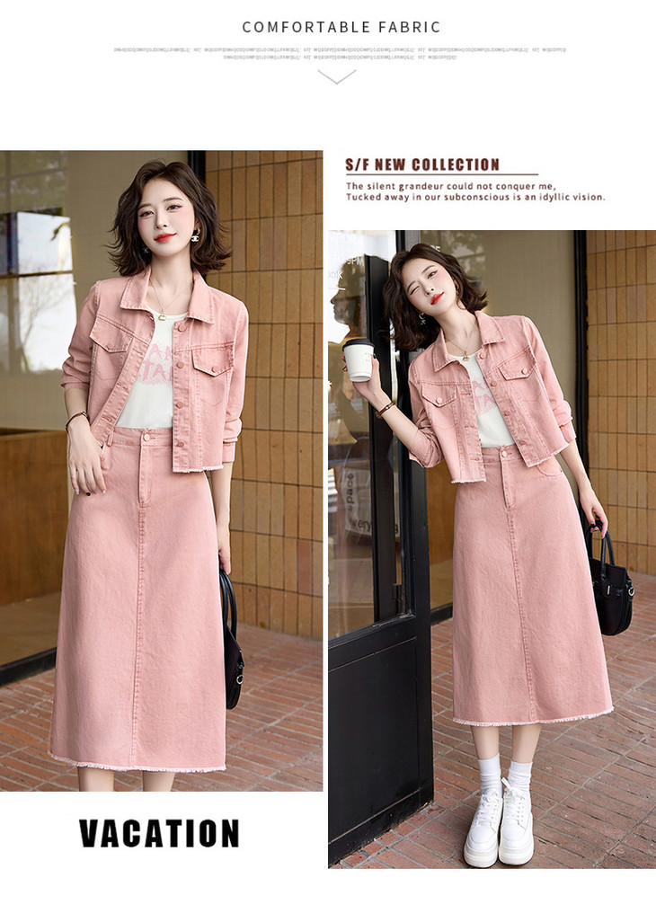 【预售5天】2024秋季新款时尚休闲套装印花T恤牛仔外套半裙三件套裙HR-MJ6005M