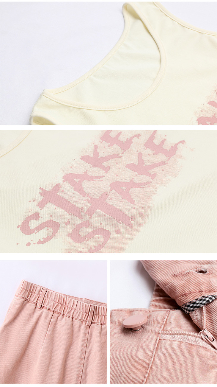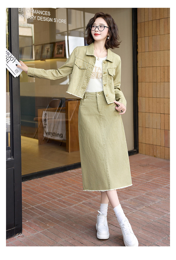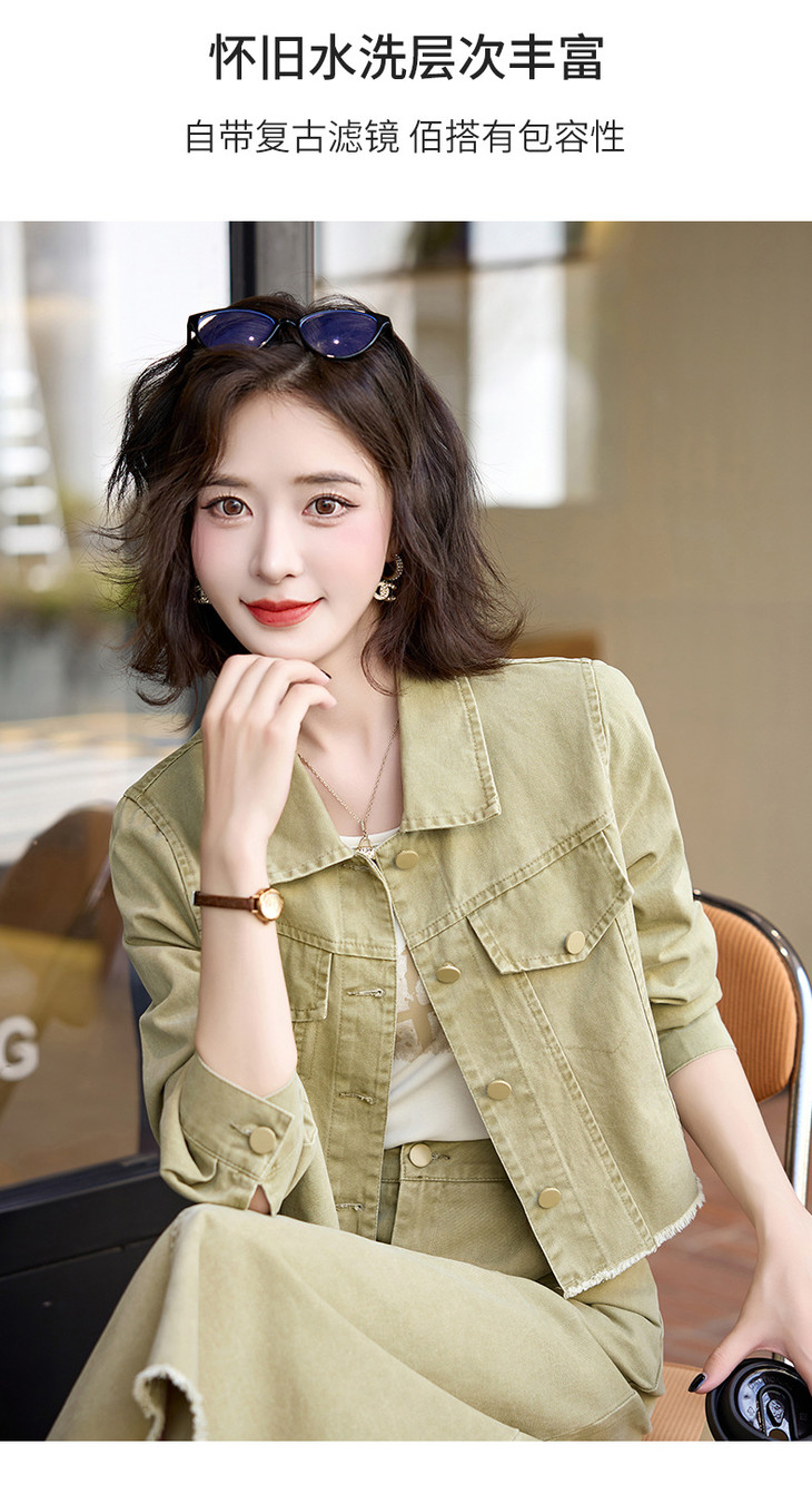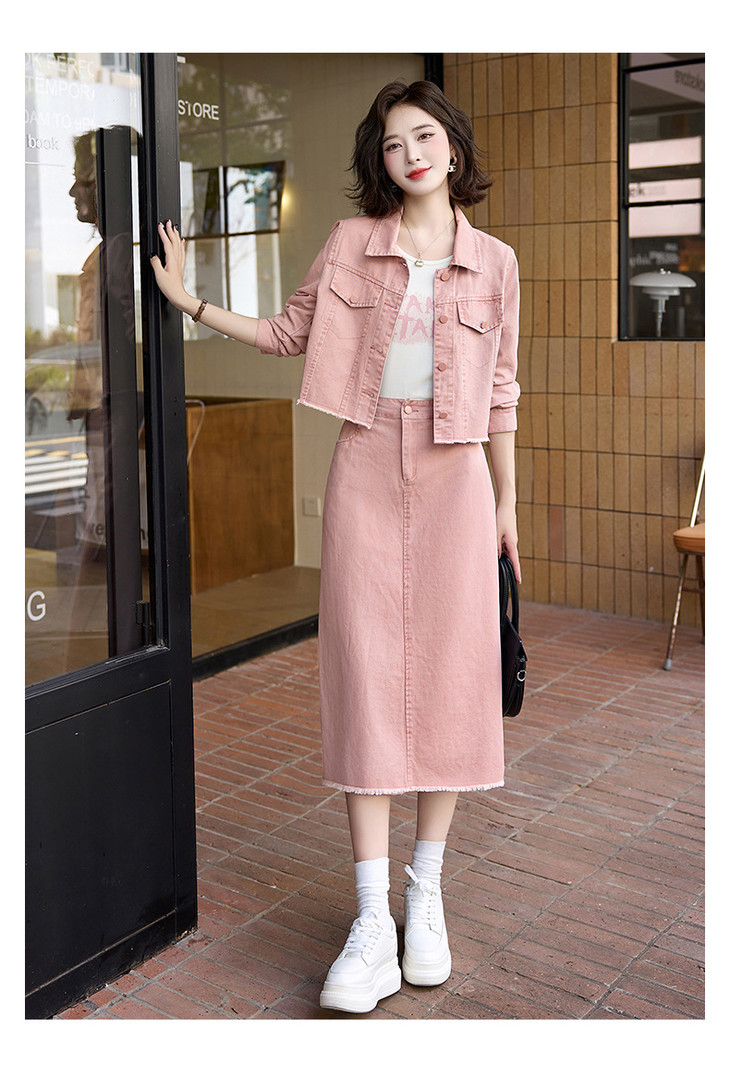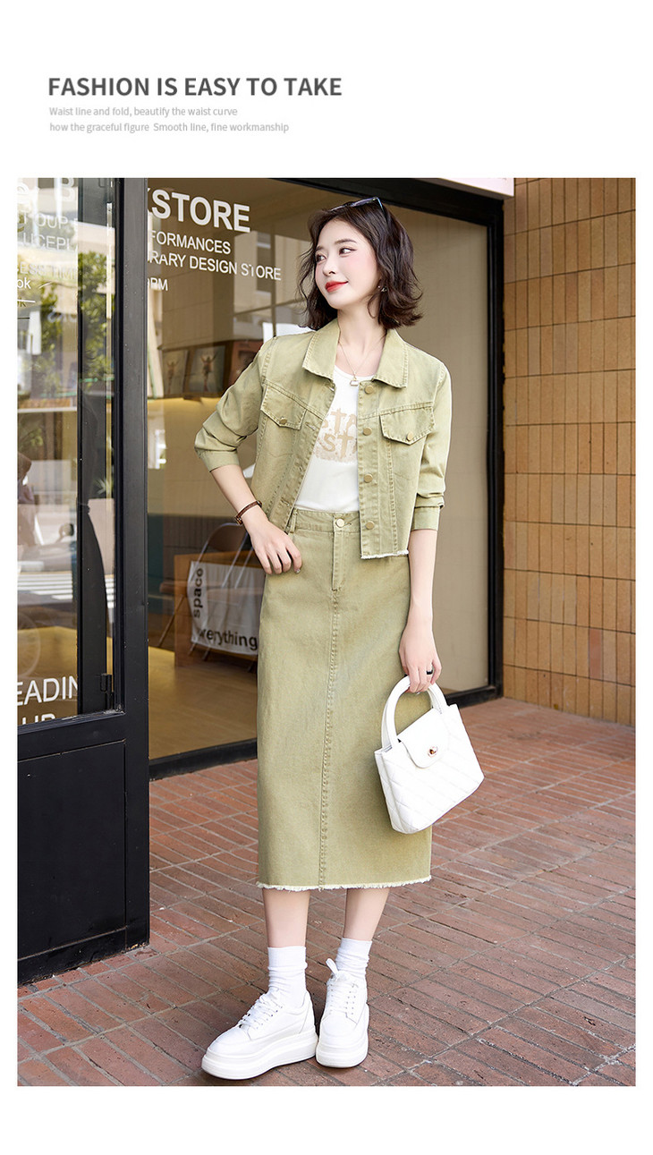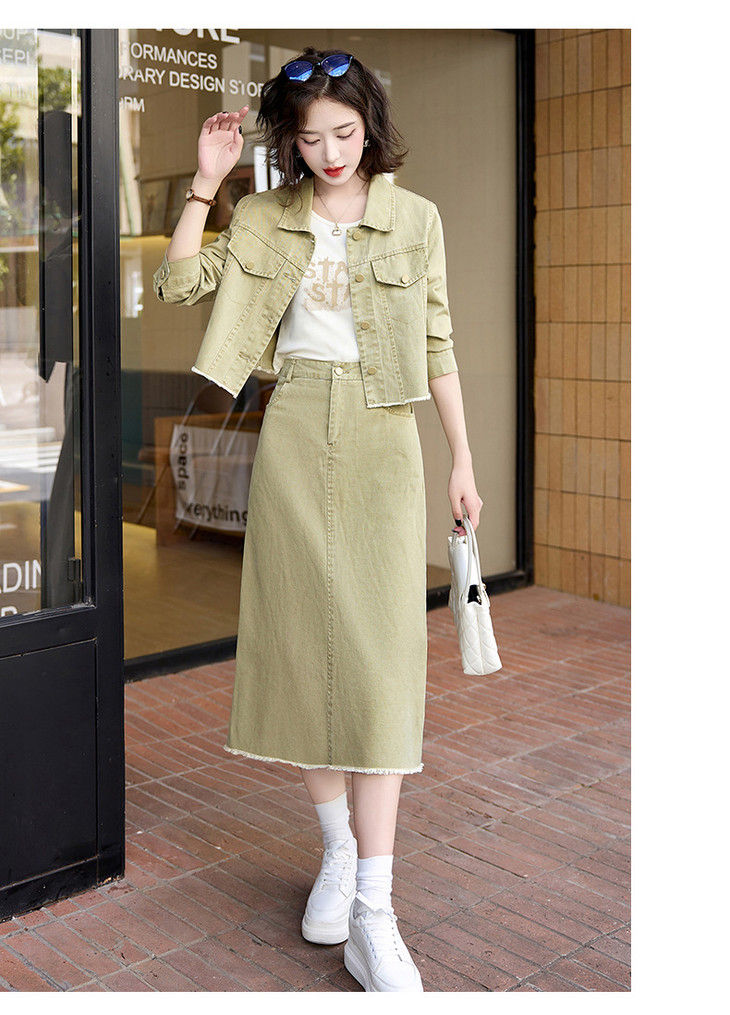 【预售5天】2024秋季新款时尚休闲套装印花T恤牛仔外套半裙三件套裙HR-MJ6005M