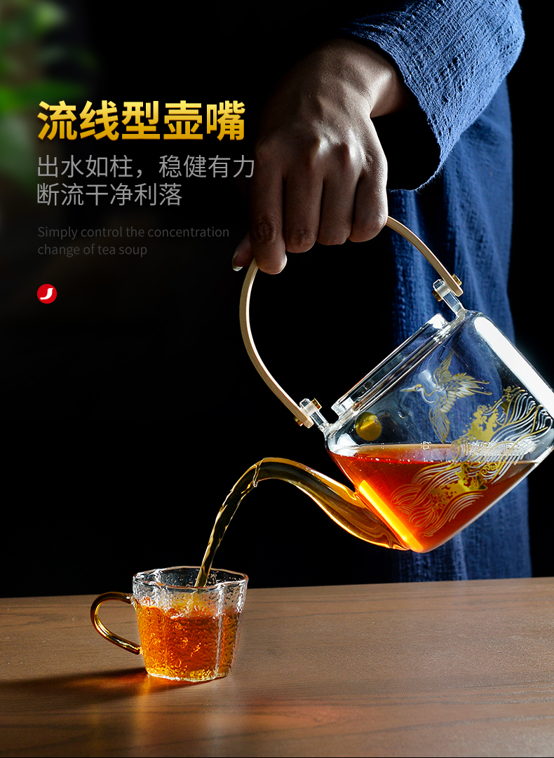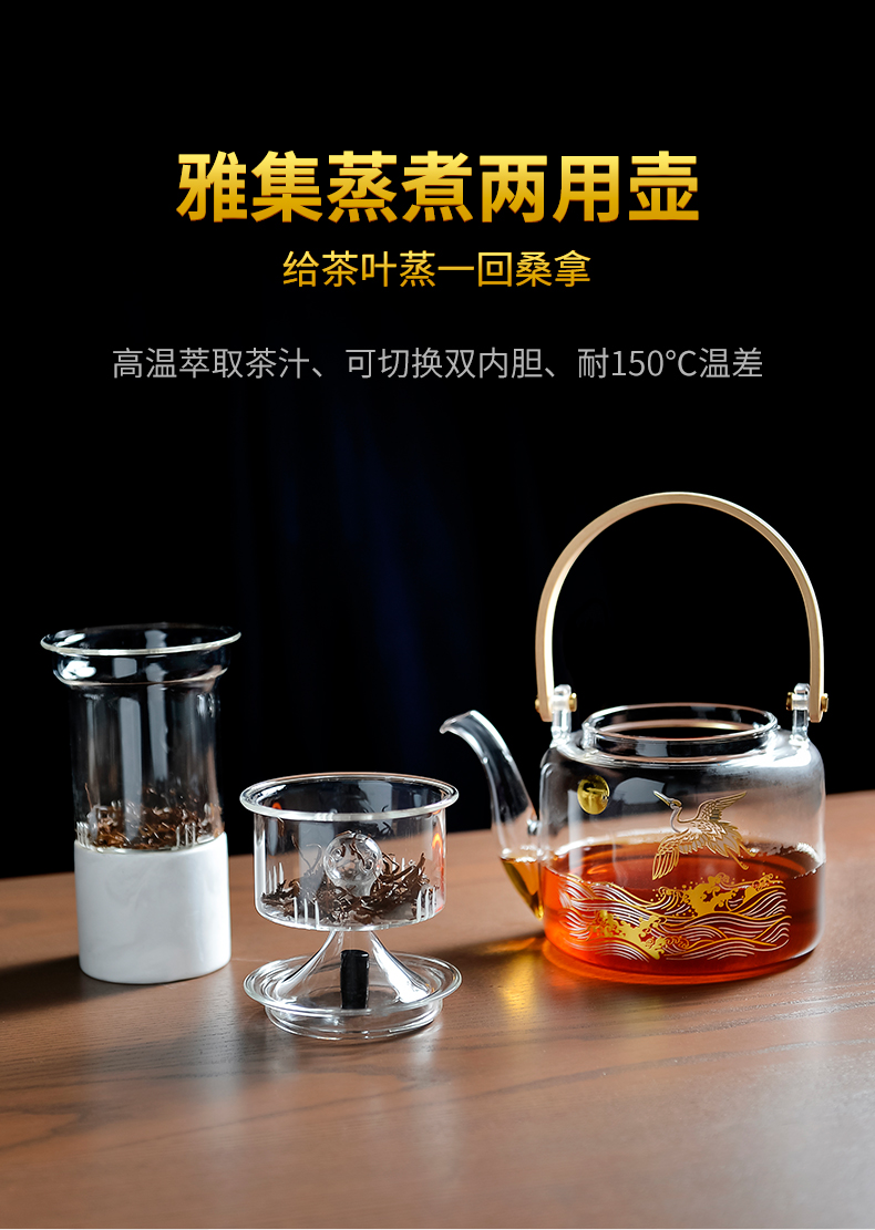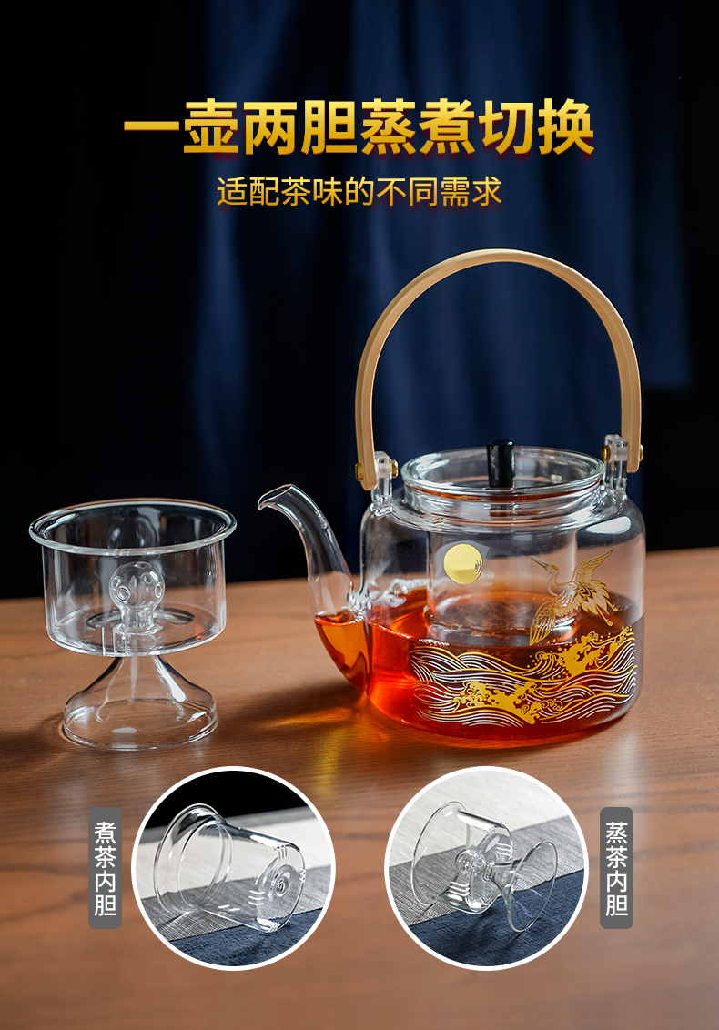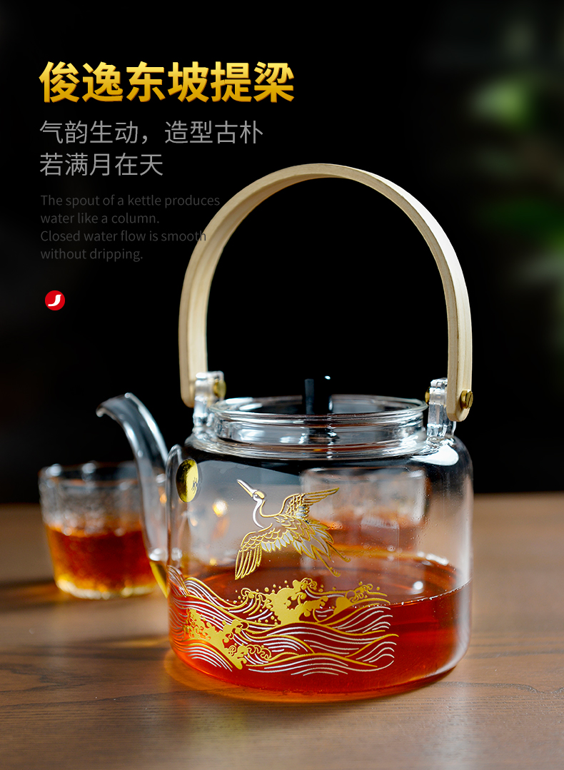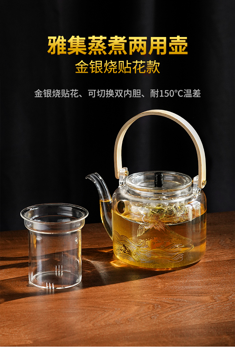 雅集煮水壶木把提梁壶1100ml(光面金银烧款)