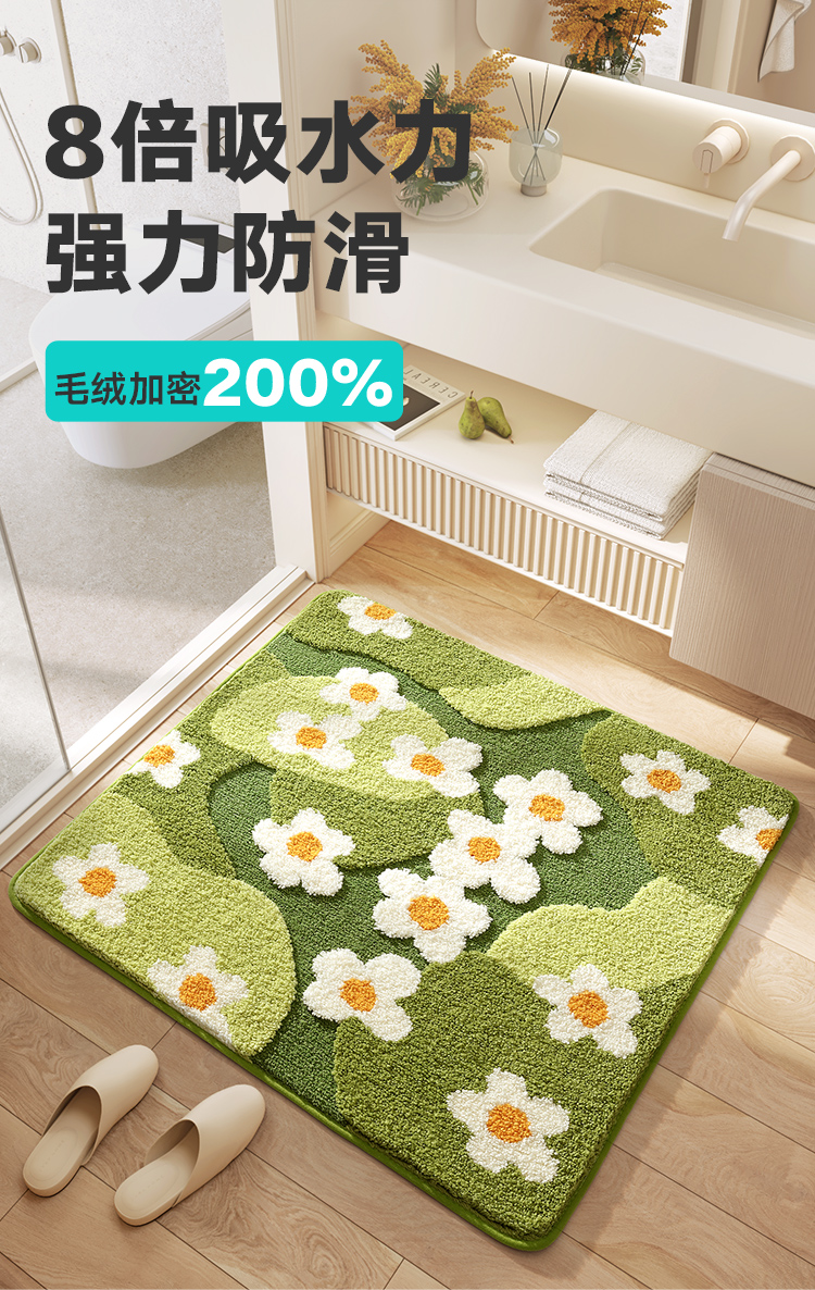【大江】浴室植绒地垫 超细纤维 速干挥发 强力防滑 软如云 8倍吸水 多功能耐造