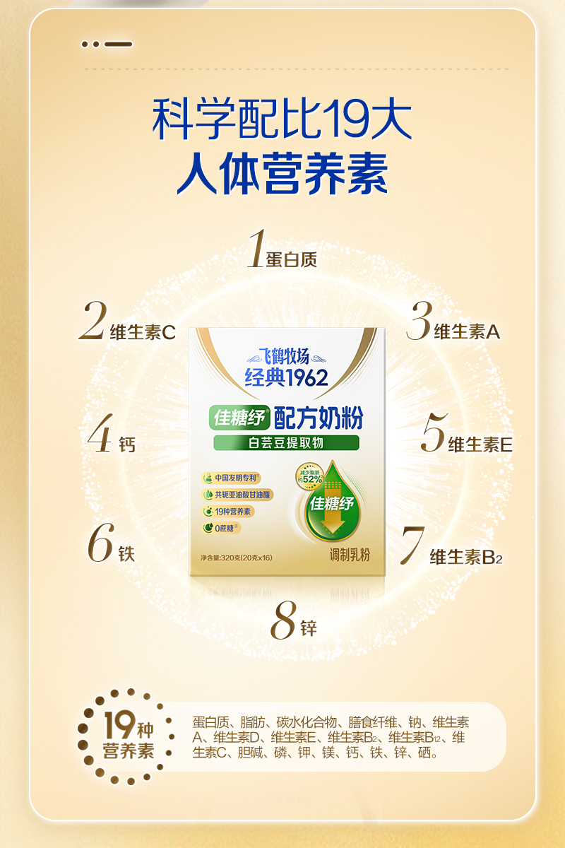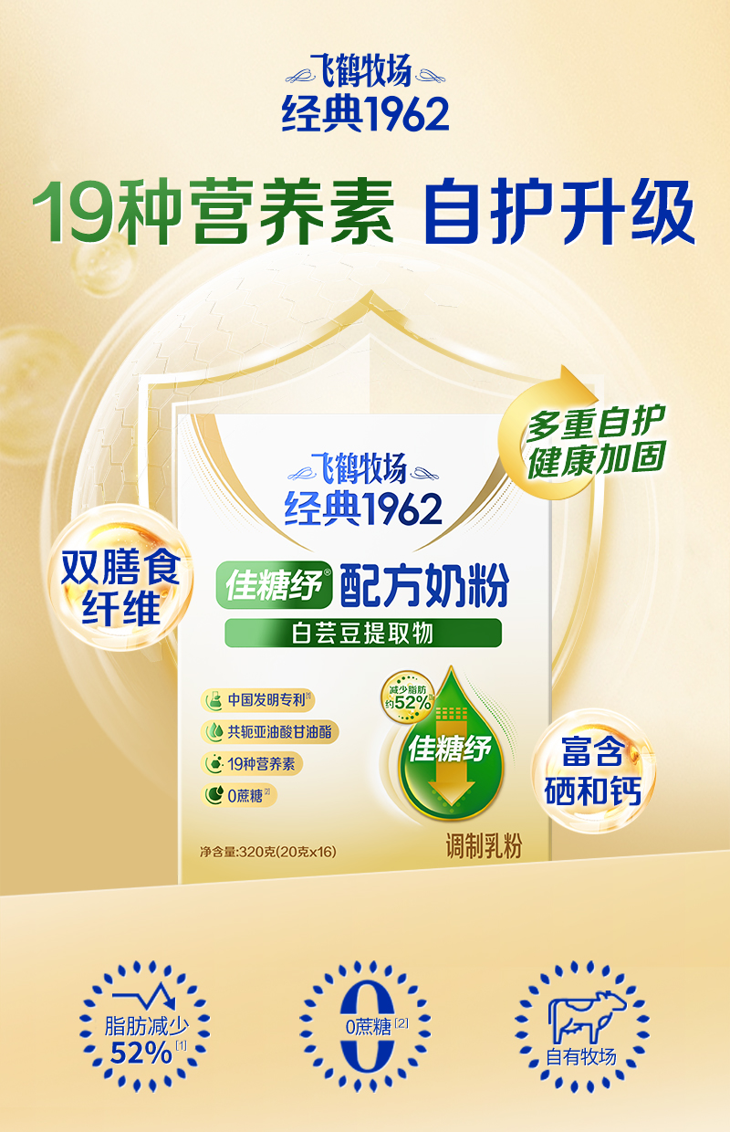飞鹤牧场 1962佳糖纾配方奶粉盒装
