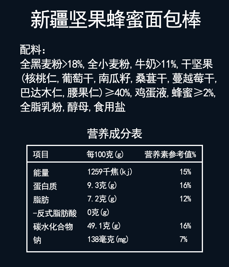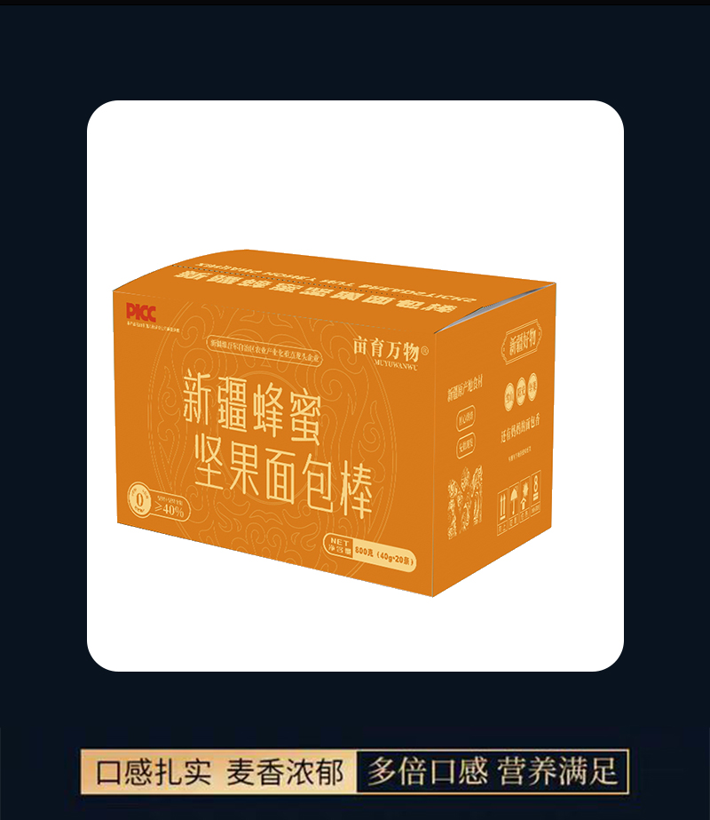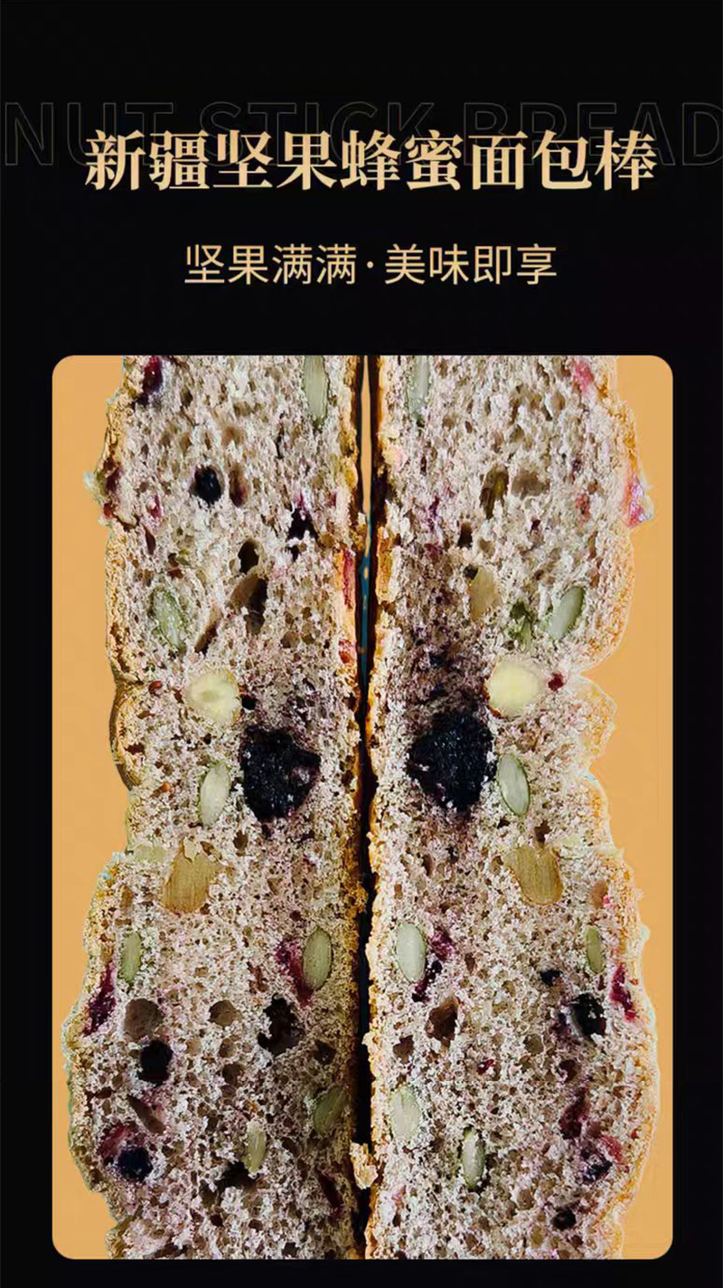 亩育万物 新疆坚果蜂蜜面包棒800g/箱 一箱20条 甄选新疆好原料,无油工艺,现烤现发,独立小包装